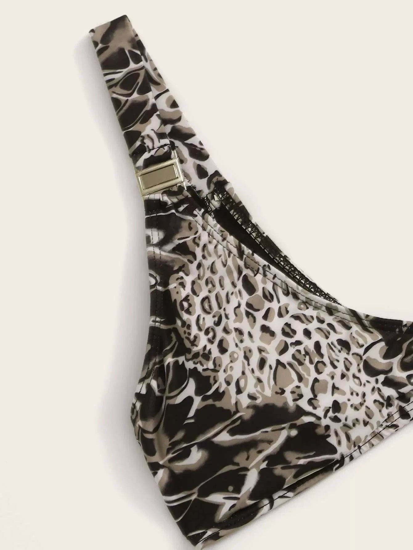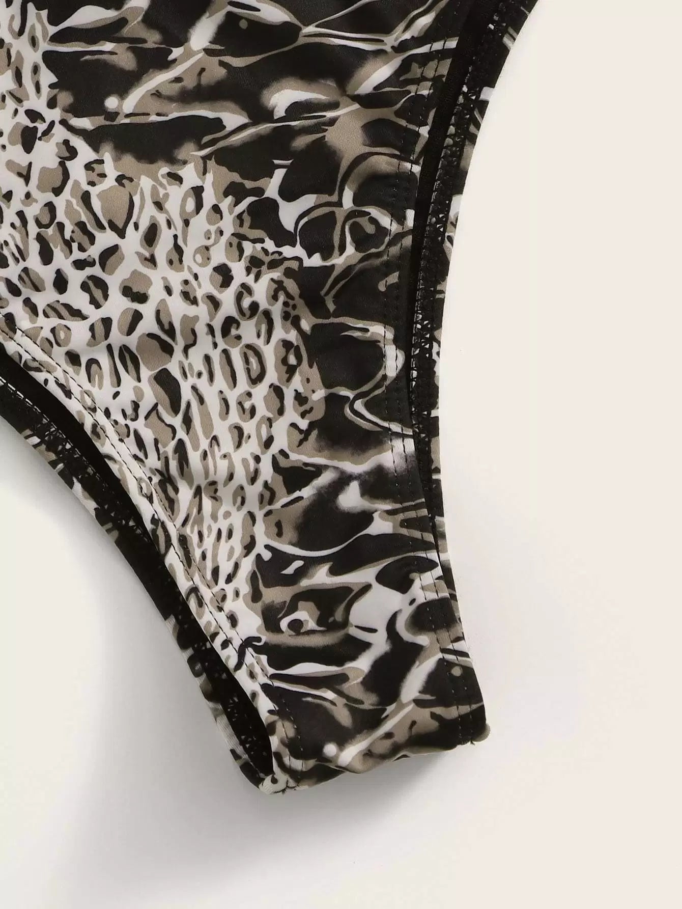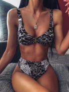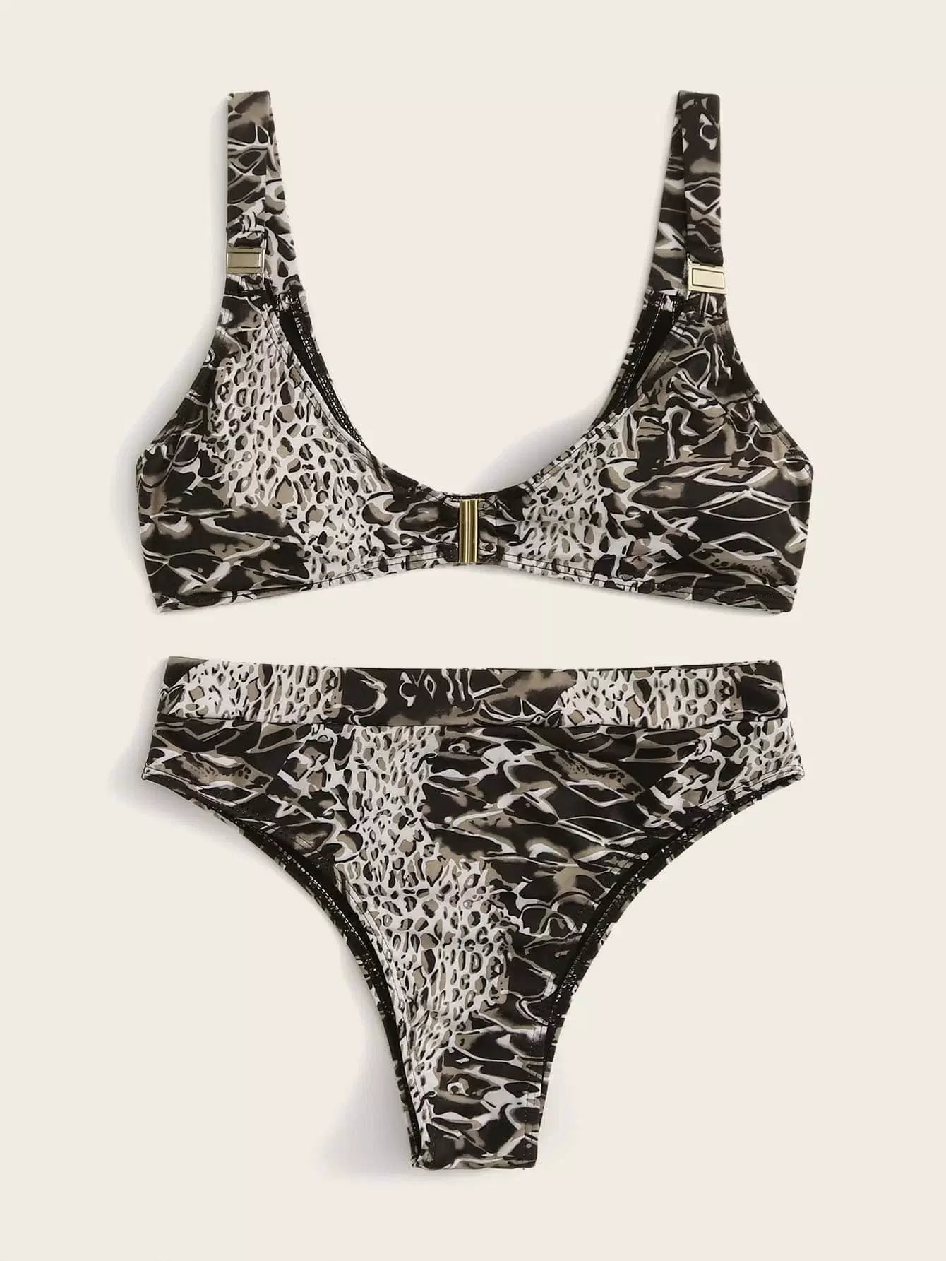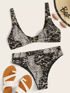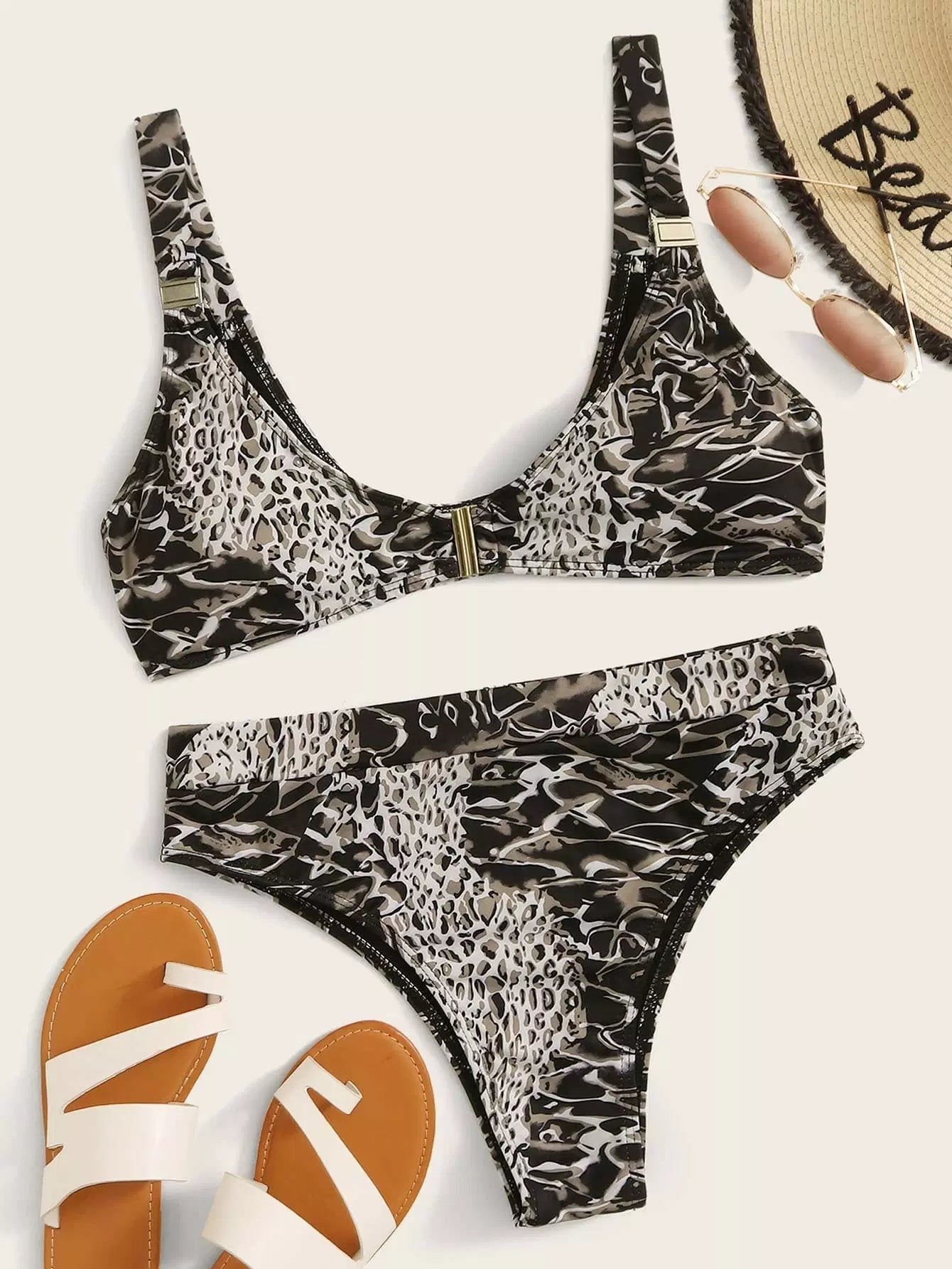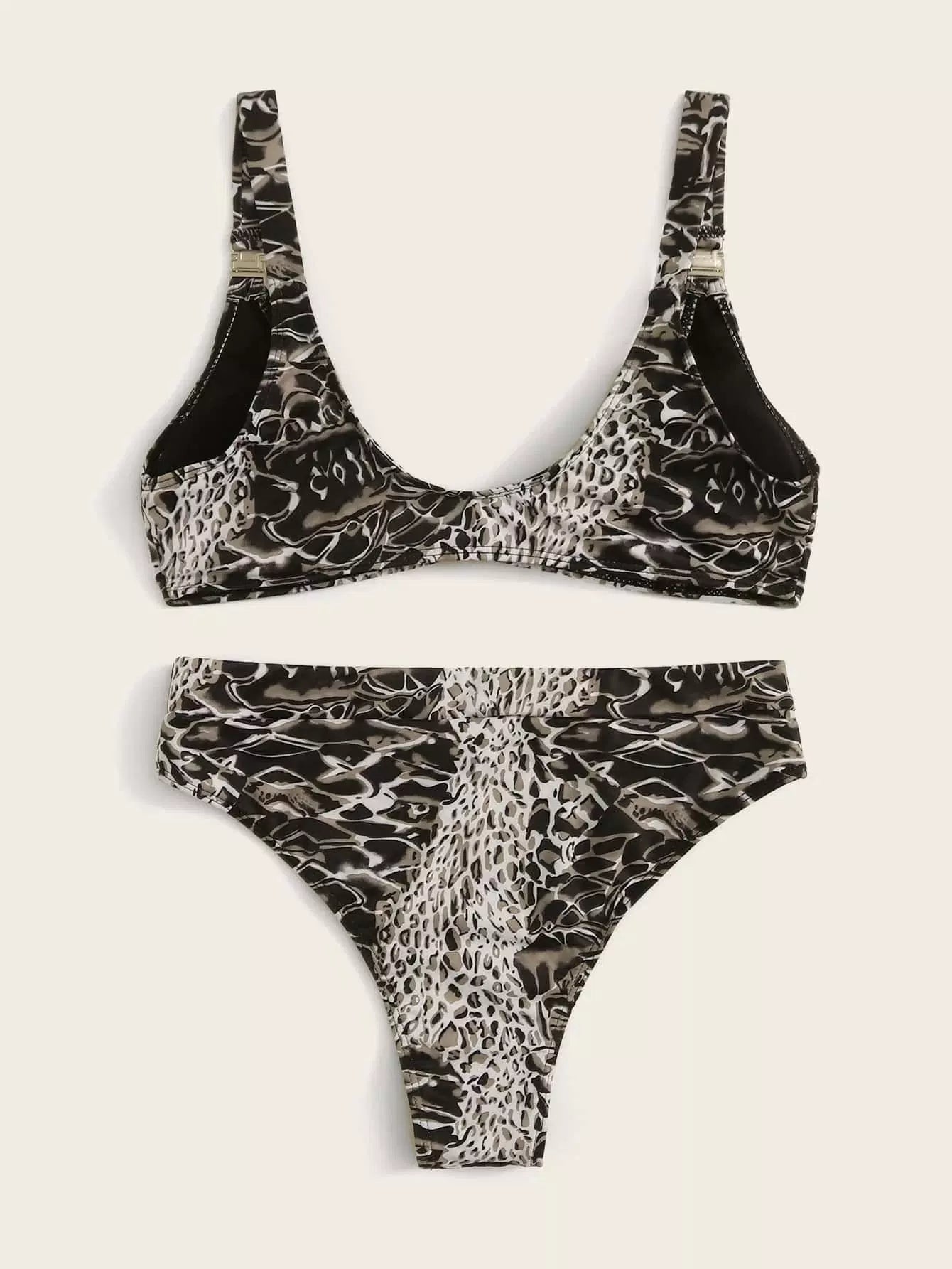 طقم بيكيني عالي الخصر بطبعة عشوائية من جلد الثعبان