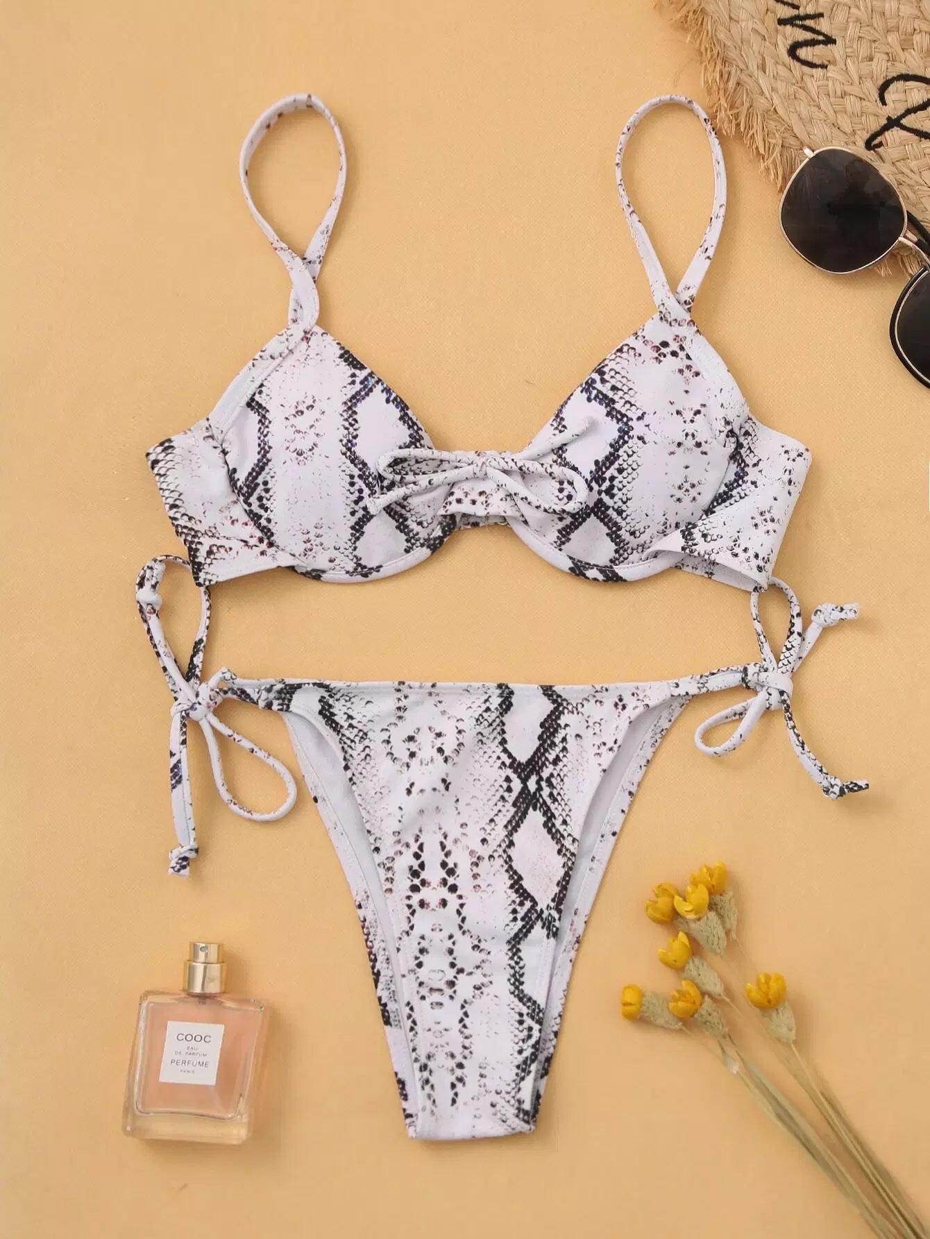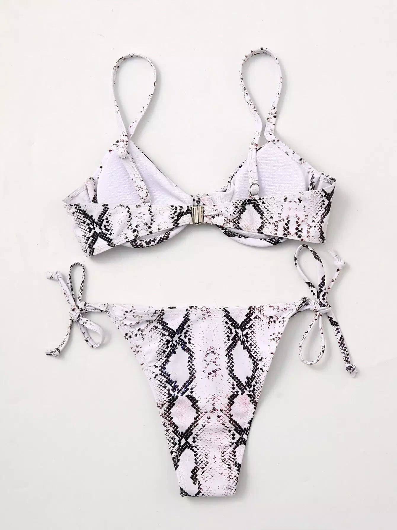 مايوه بكيني سباحة بيكيني من جلد الثعبان بربطة جانبية من جلد الثعبان