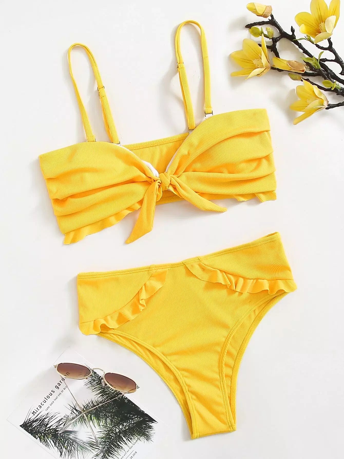 بدلة سباحة بيكيني بكشكش بعقدة سادة