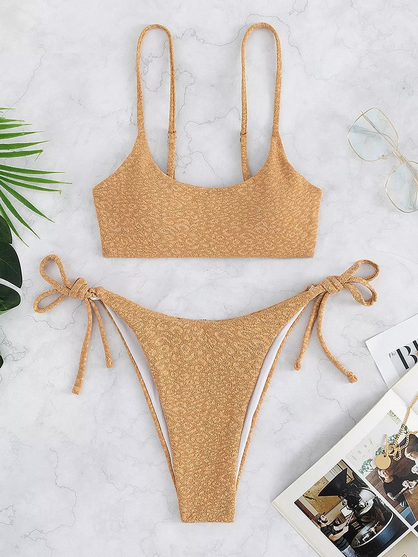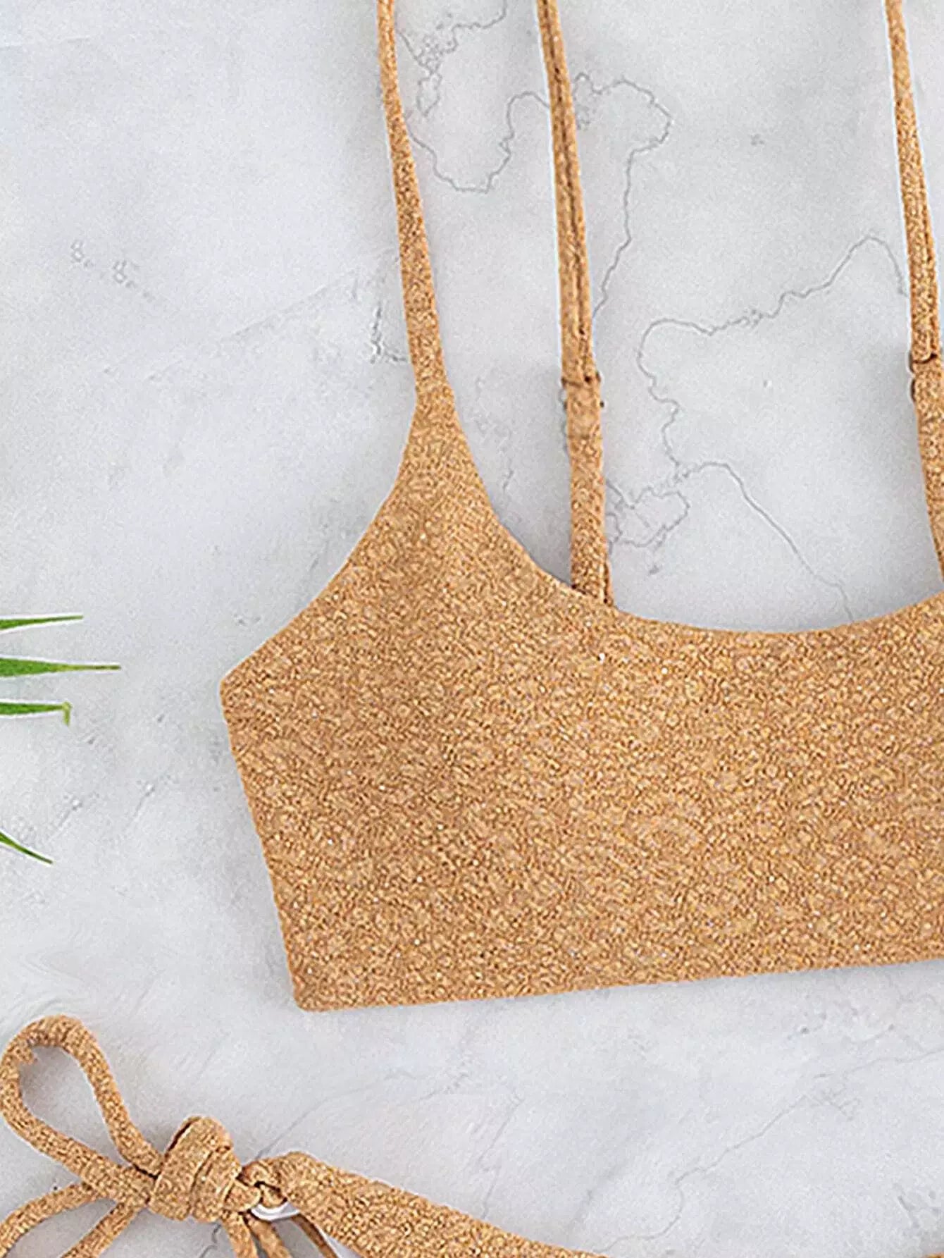 بدلة سباحة بيكيني سادة بربطة جانبية سادة