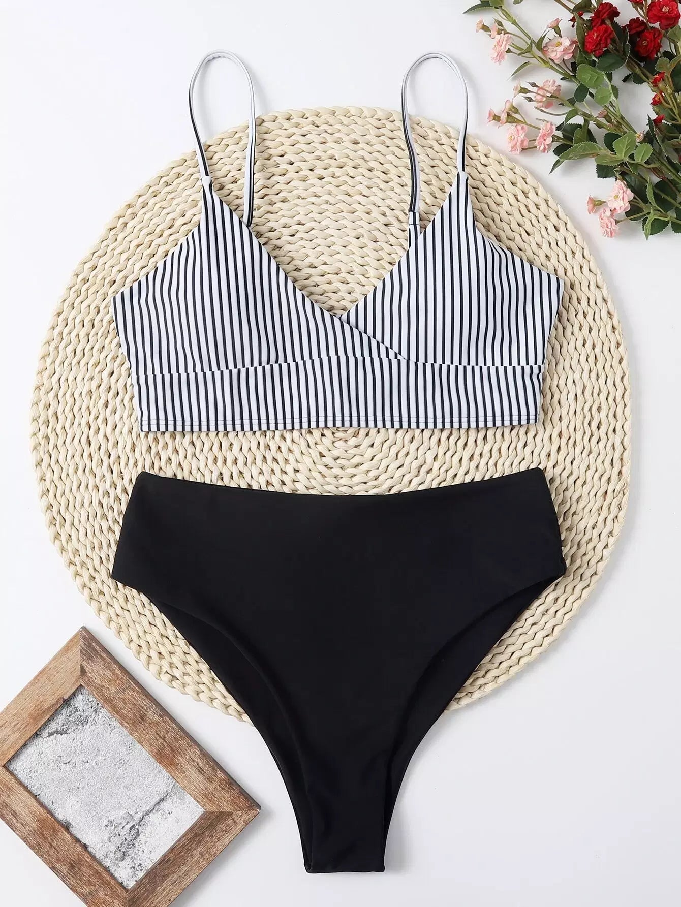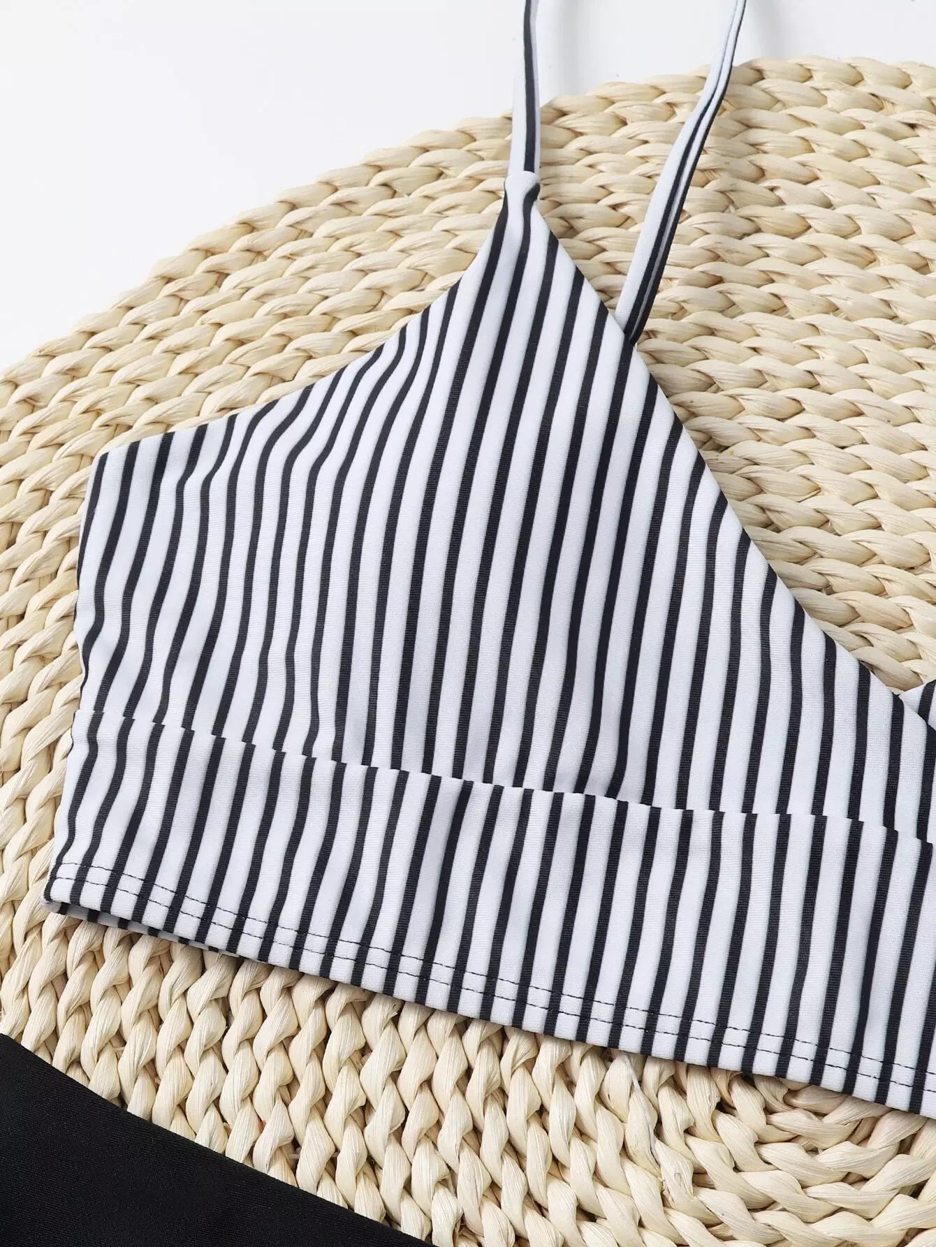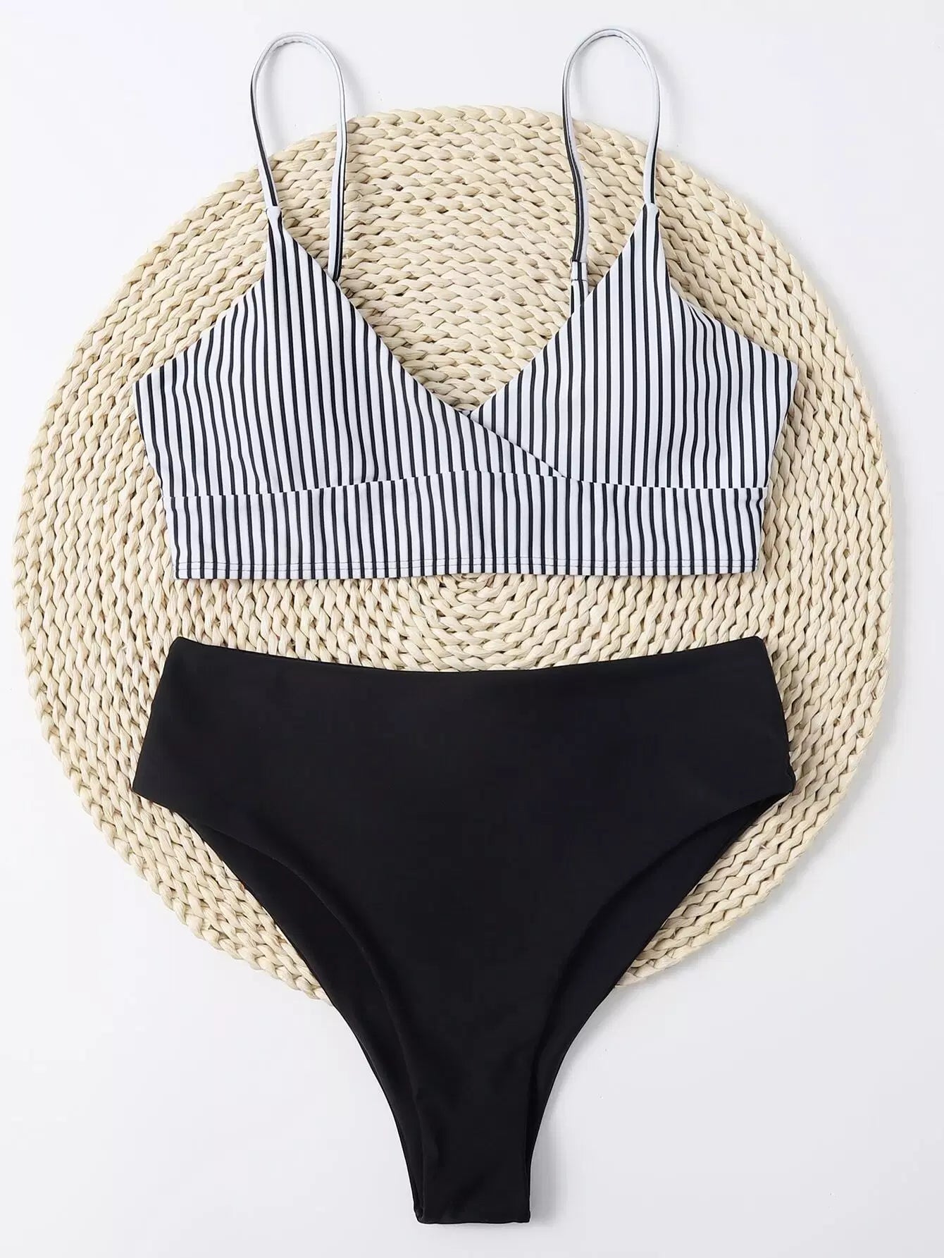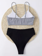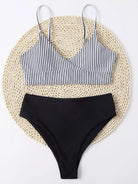بدلة سباحة بيكيني مخططة عالية الخصر