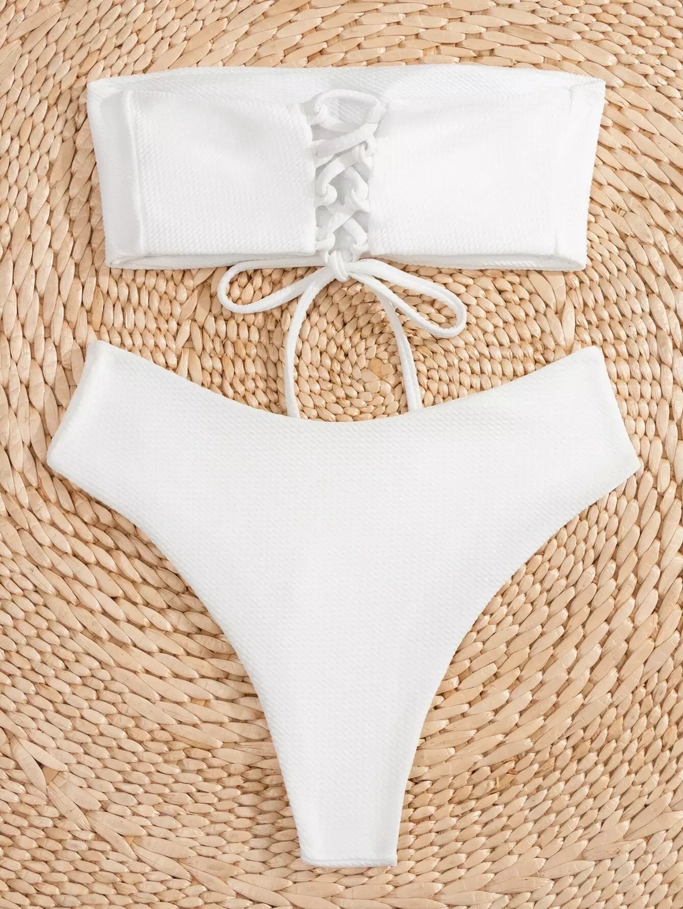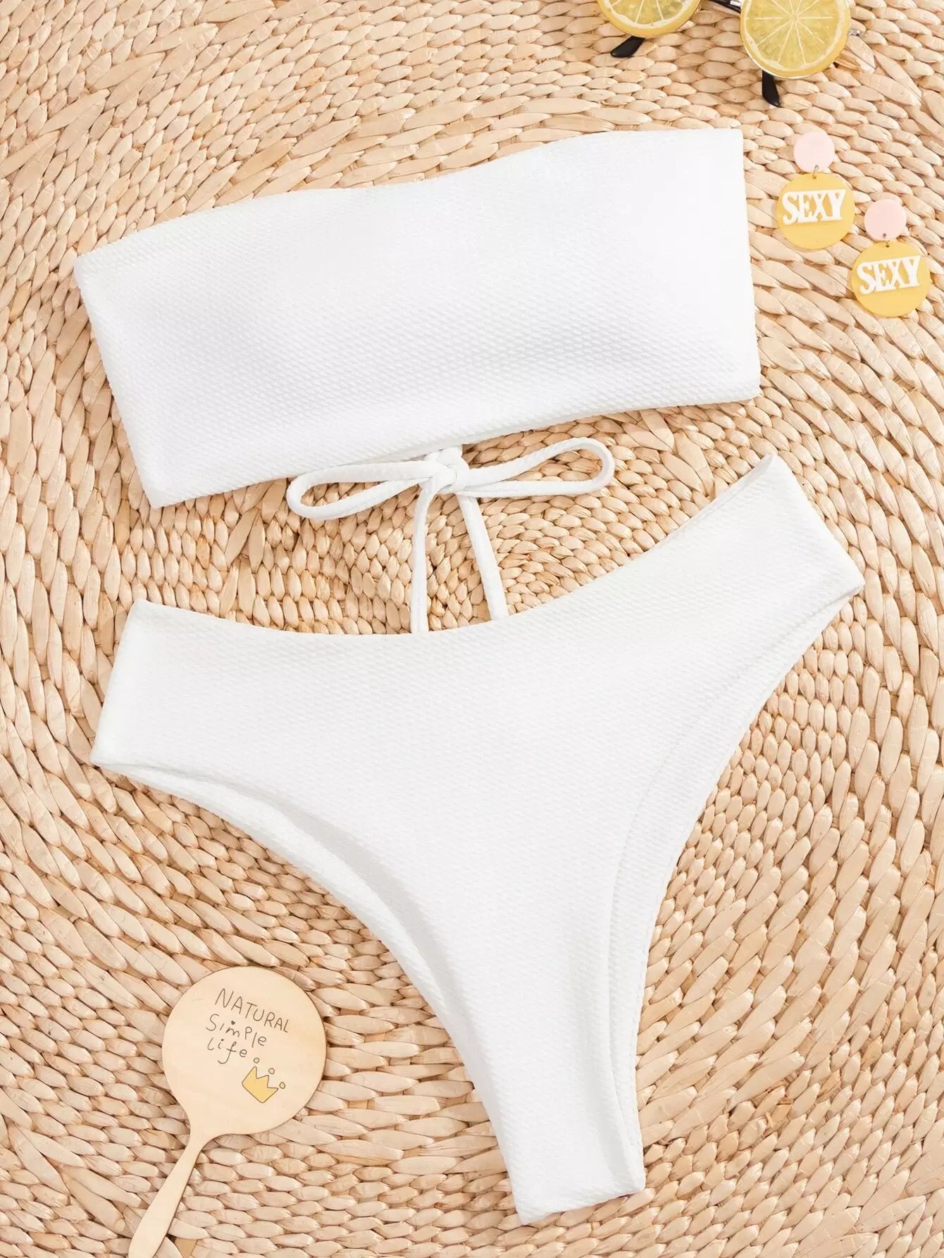 بدلة سباحة بيكيني بعصابة مزخرفة بعصابة منقوشة