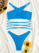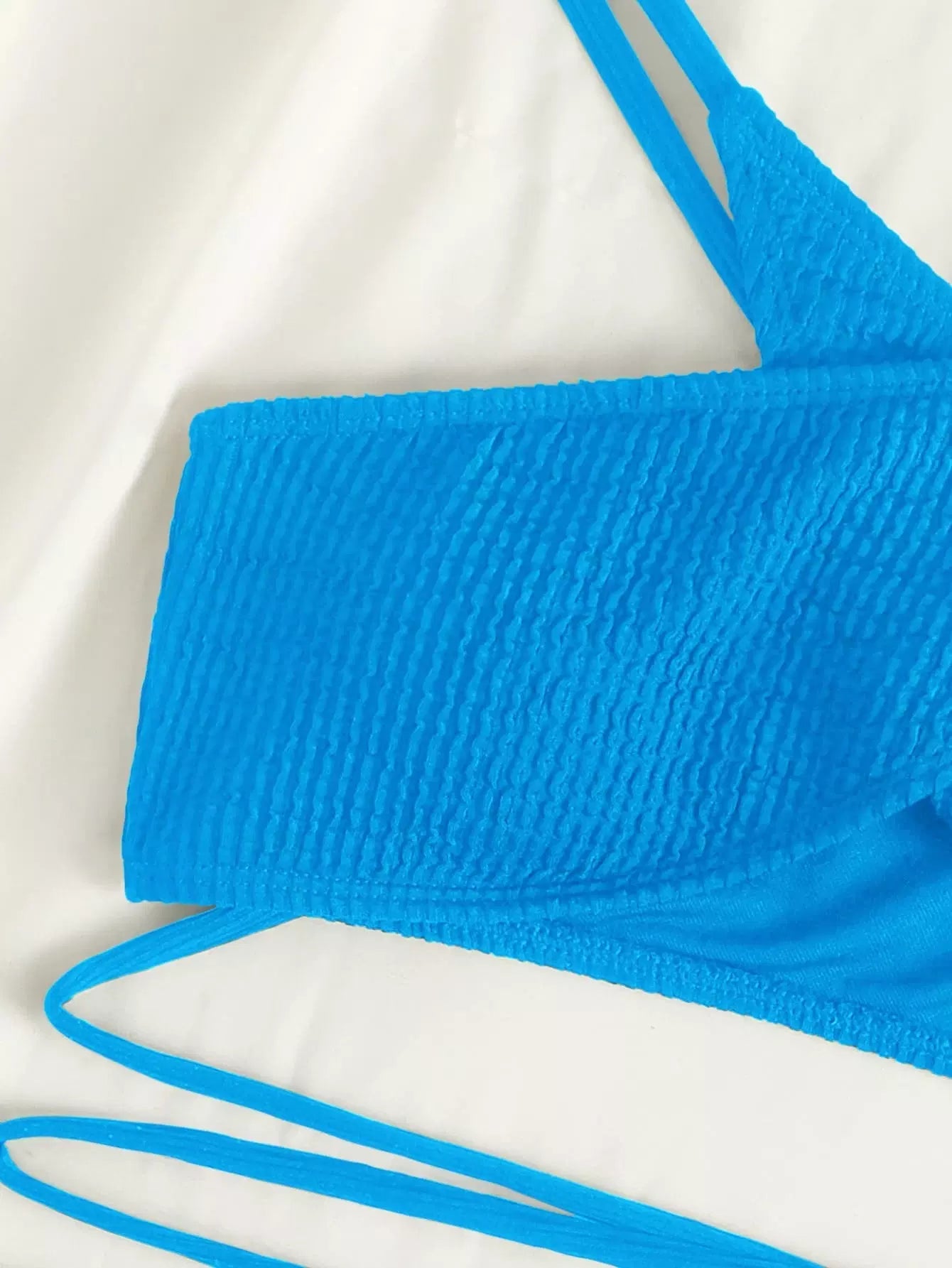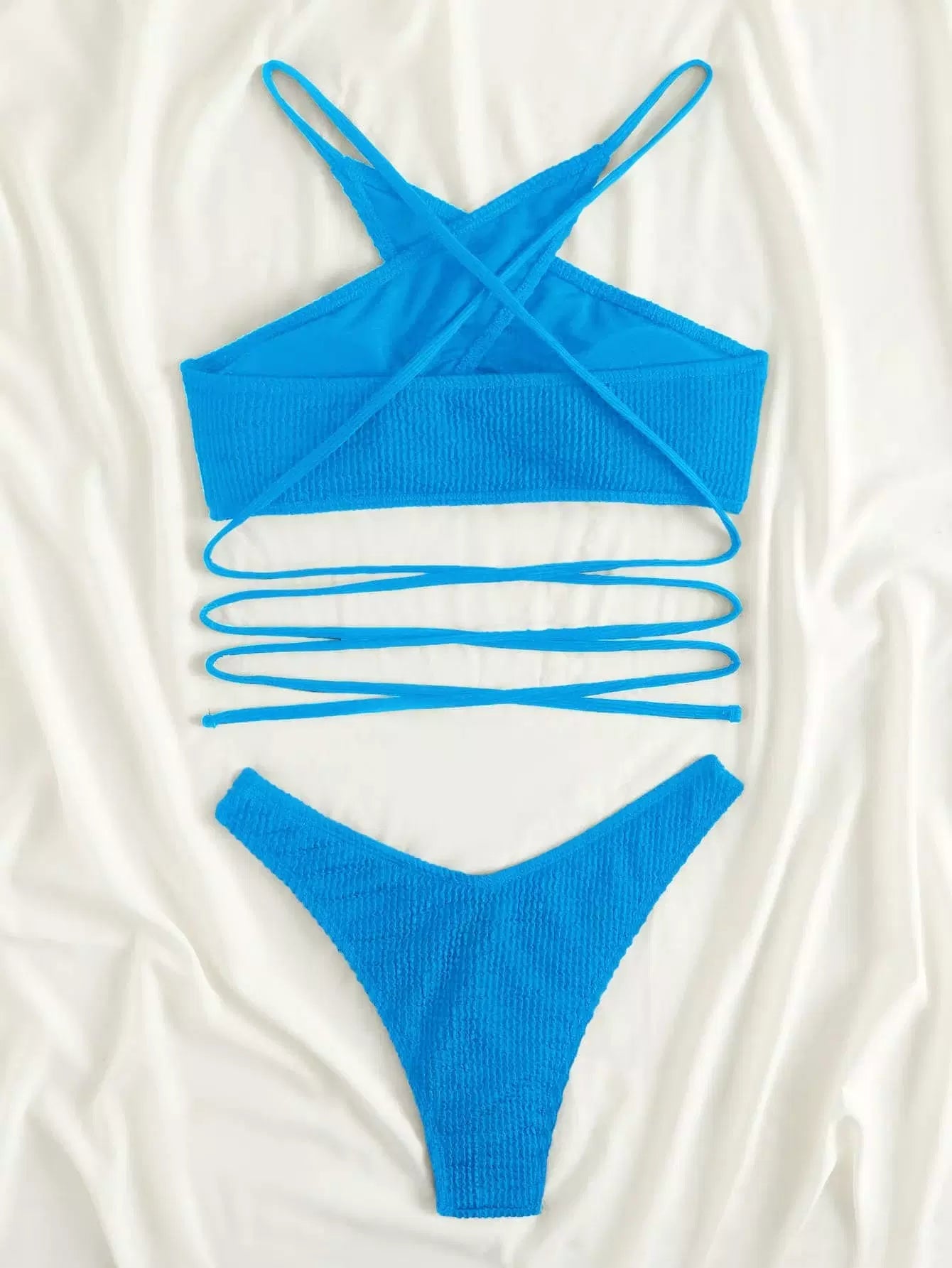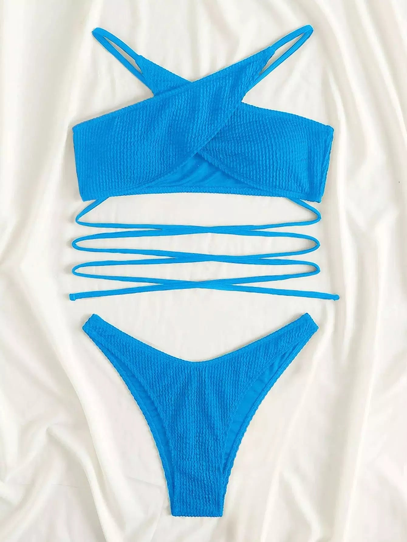 بدلة سباحة بيكيني بقصّة عالية متقاطعة بملمس محكم