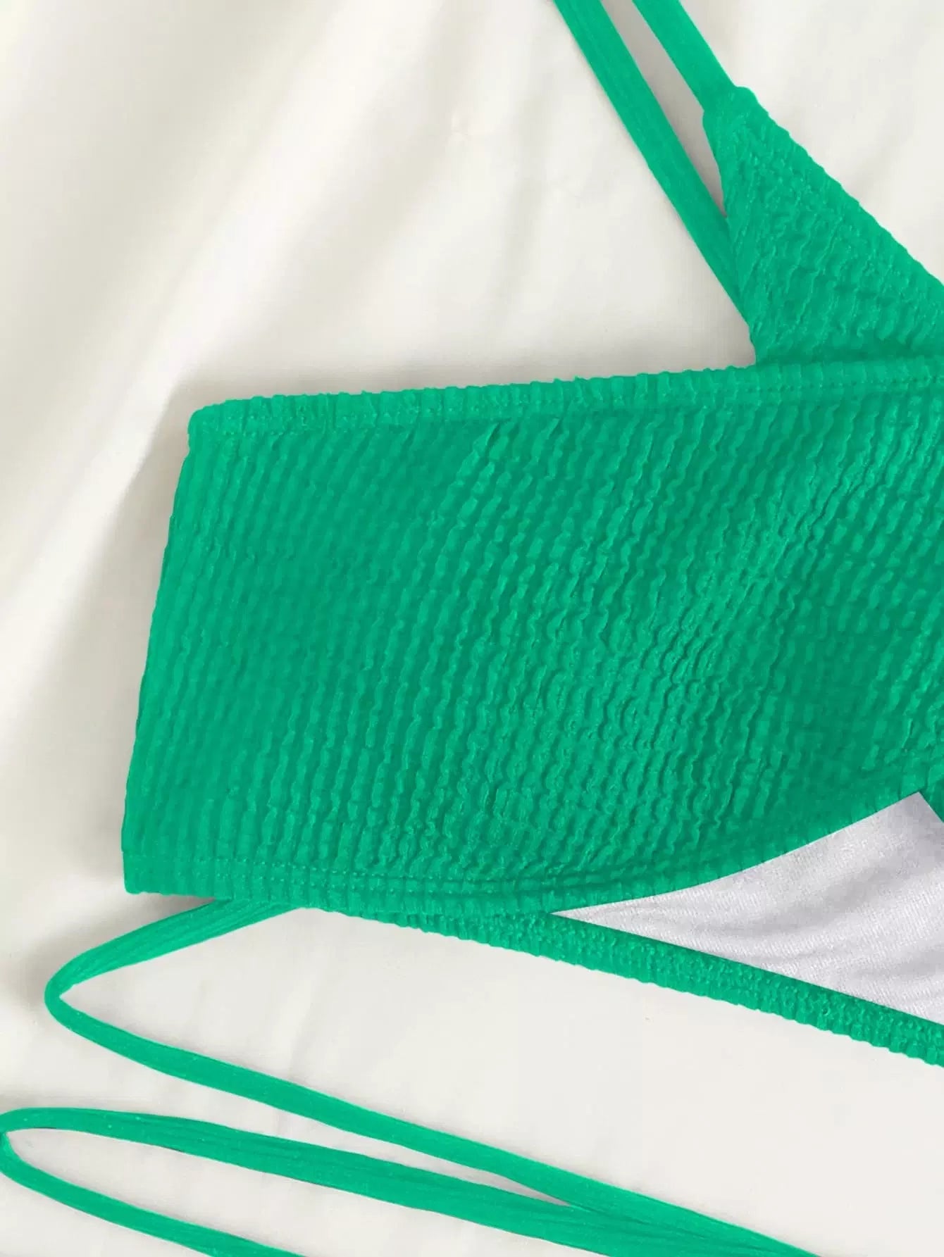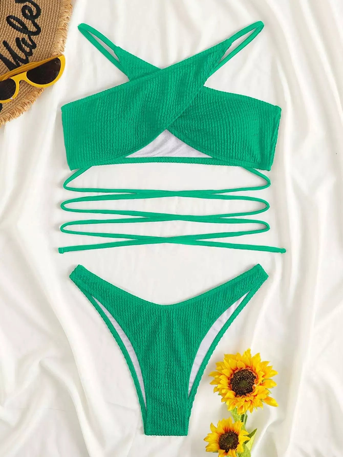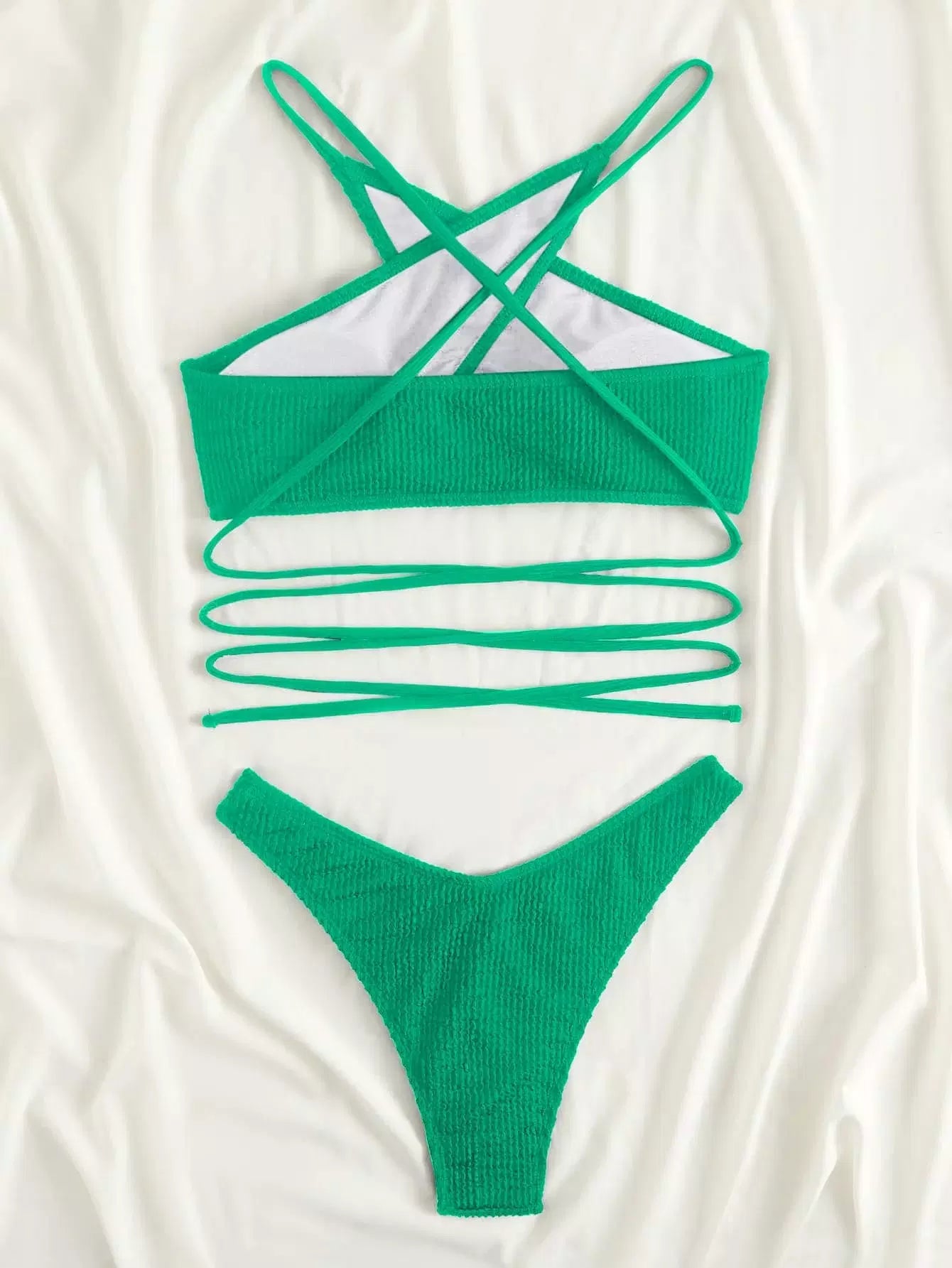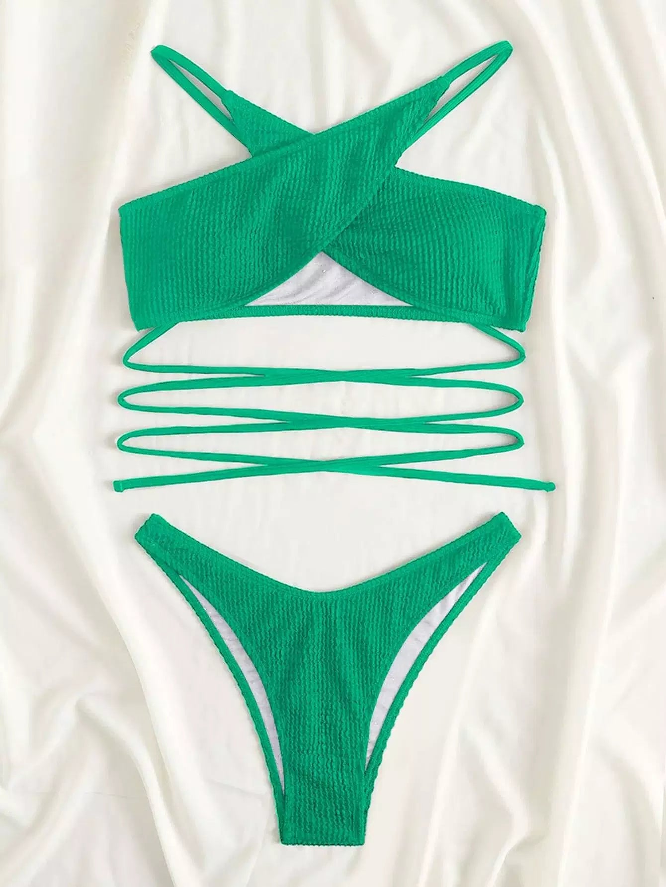 بدلة سباحة بيكيني بقصّة عالية متقاطعة بملمس محكم