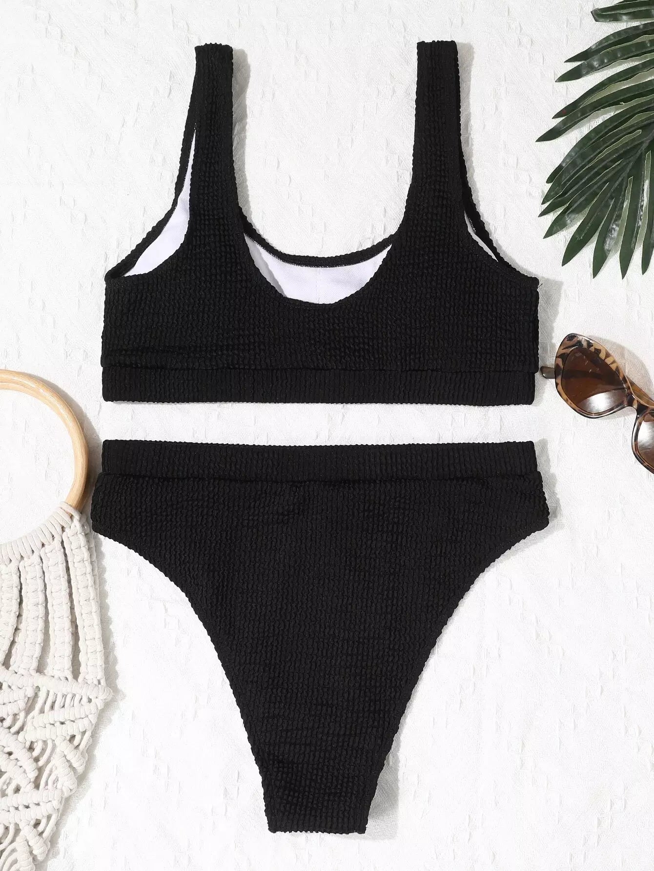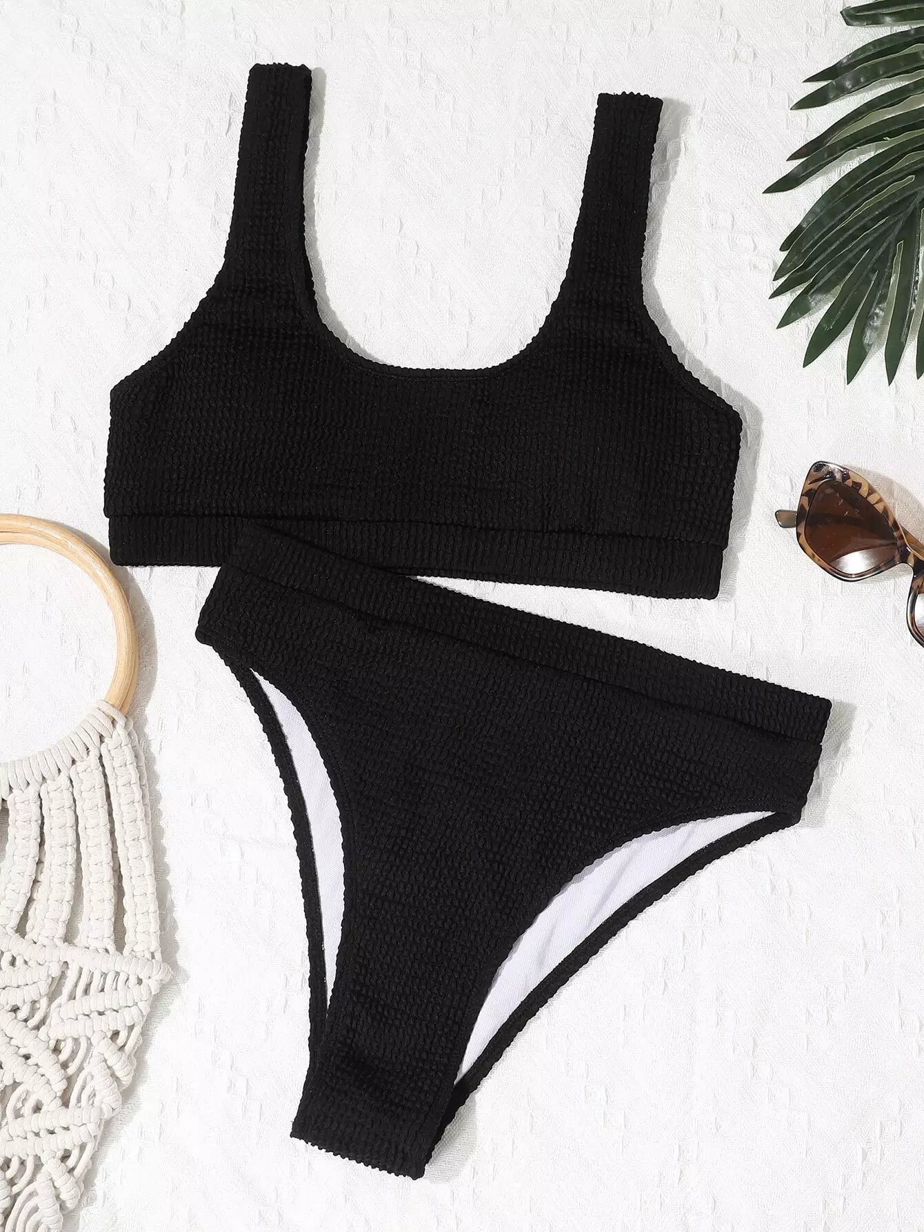بدلة سباحة بيكيني عالي الخصر بملمس محكم