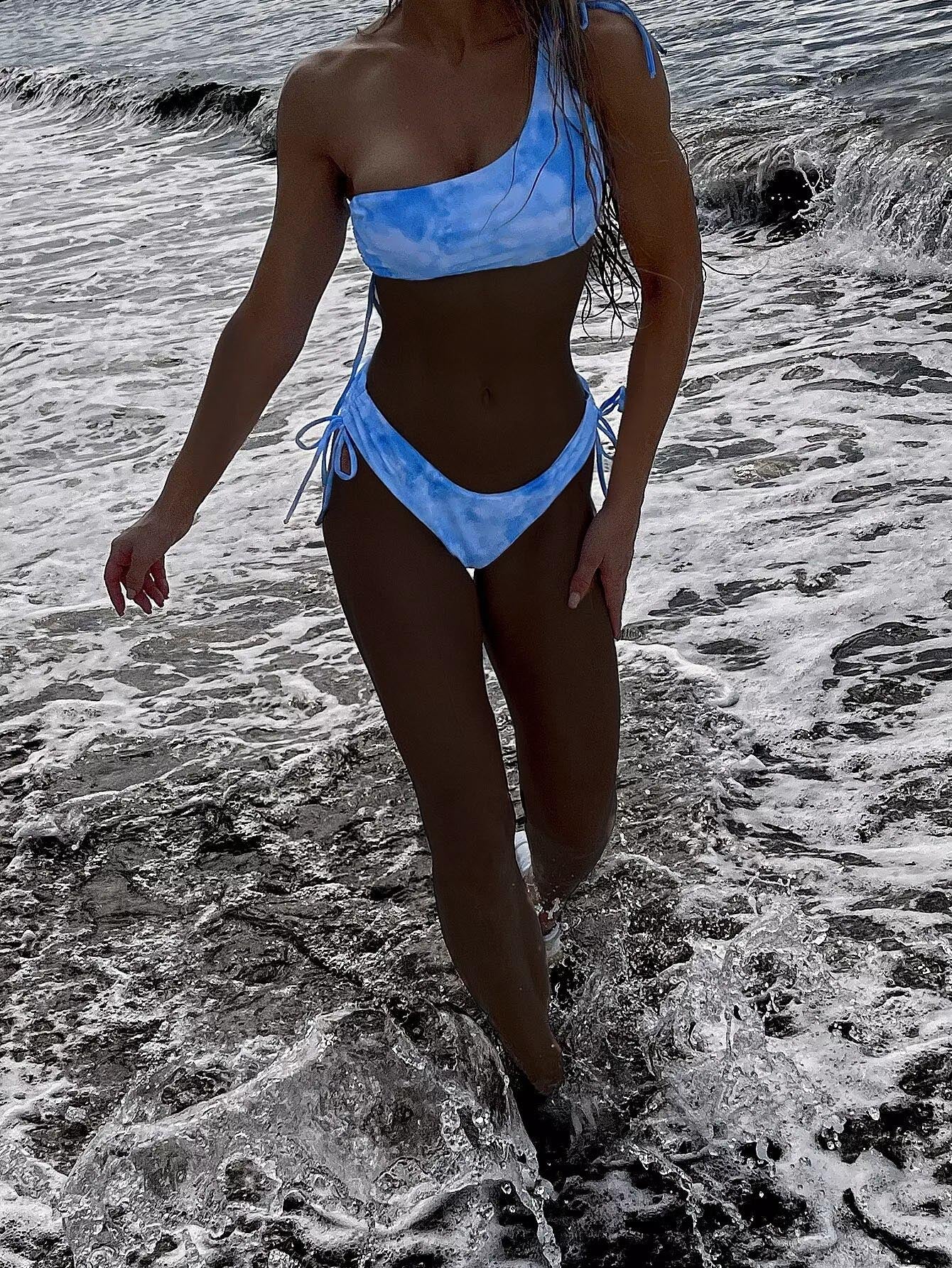 بيكيني سباحة بيكيني بأكتاف واحدة مصبوغ برباط برباط من صبغة التعادل