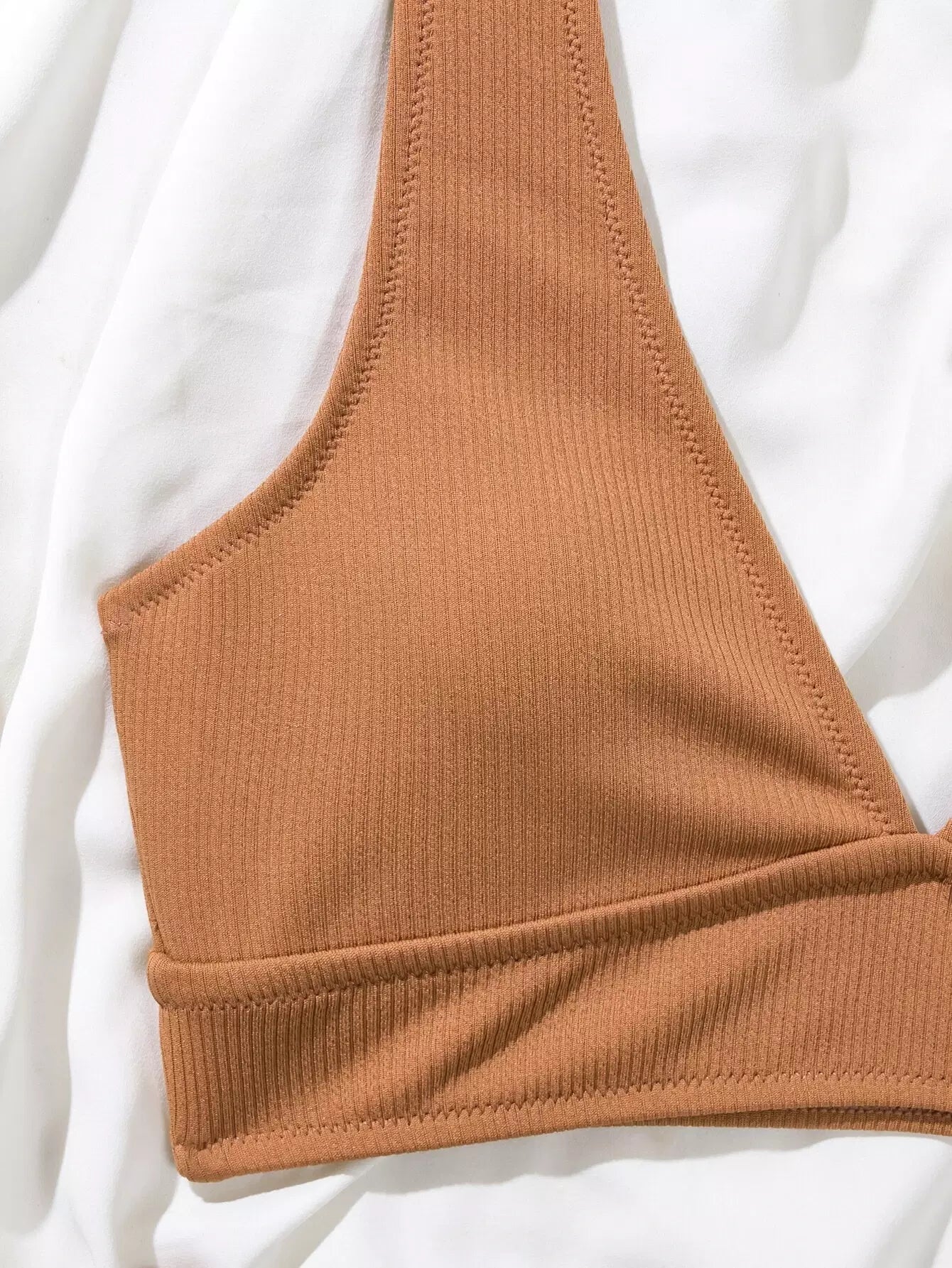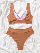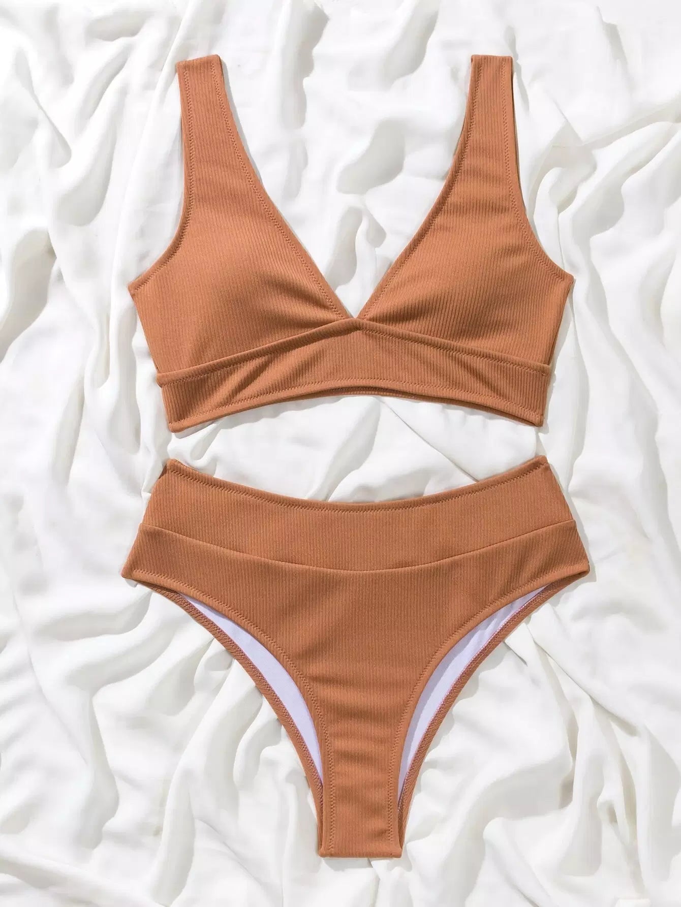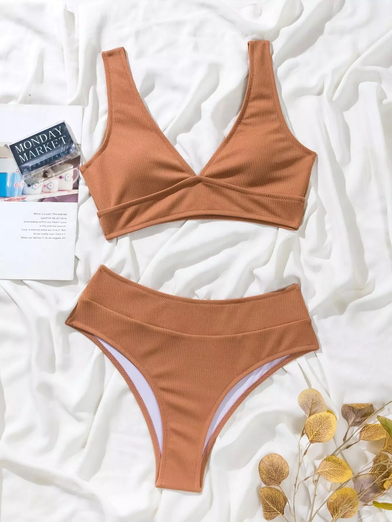 بدلة سباحة بيكيني برقبة على شكل حرف V عالية الخصر