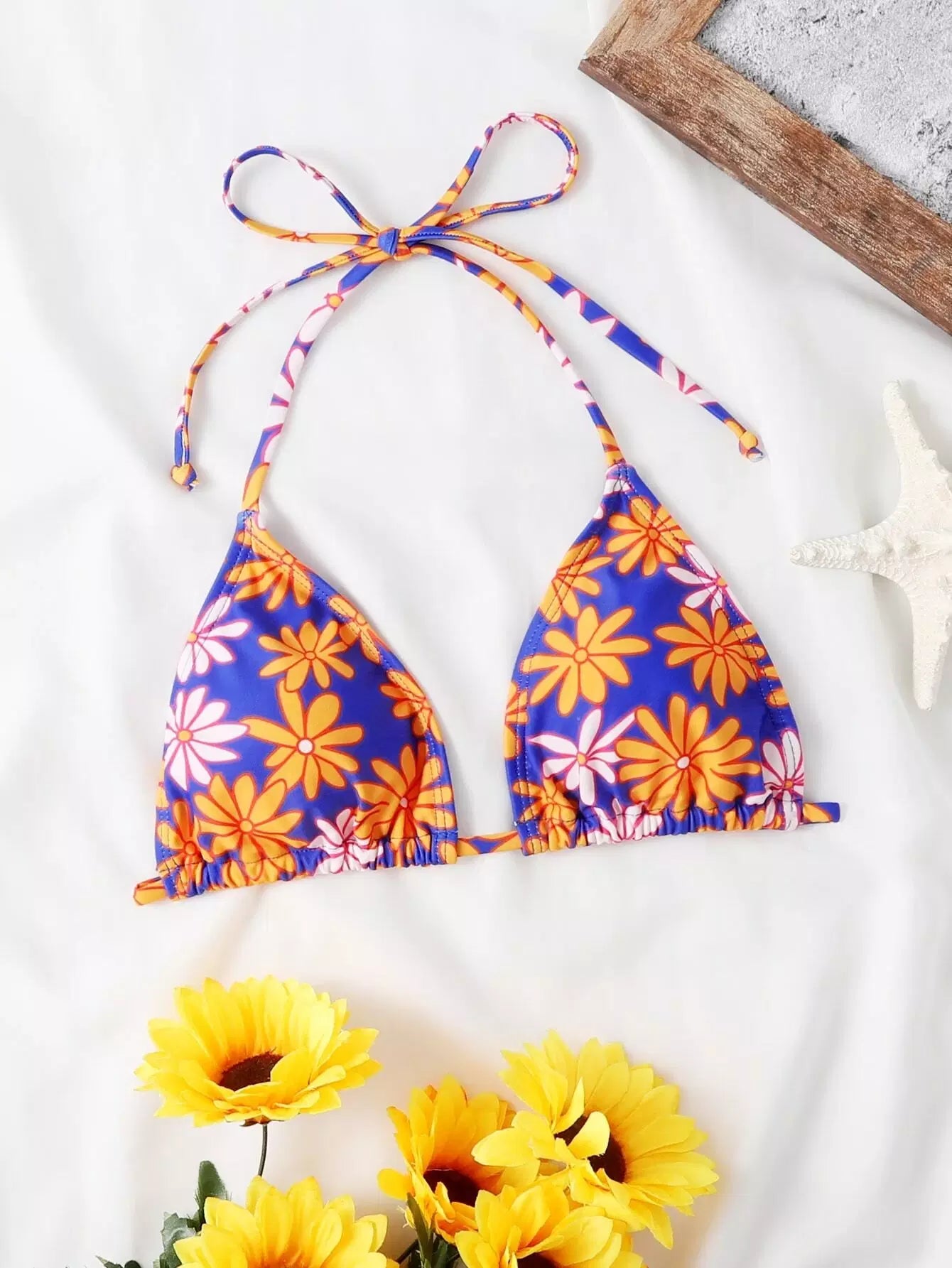 بلوزة بيكيني مثلث بطبعة زهور على شكل مثلث
