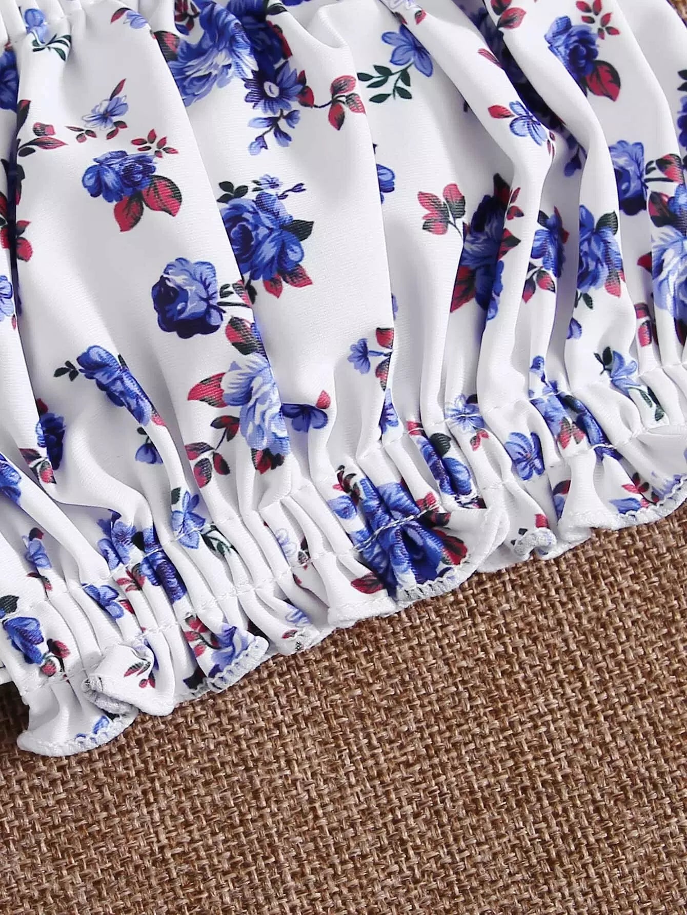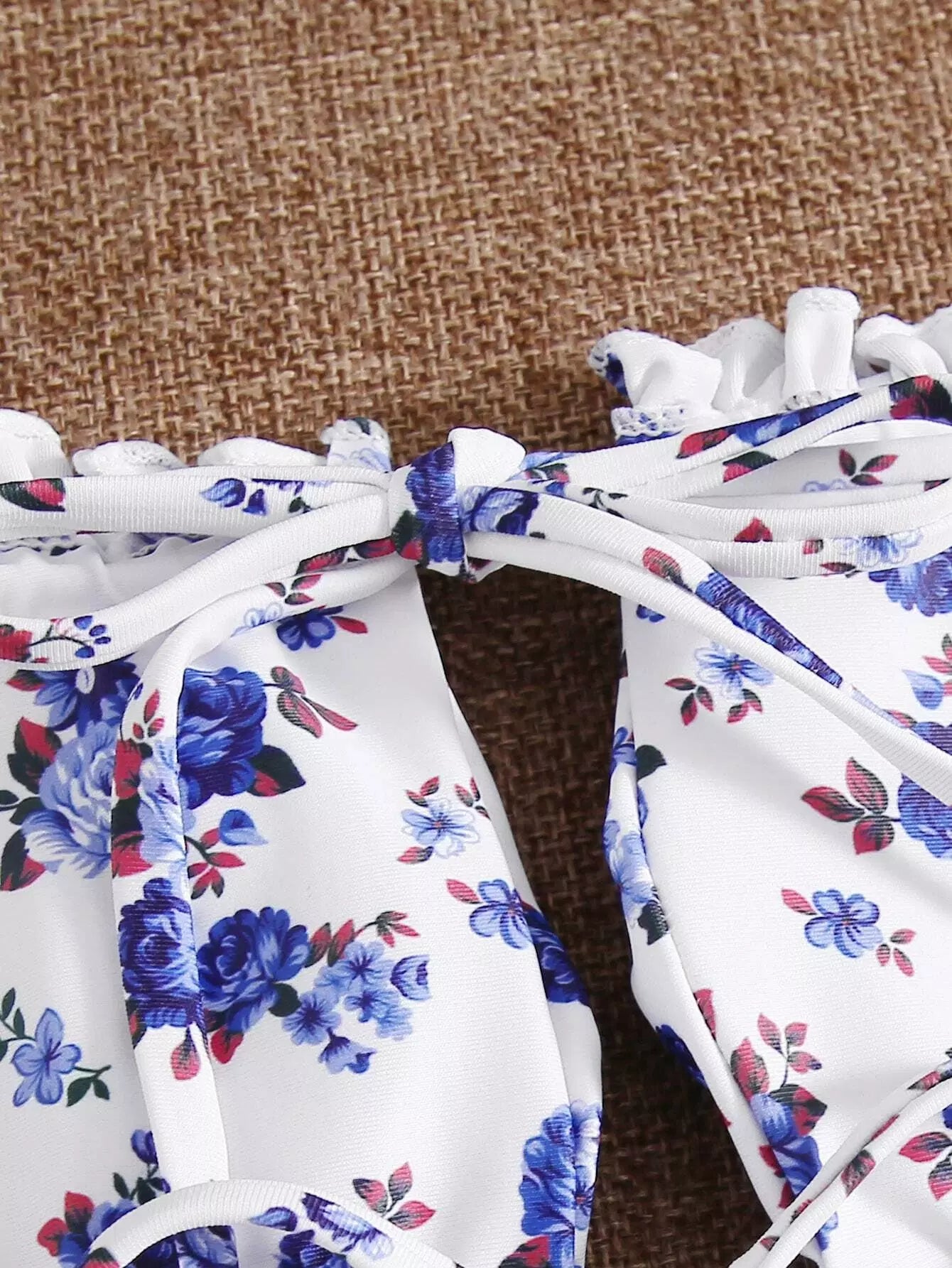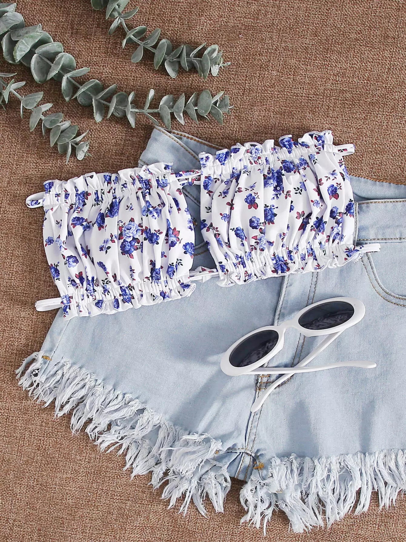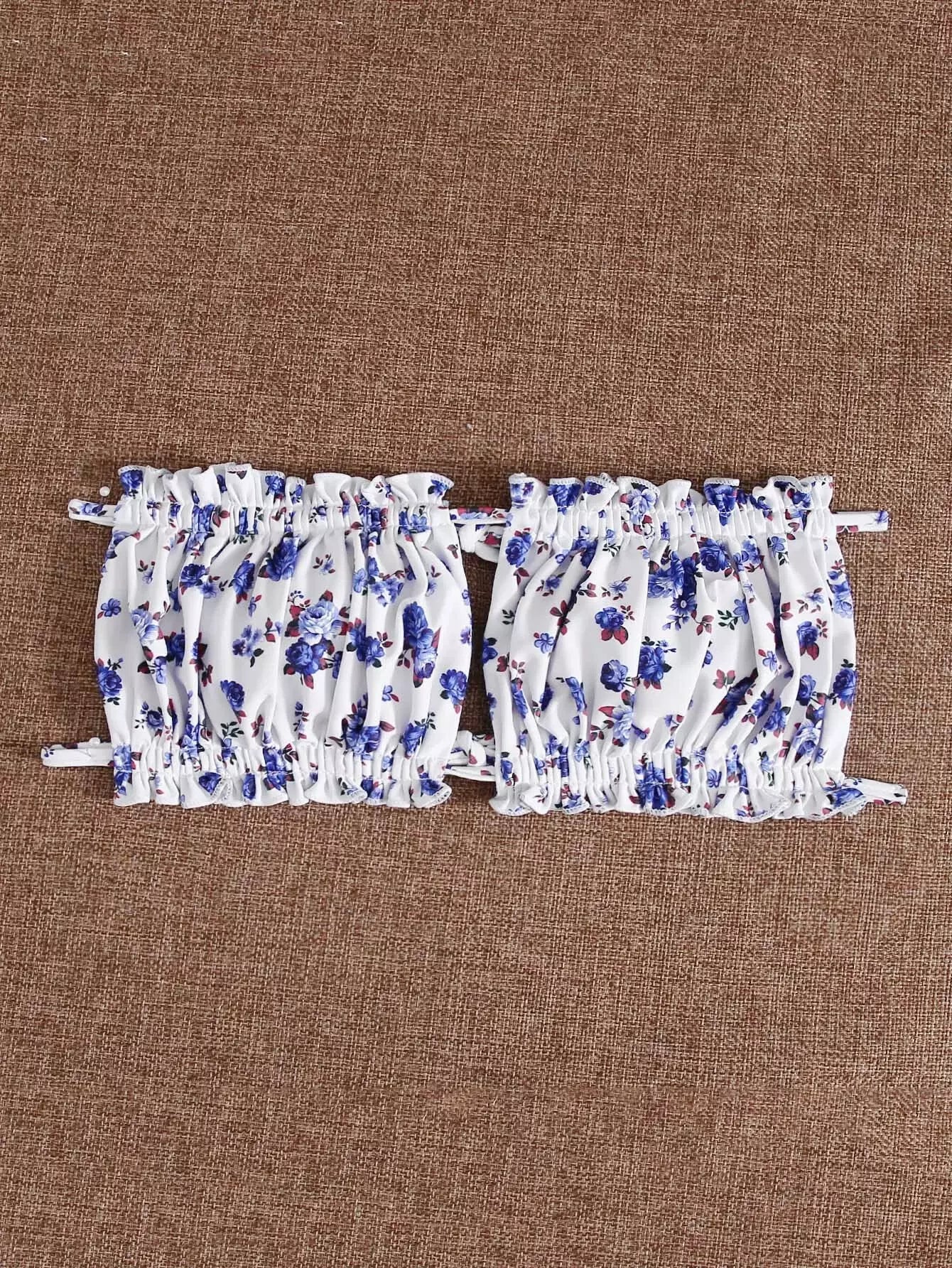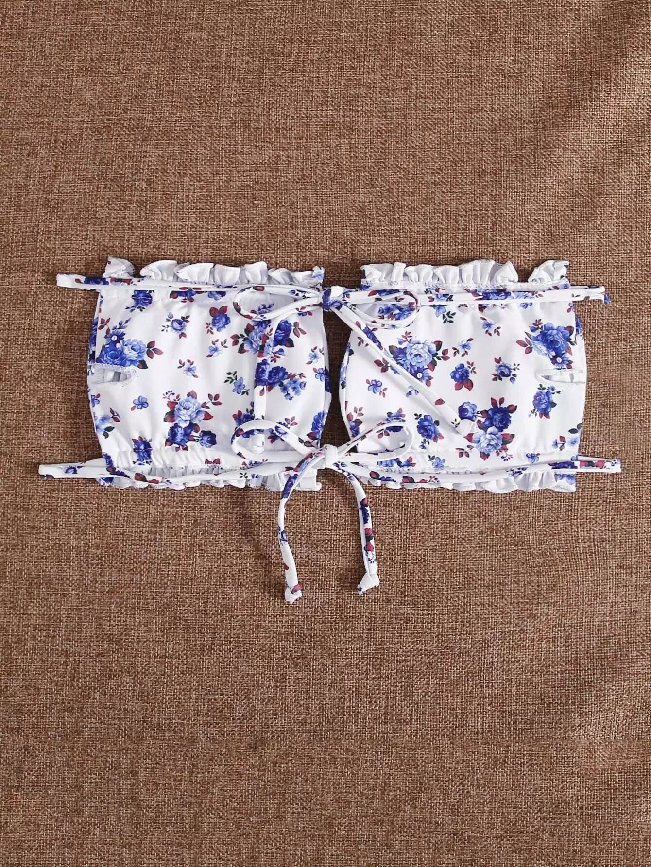 بلوزة بيكيني كشكش زهري كشكش على الصدر بعصابة عريضة