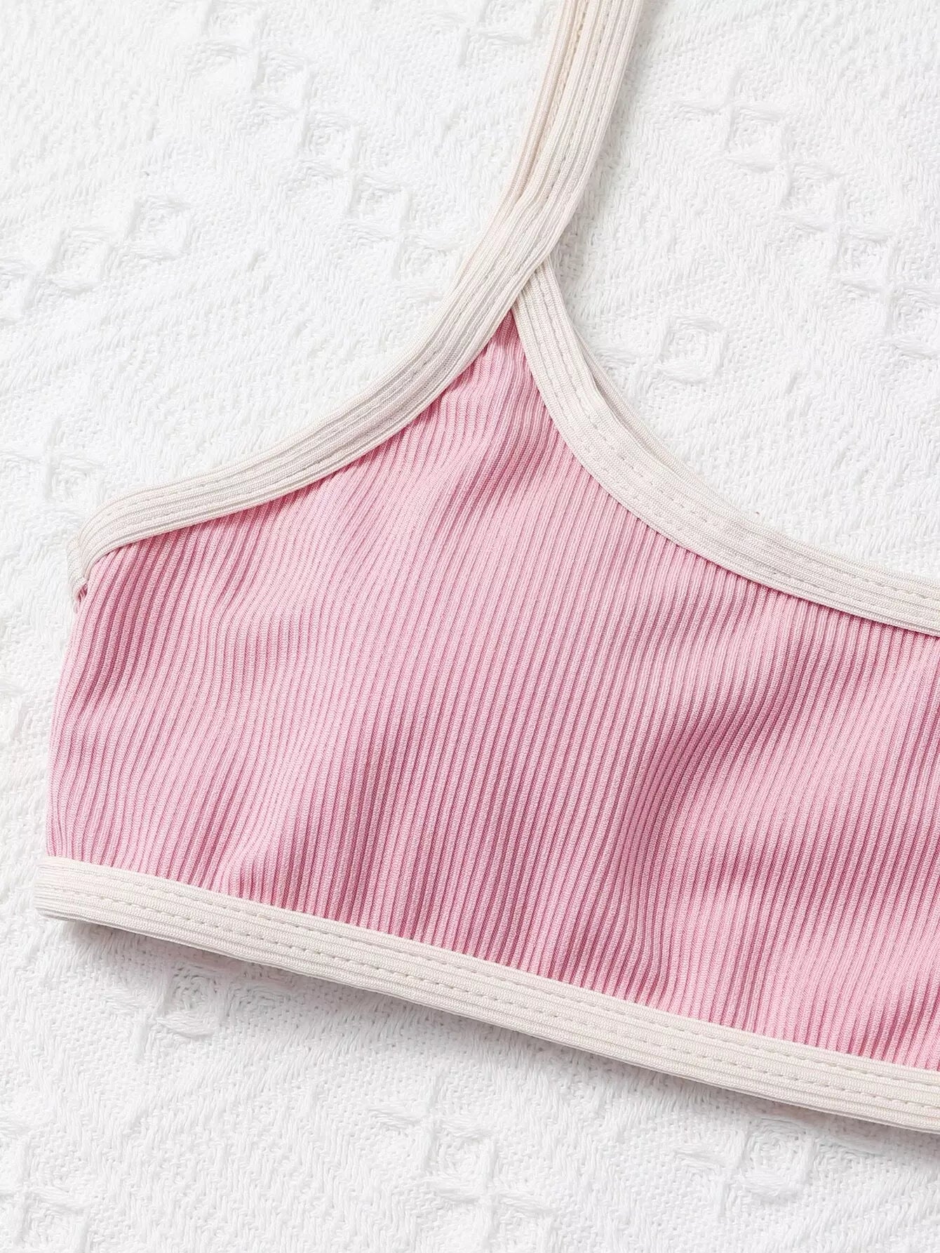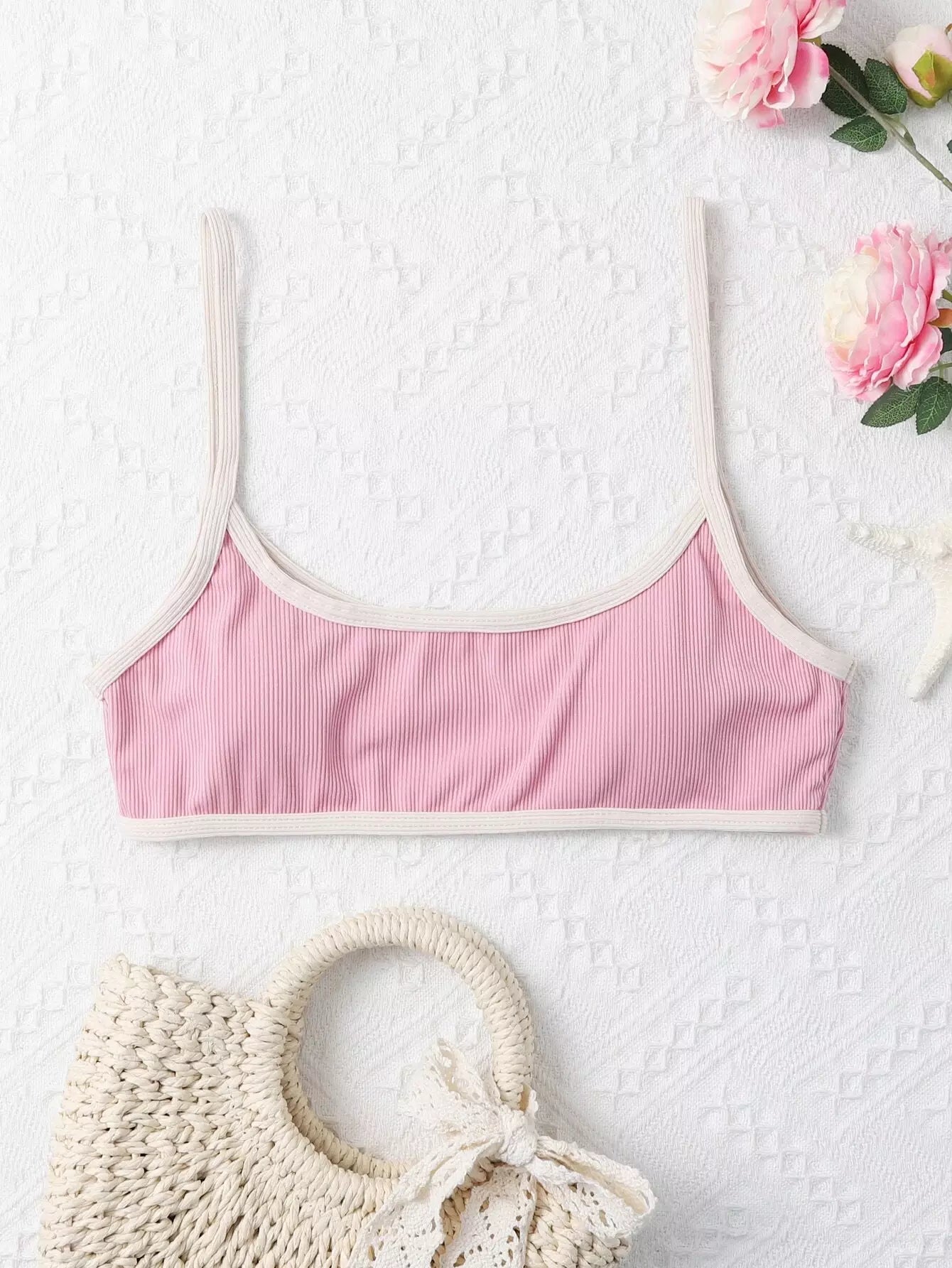 بلوزة بيكيني بحزام مضلع بلون مغاير مضلع