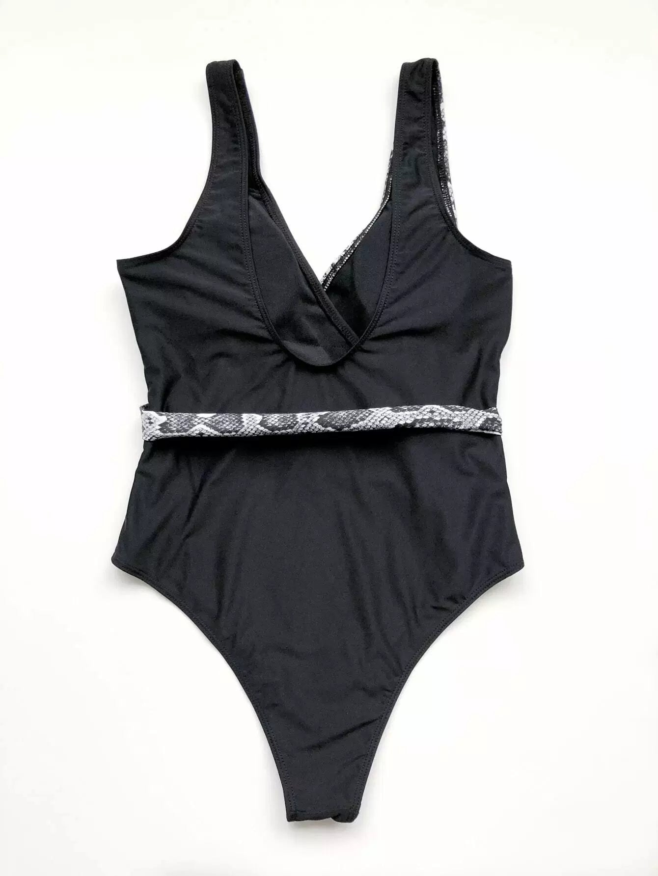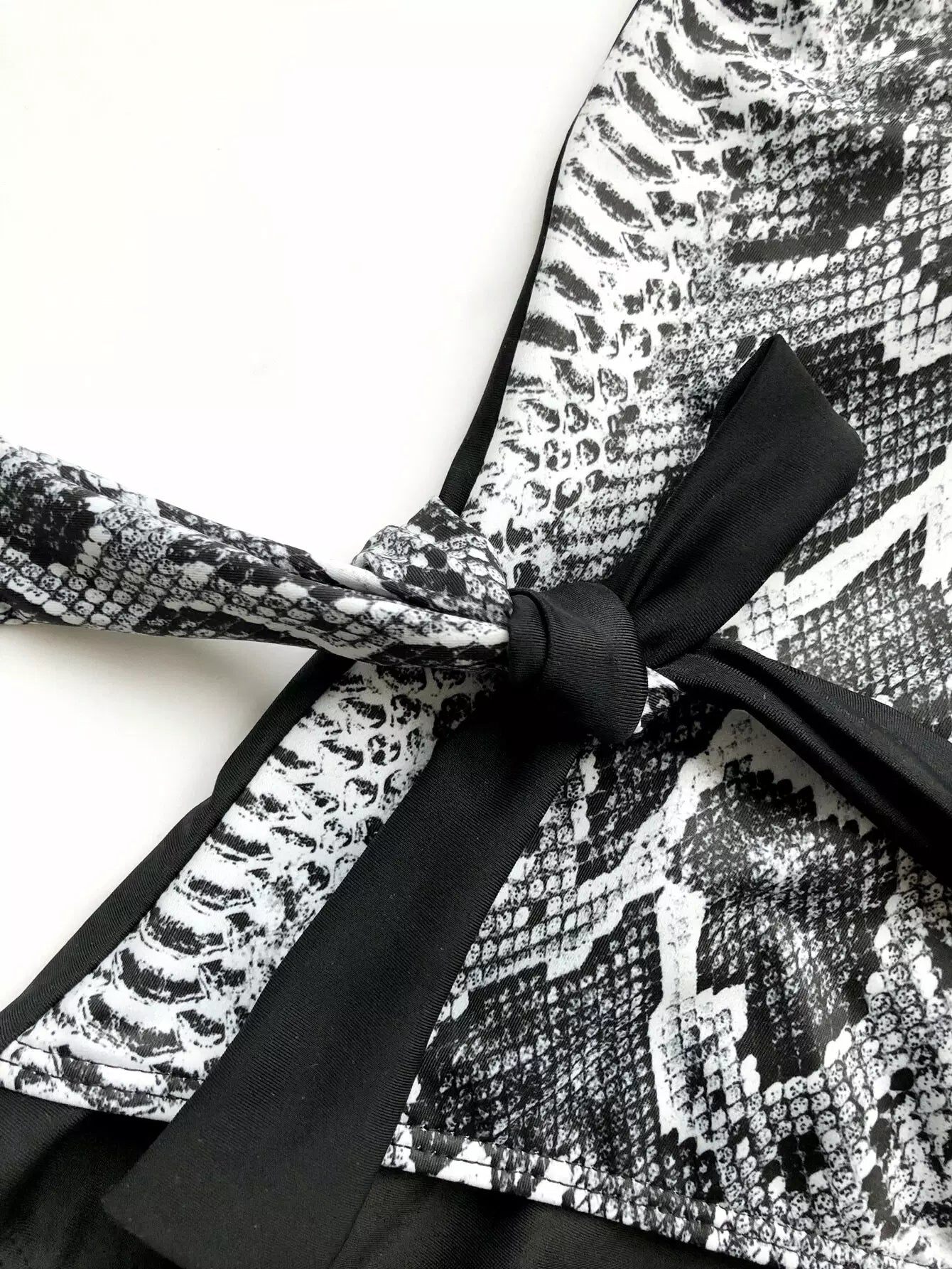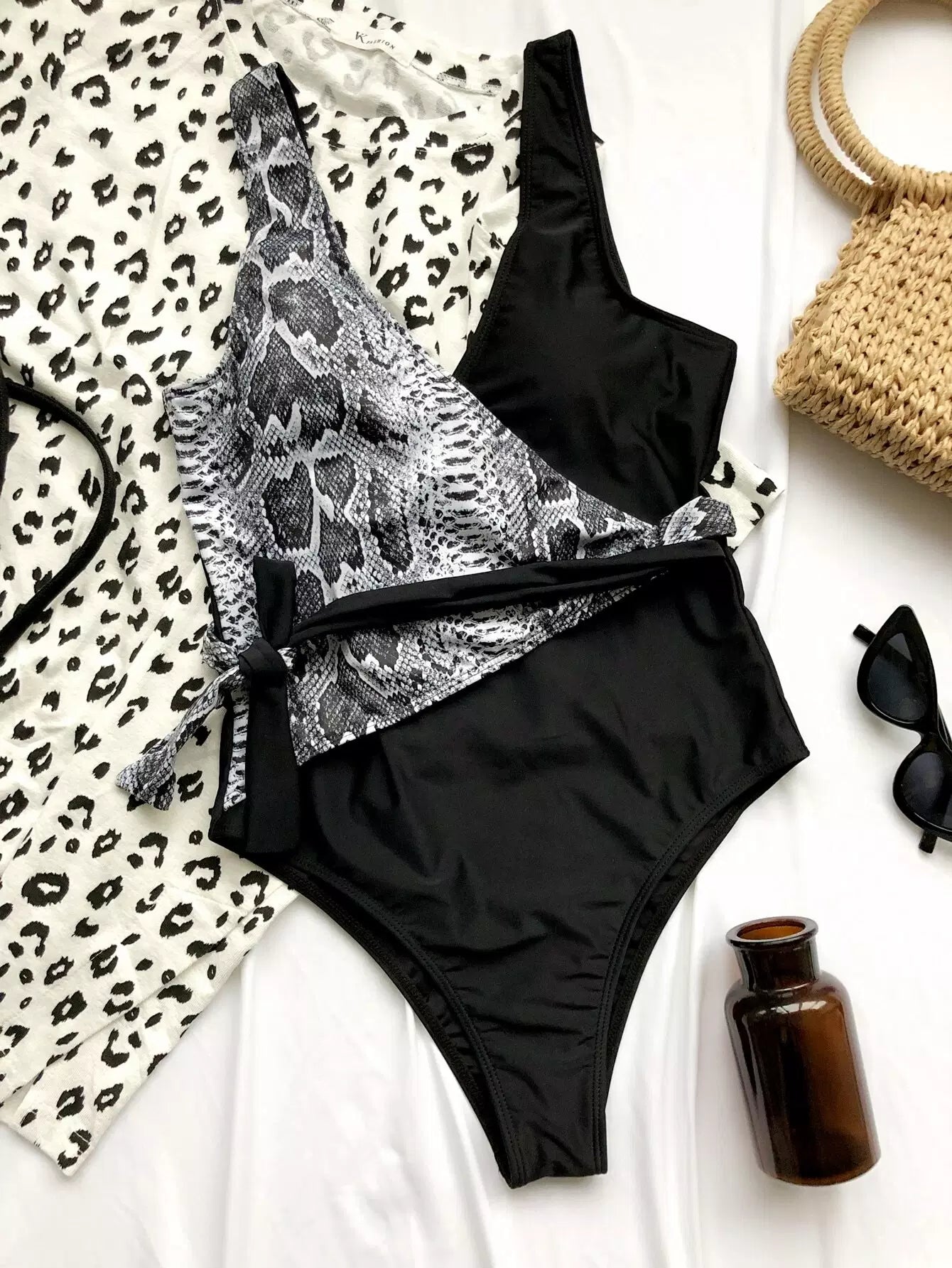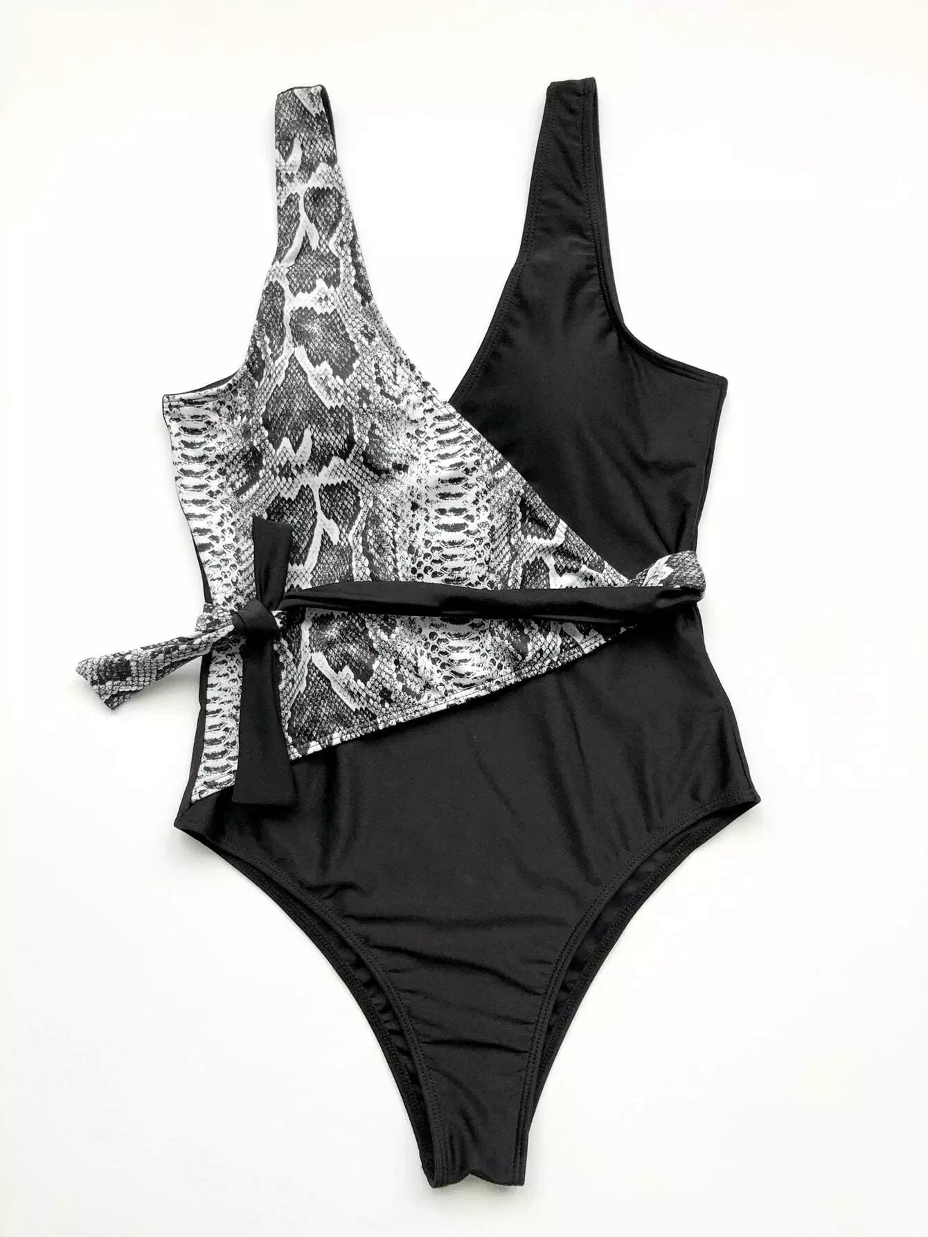 بدلة سباحة من قطعة واحدة مصنوعة من جلد الثعبان متباين بدون حزام