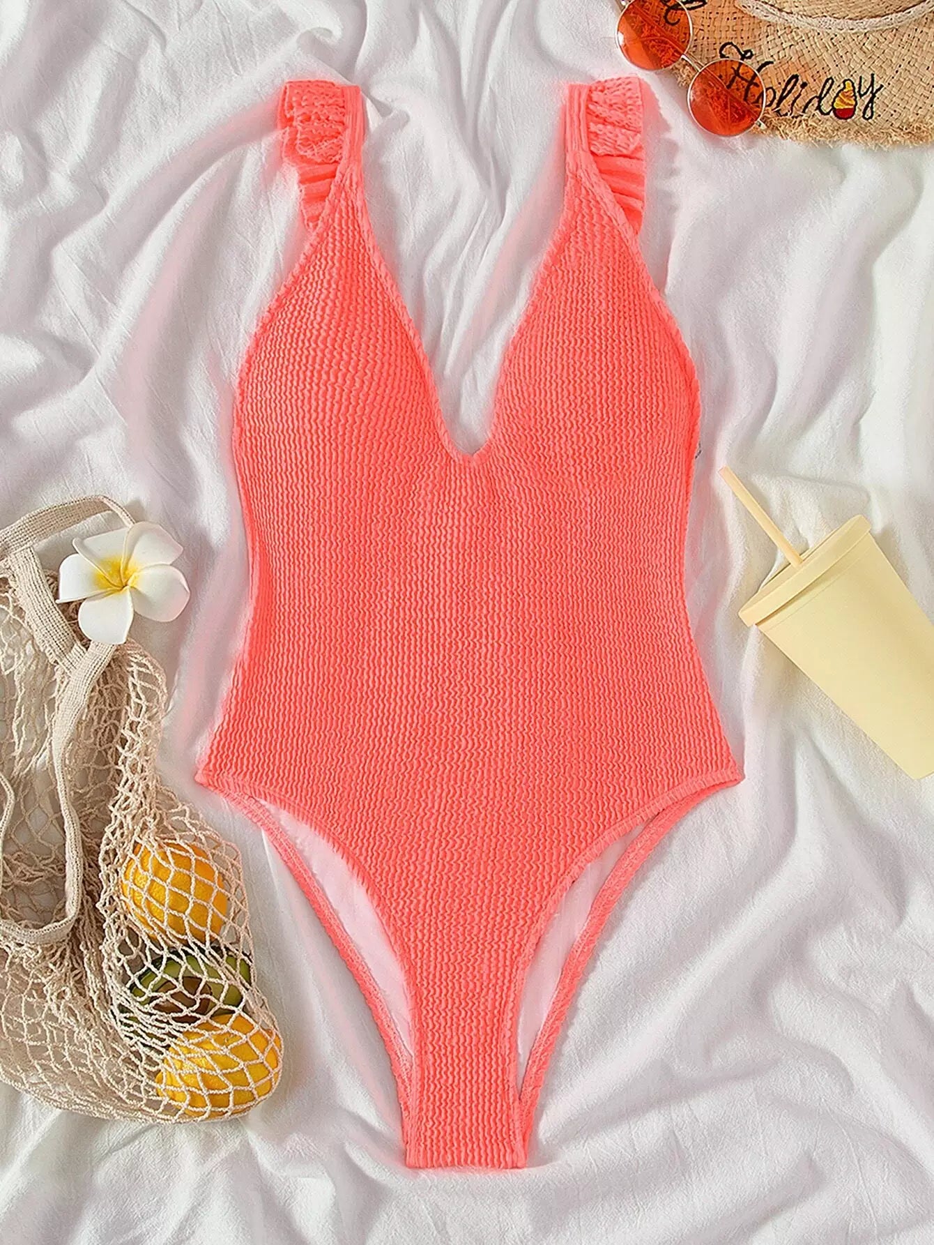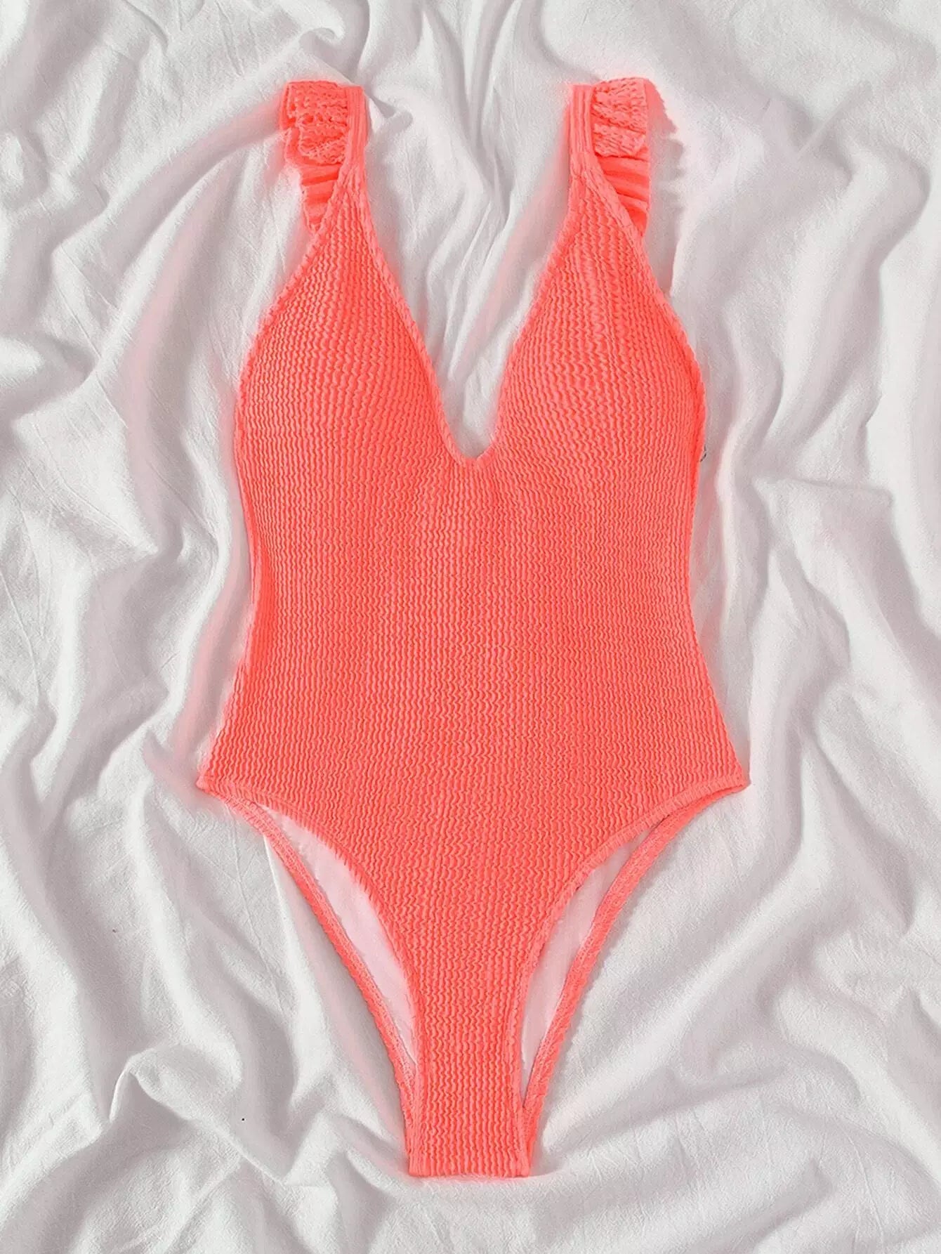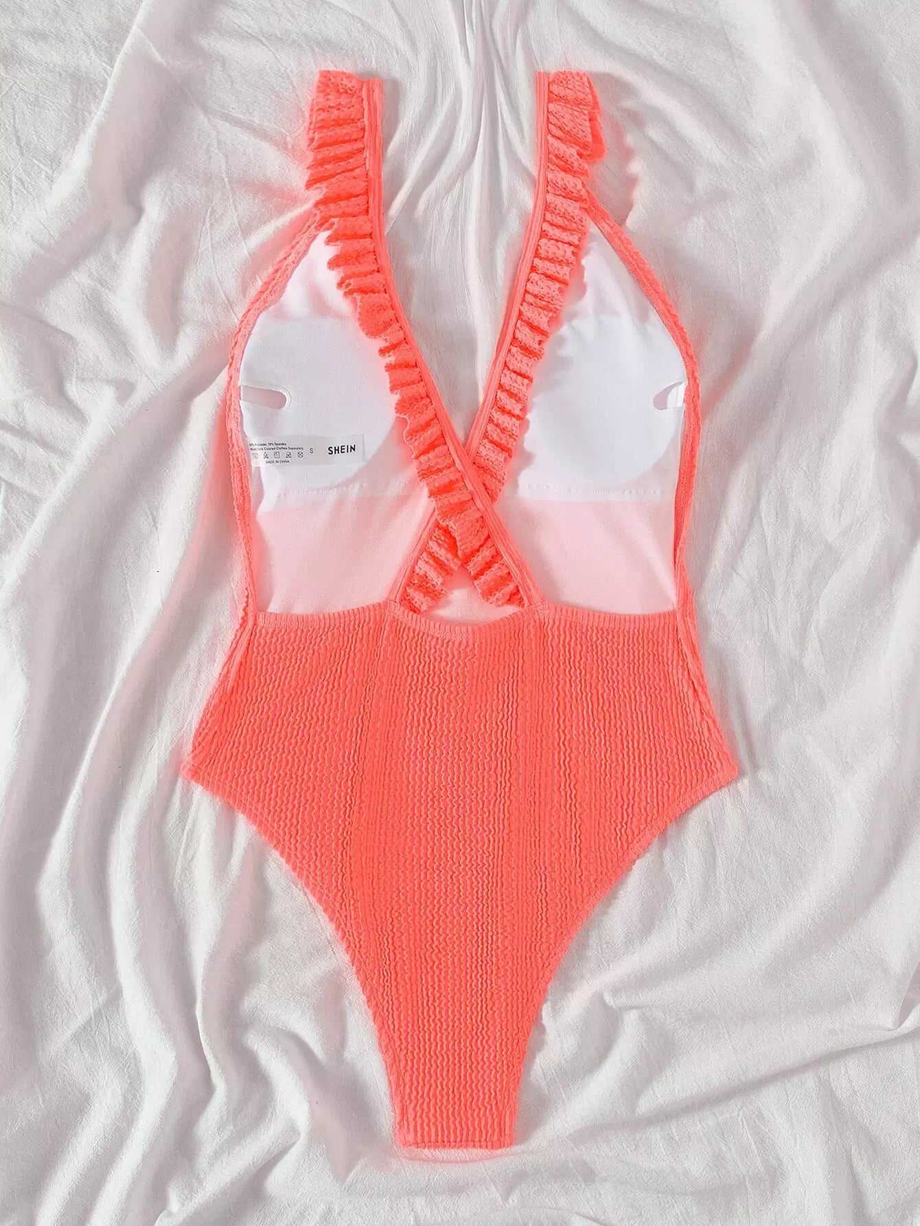 بدلة سباحة بقطعة واحدة مكشكشة ذات حواف كشكش