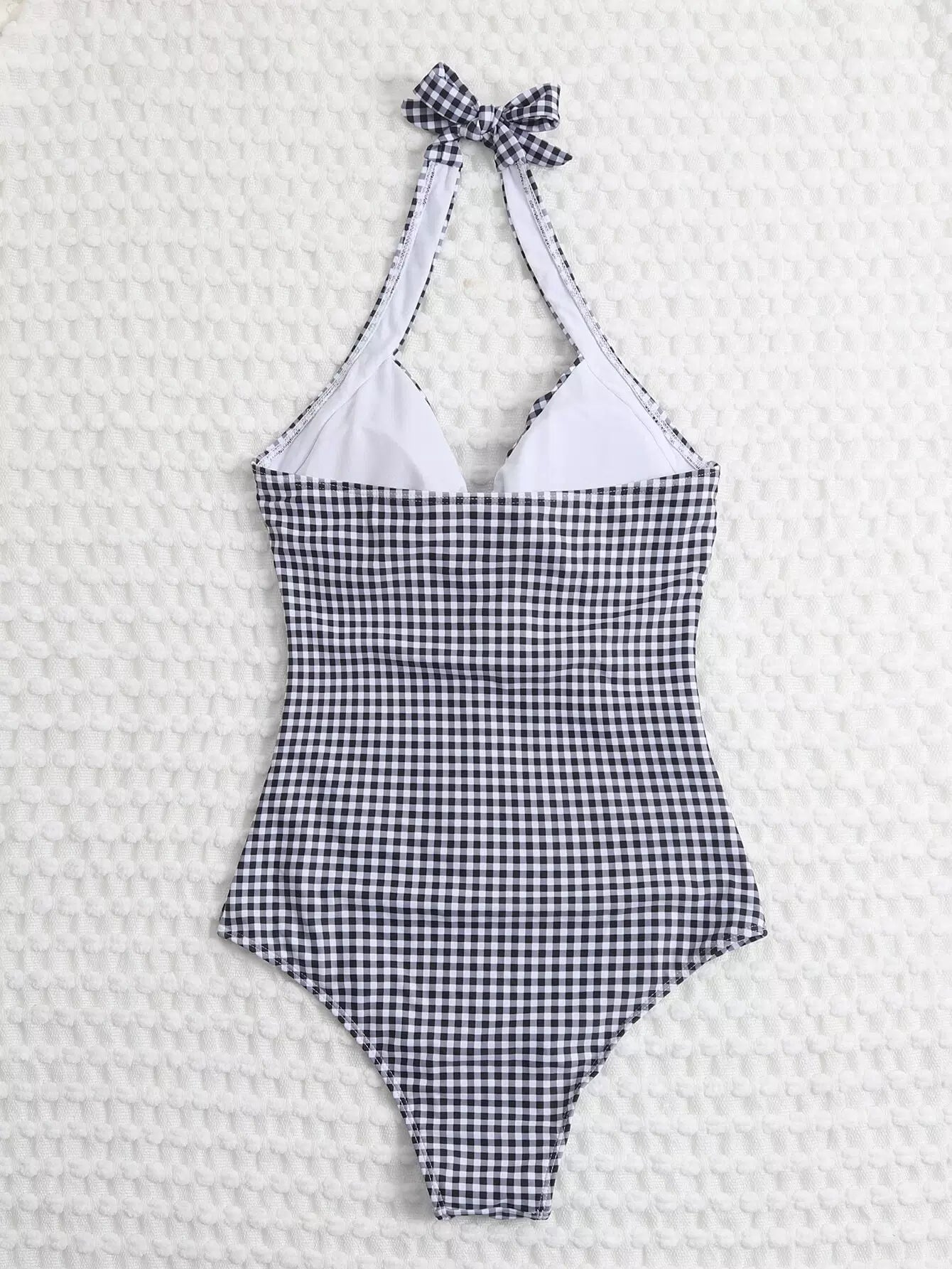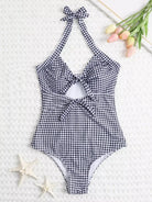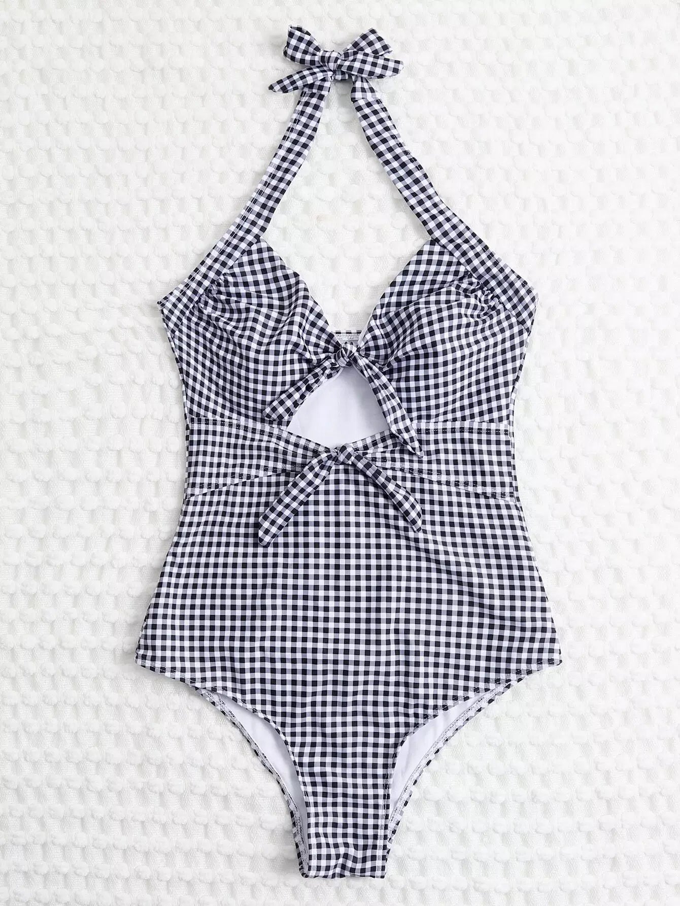 بدلة سباحة بقطعة واحدة من قطعة واحدة بعقدة أمامية من القماش القطني