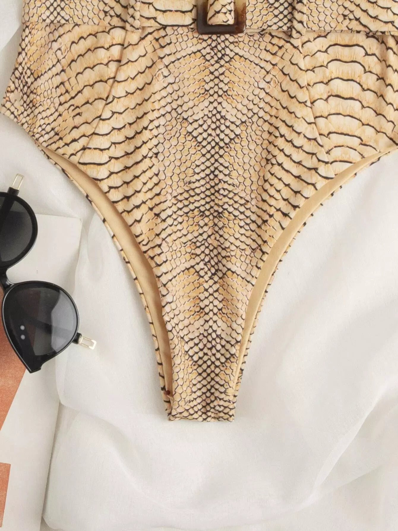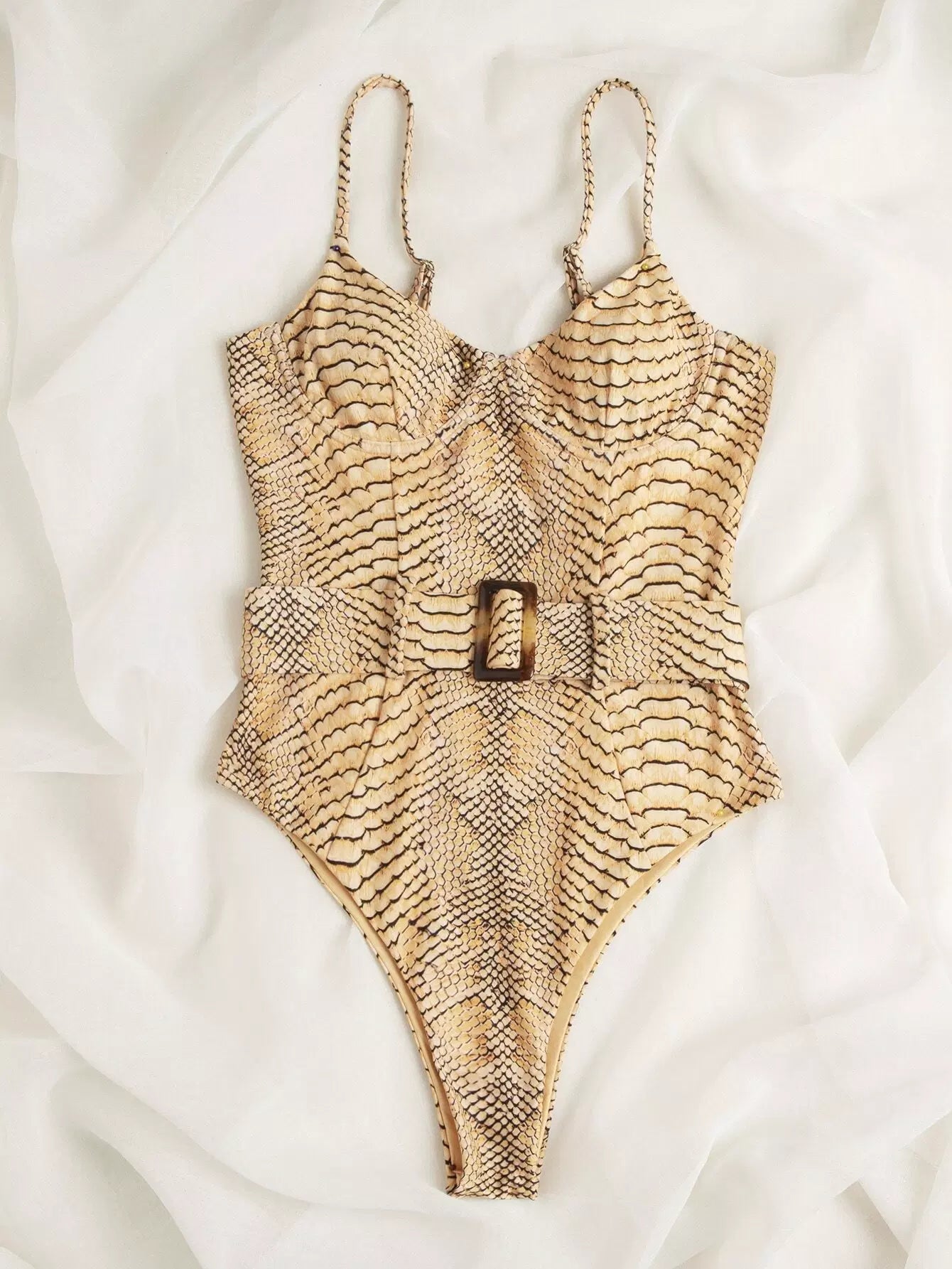 بدلة سباحة من قطعة واحدة بسلك من جلد الثعبان