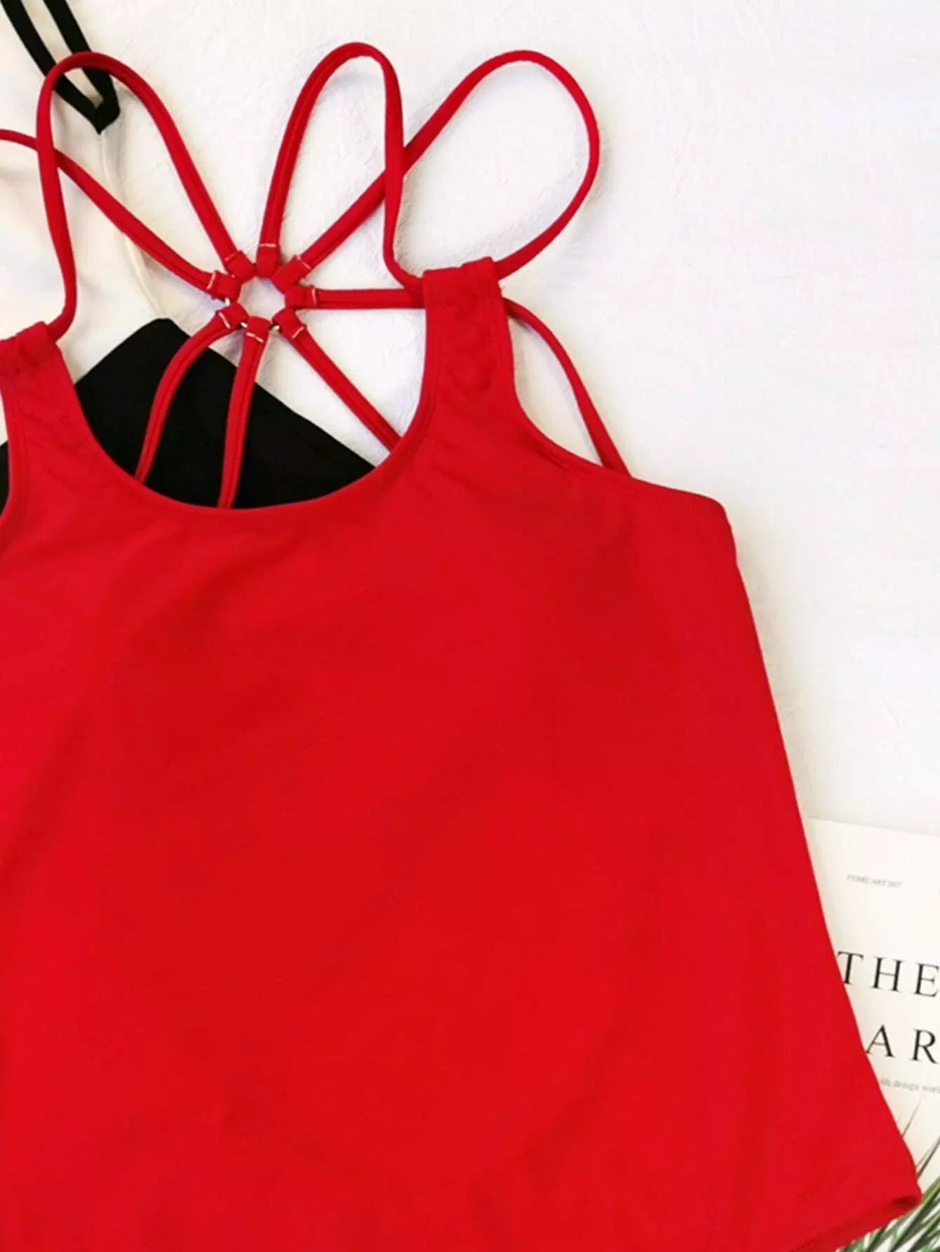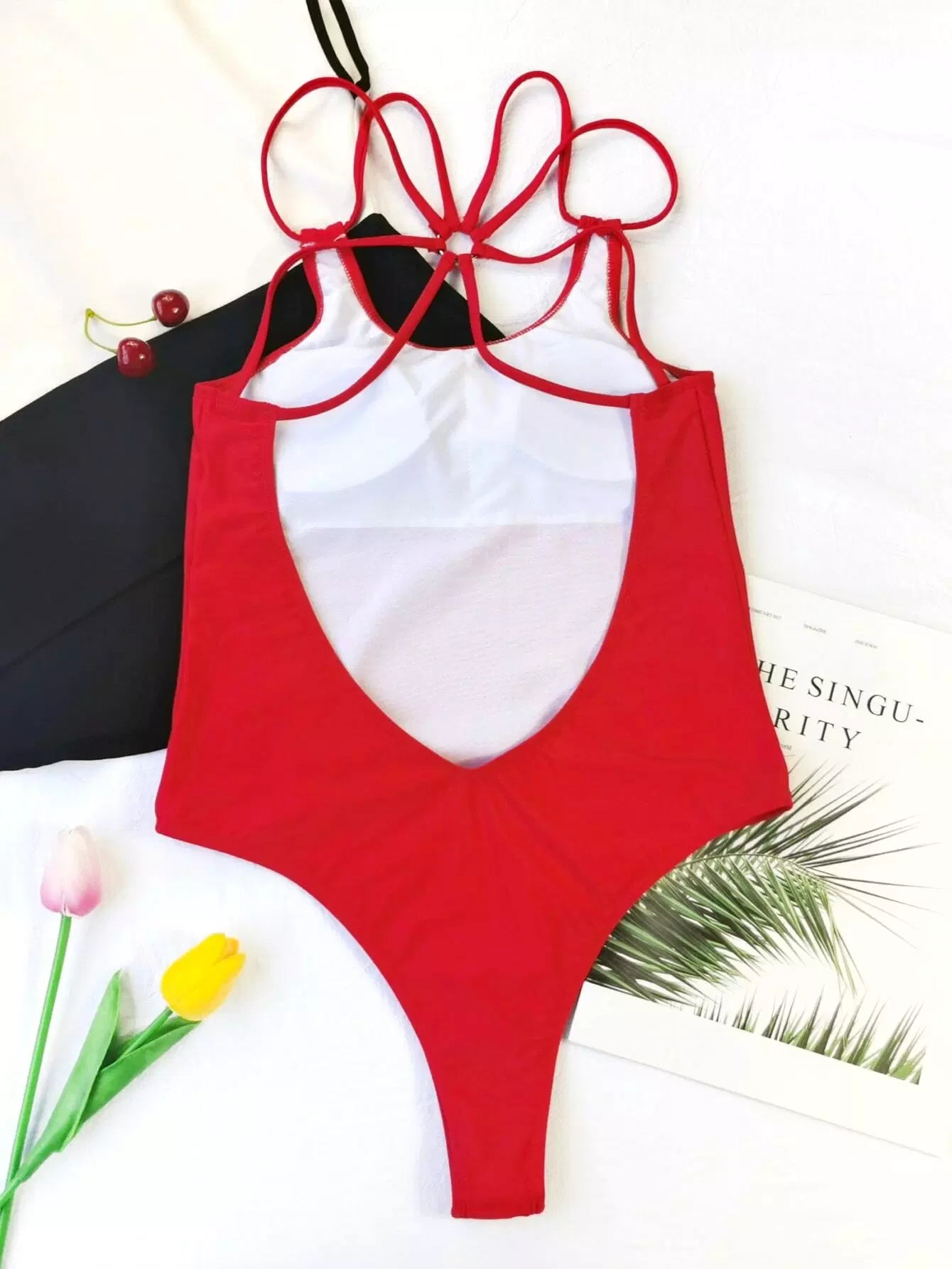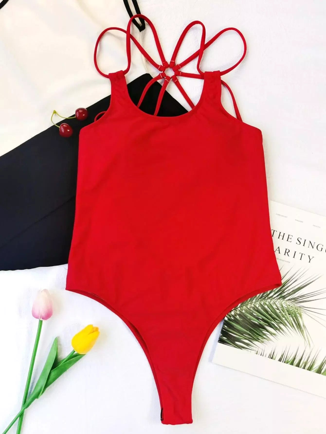 بدلة سباحة سادة بقطعة واحدة متقاطعة من الخلف متصلة من الكريس كروس