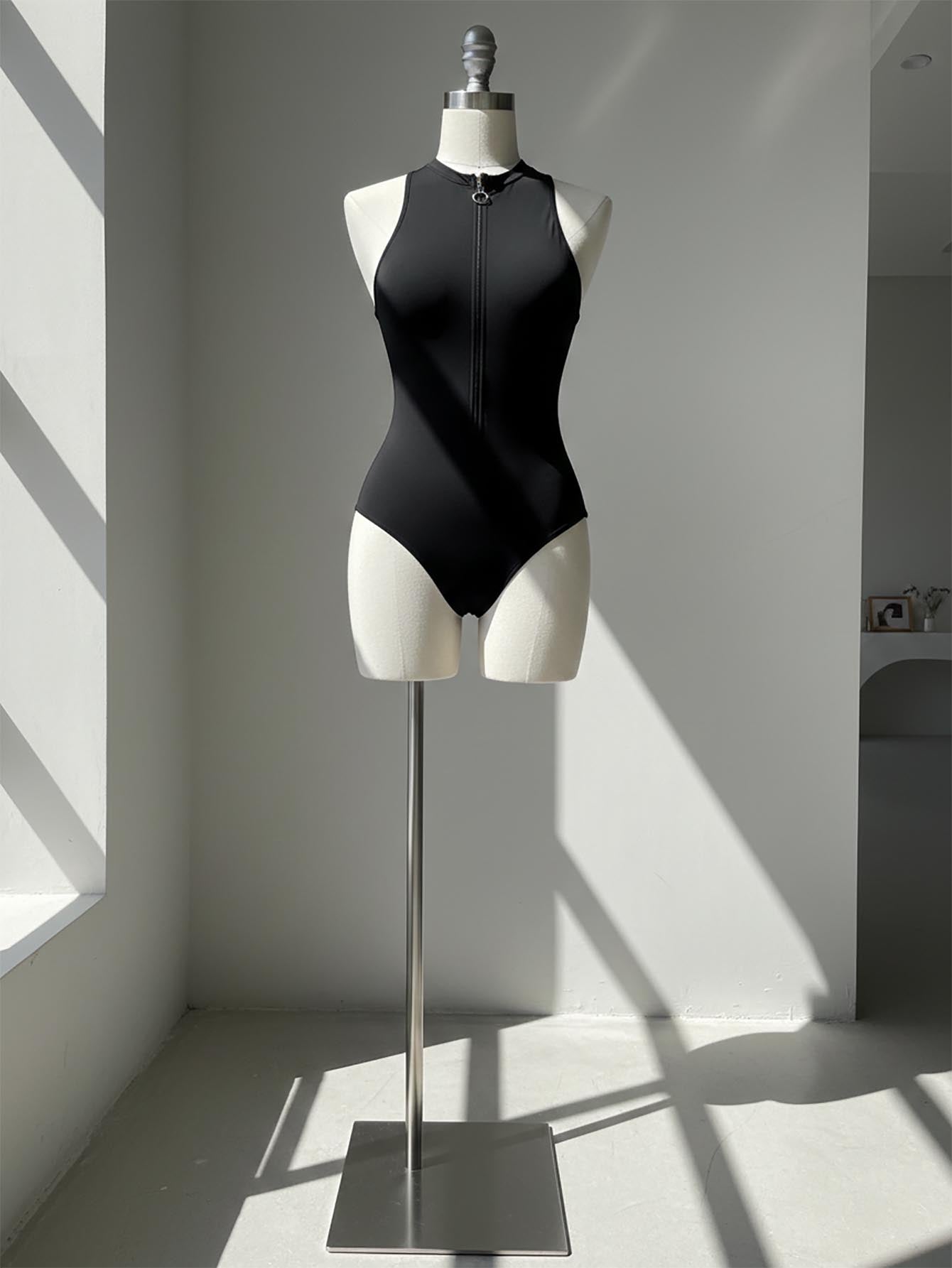 مايوه سباحة نسائي أسود بدون أكمام بسحاب أمامي