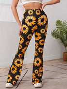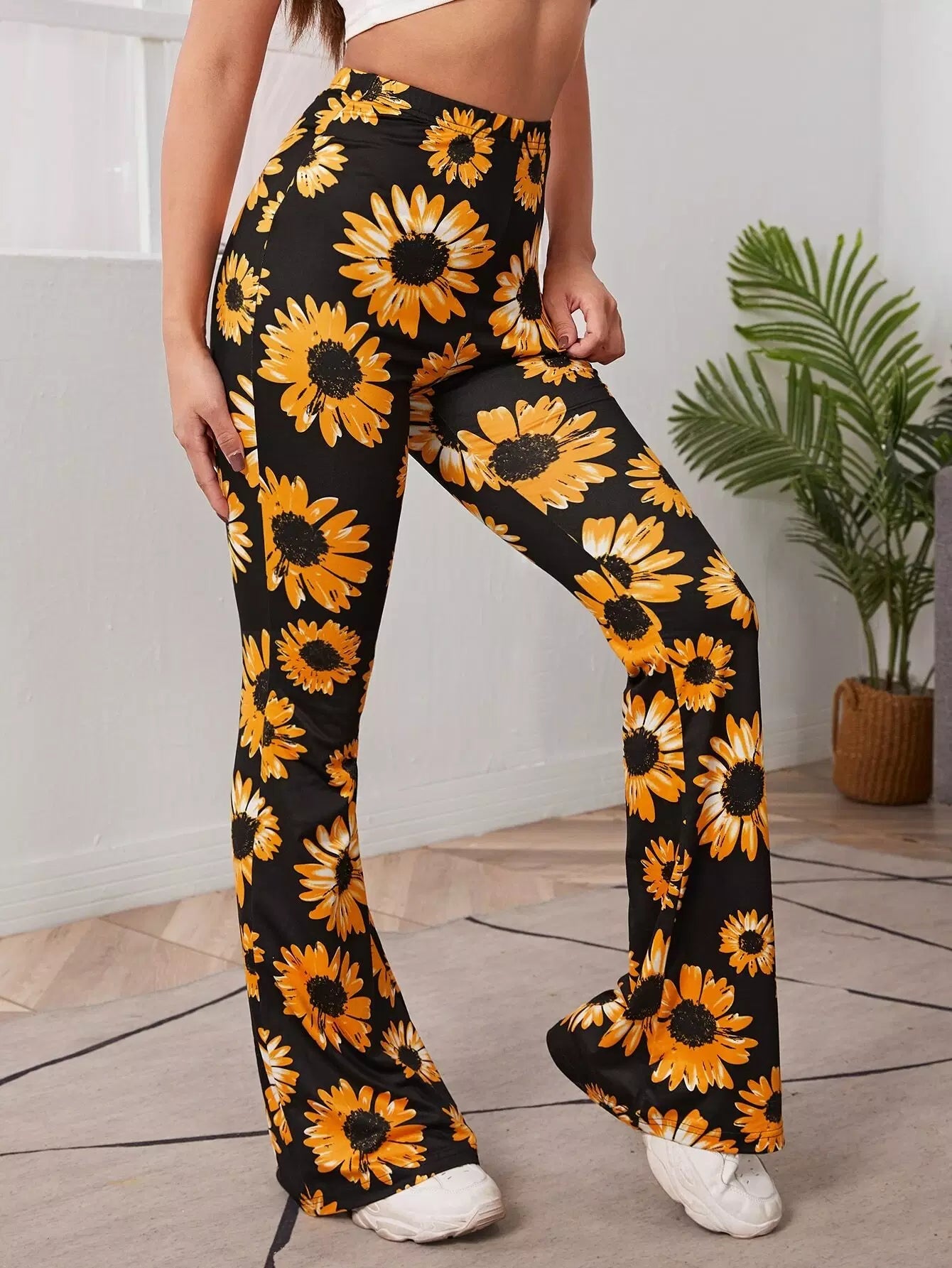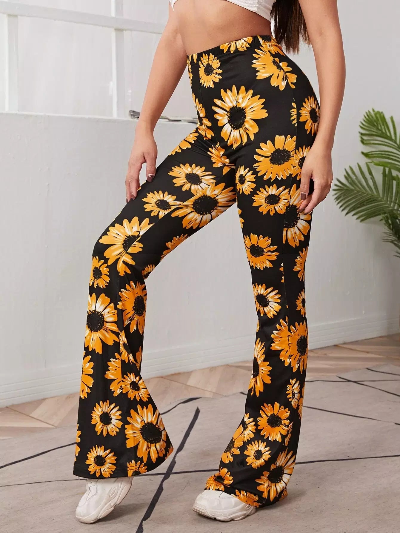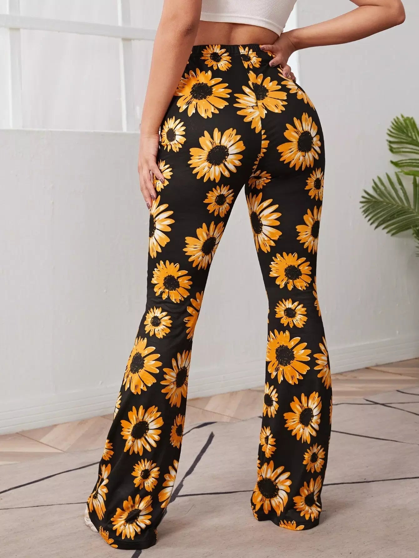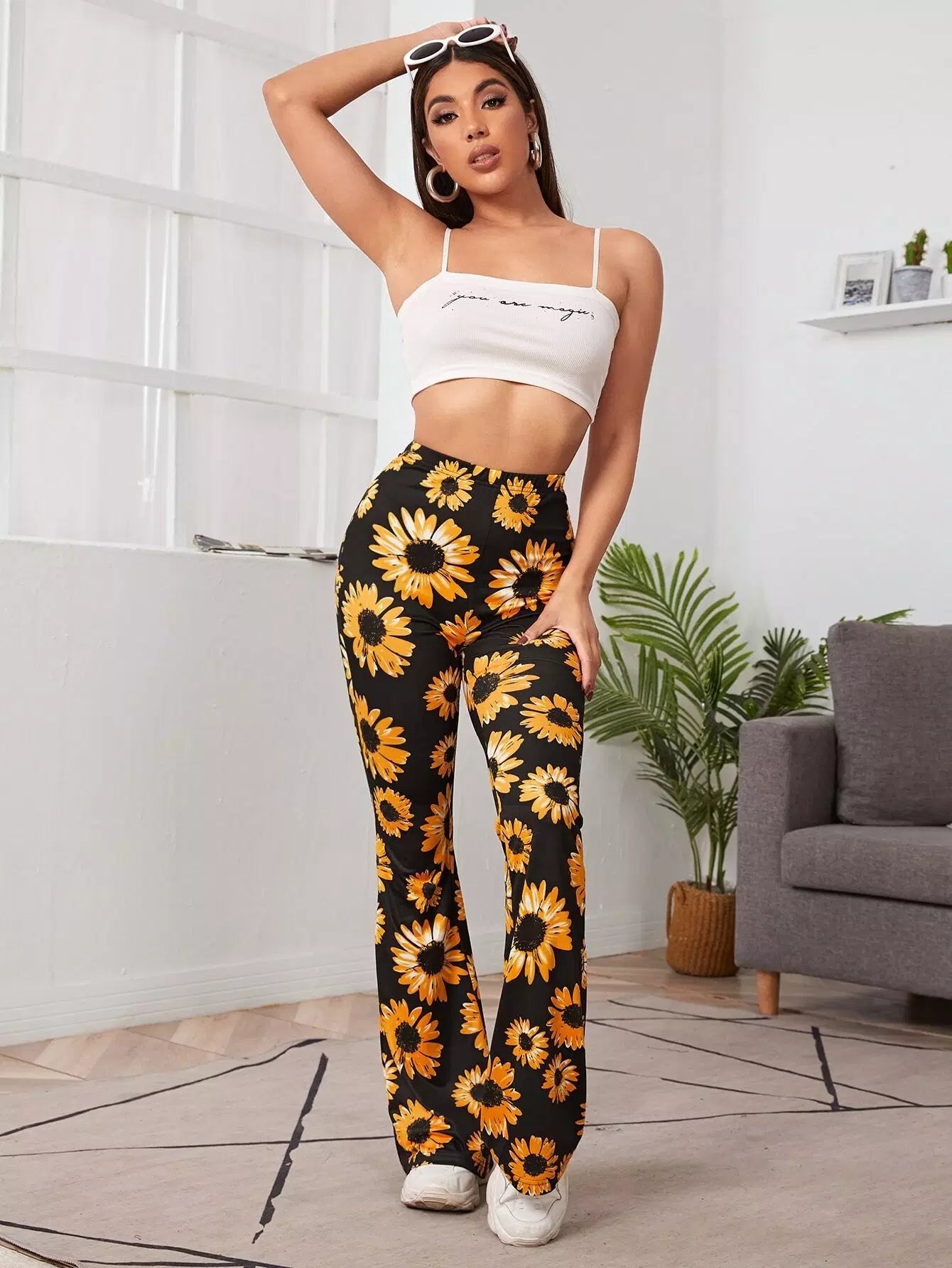 بنطلون خصر مطاطي واسع الساقين بطبعة زهور بالكامل