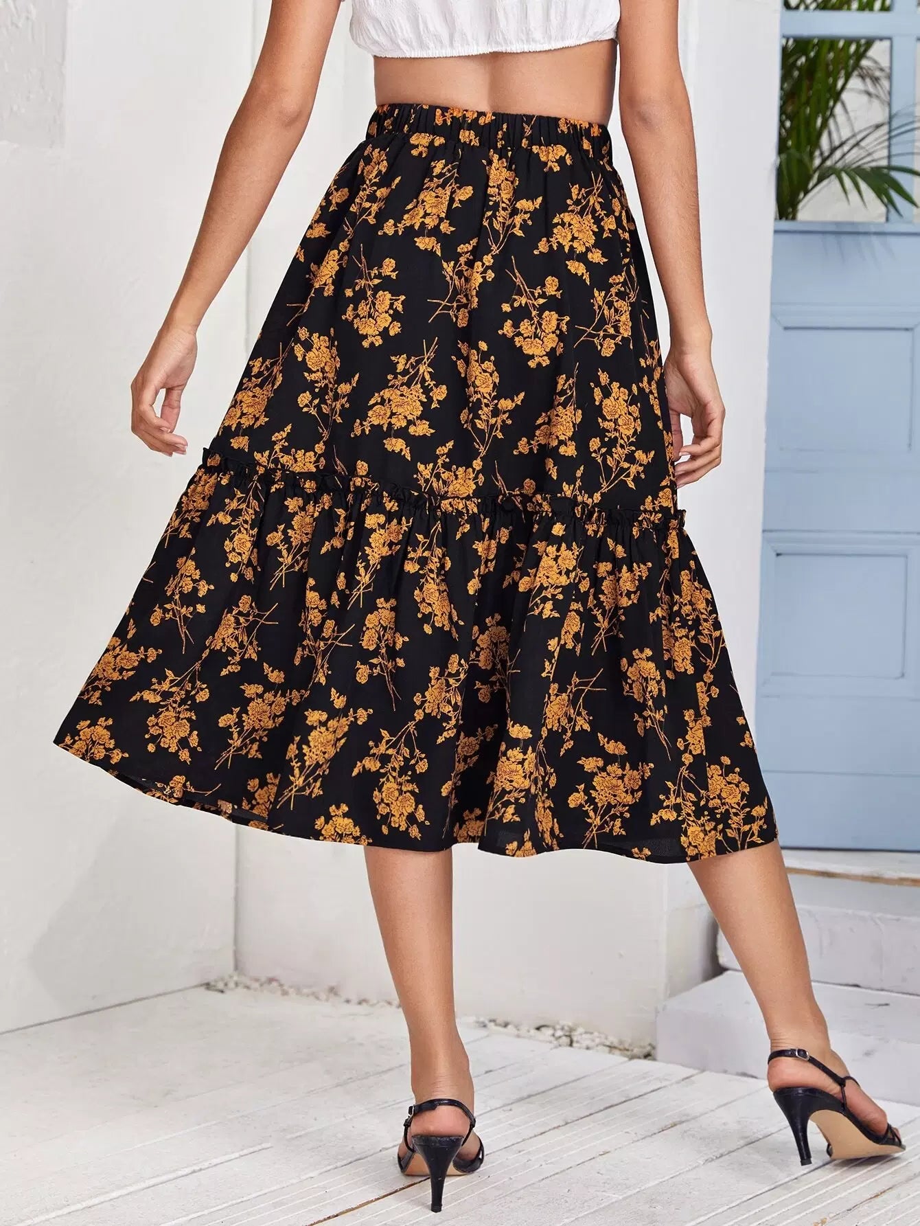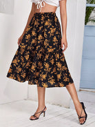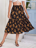 تنورة بحواف كشكش مطبوع عليها زهور بالكامل