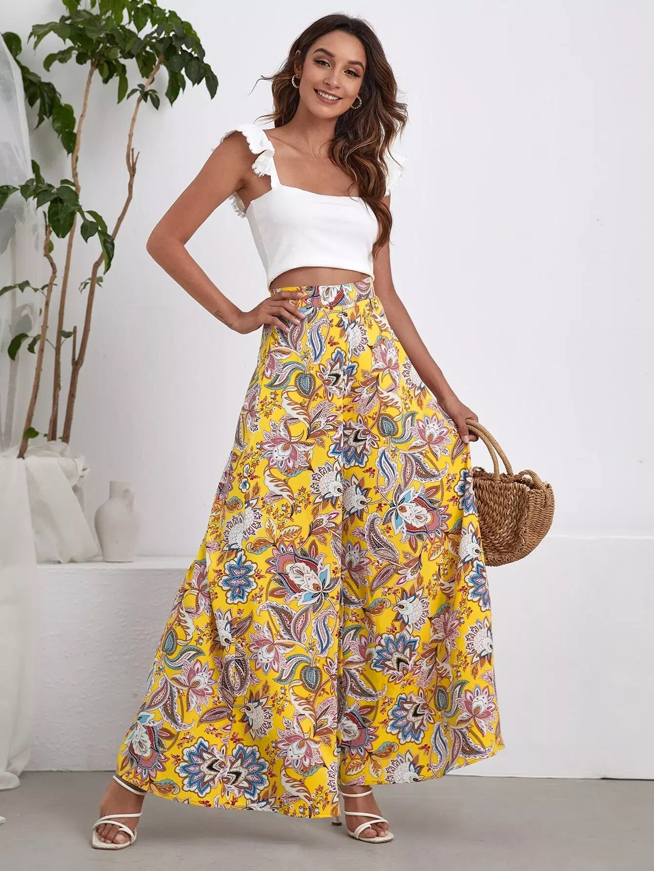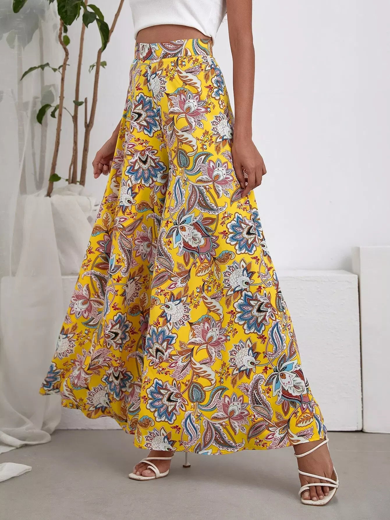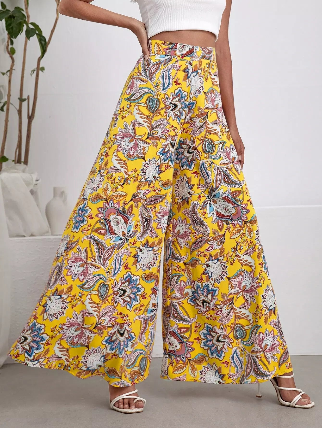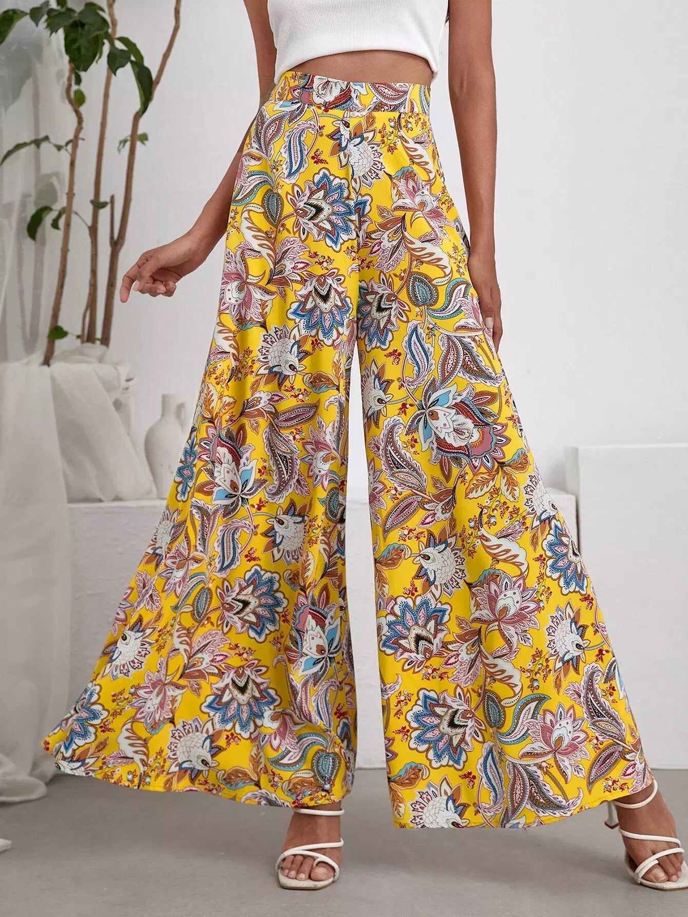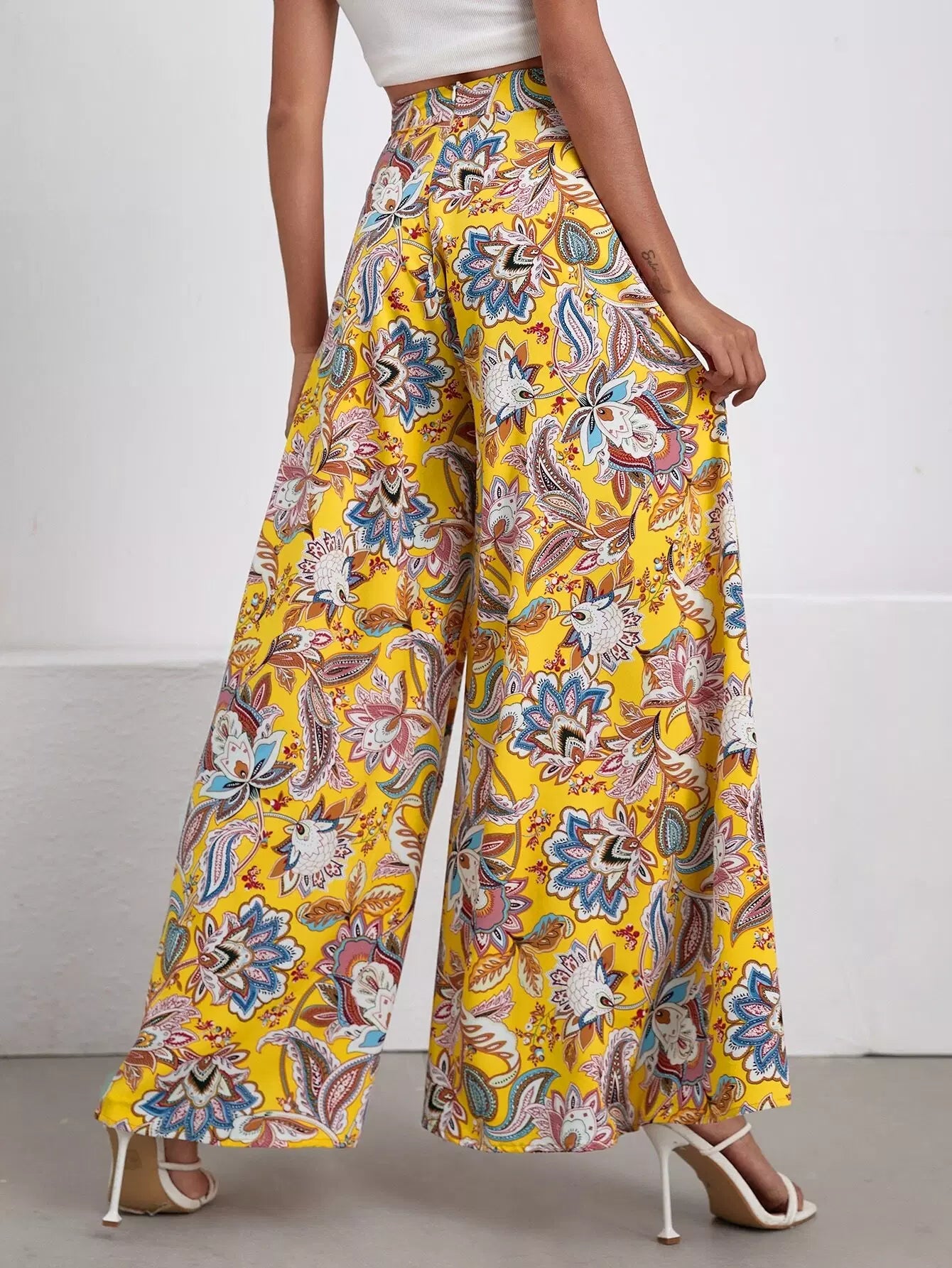 بنطلون واسع الساقين بطبعة زهور فوق البنطلون