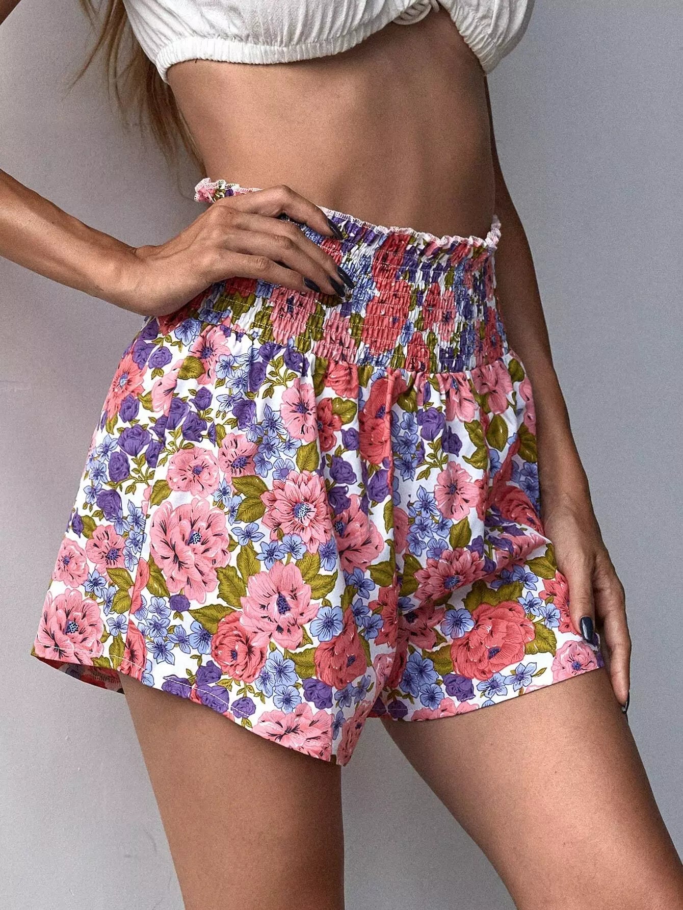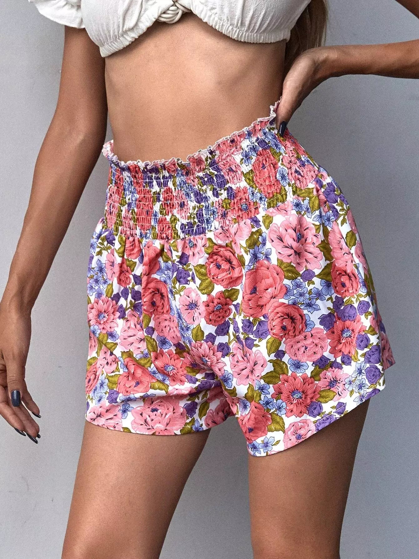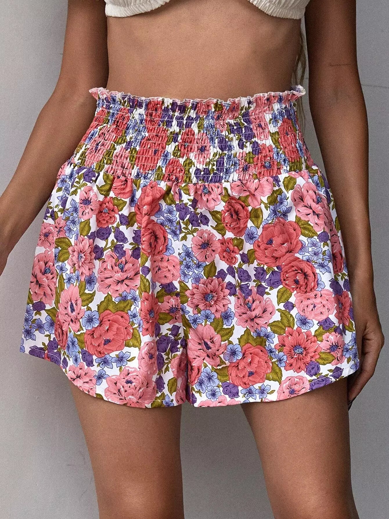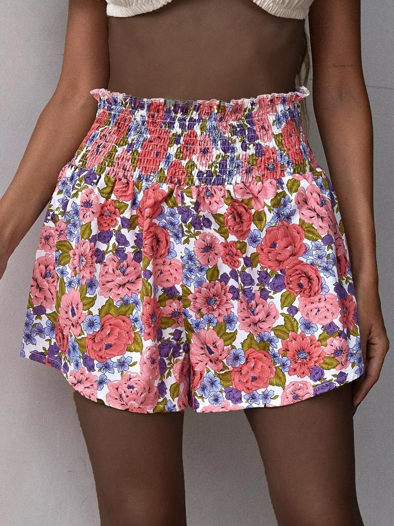 شورت مكشكش مزين بنقشة الزهور بالكامل