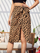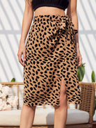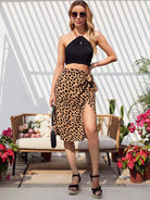 تنورة مزينة بطبعة فوق الكورال مطبوع عليها ربطة عنق جانبية