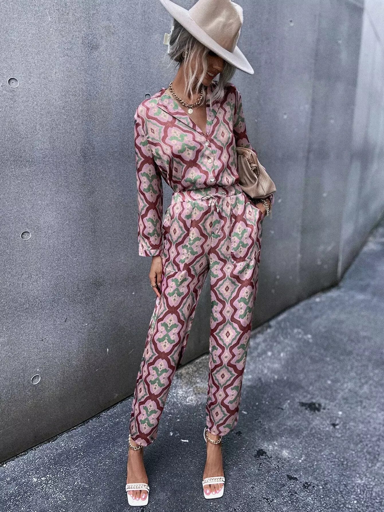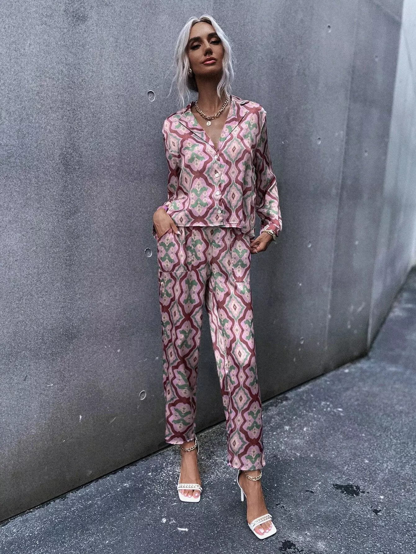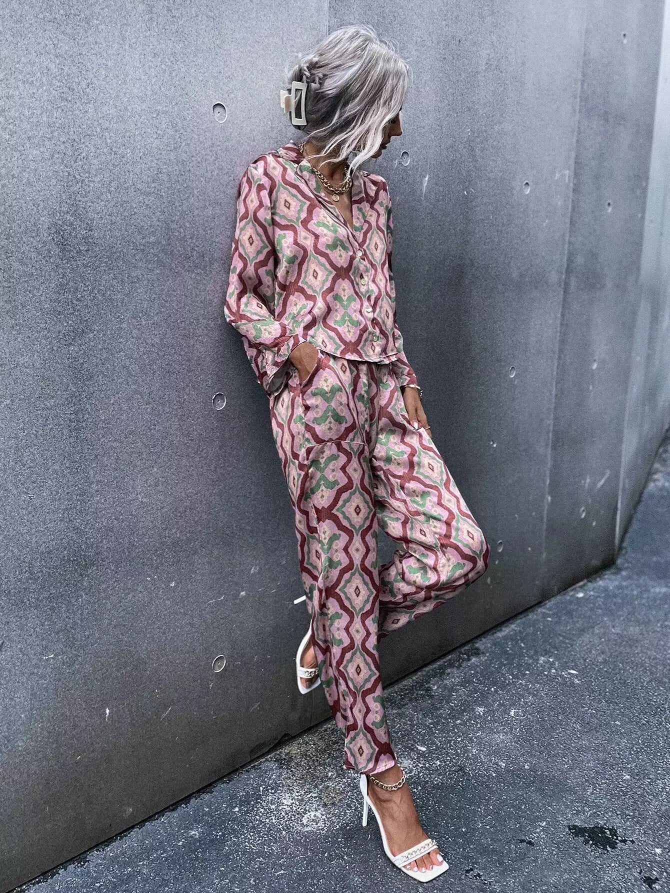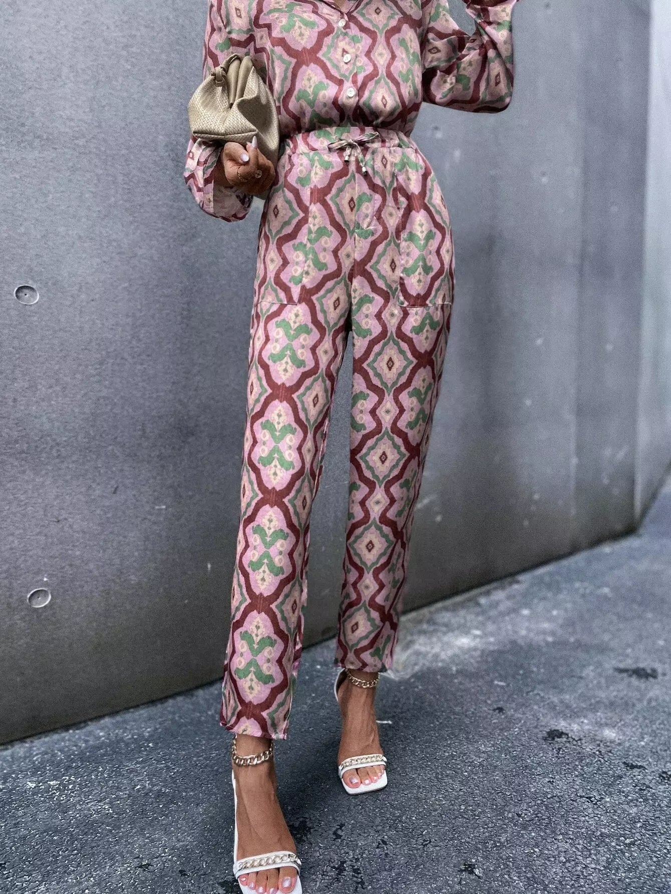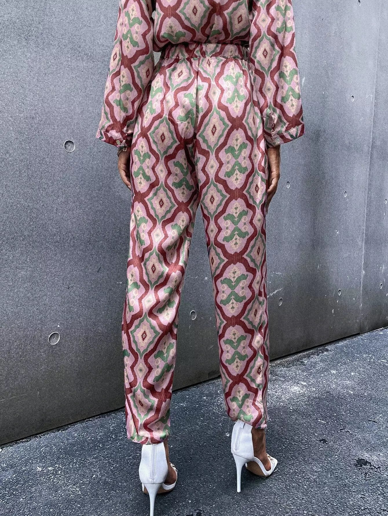 بنطلون بطبعة أرجيل برباط خصر مربوط