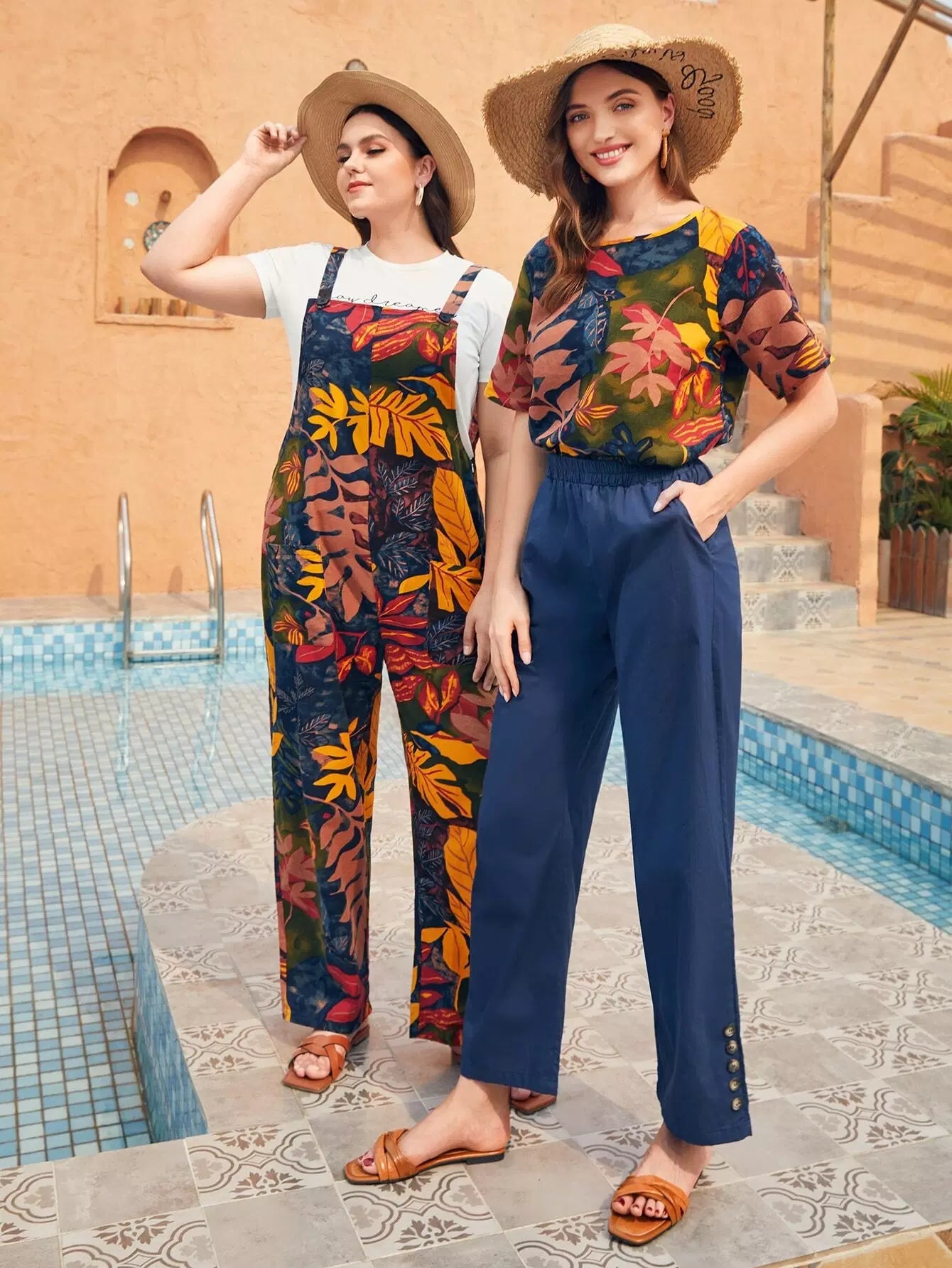 للنساء - بنطال سادة بأزرار