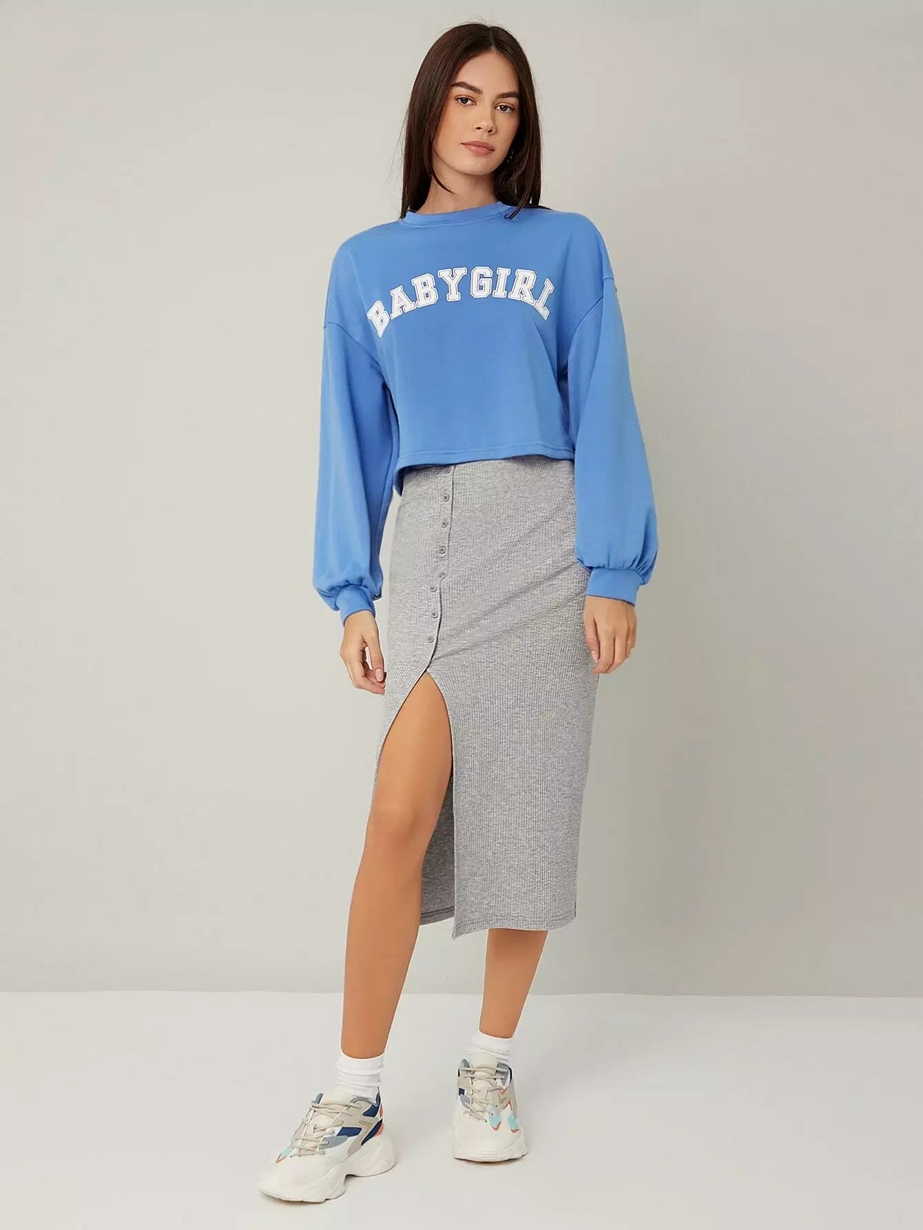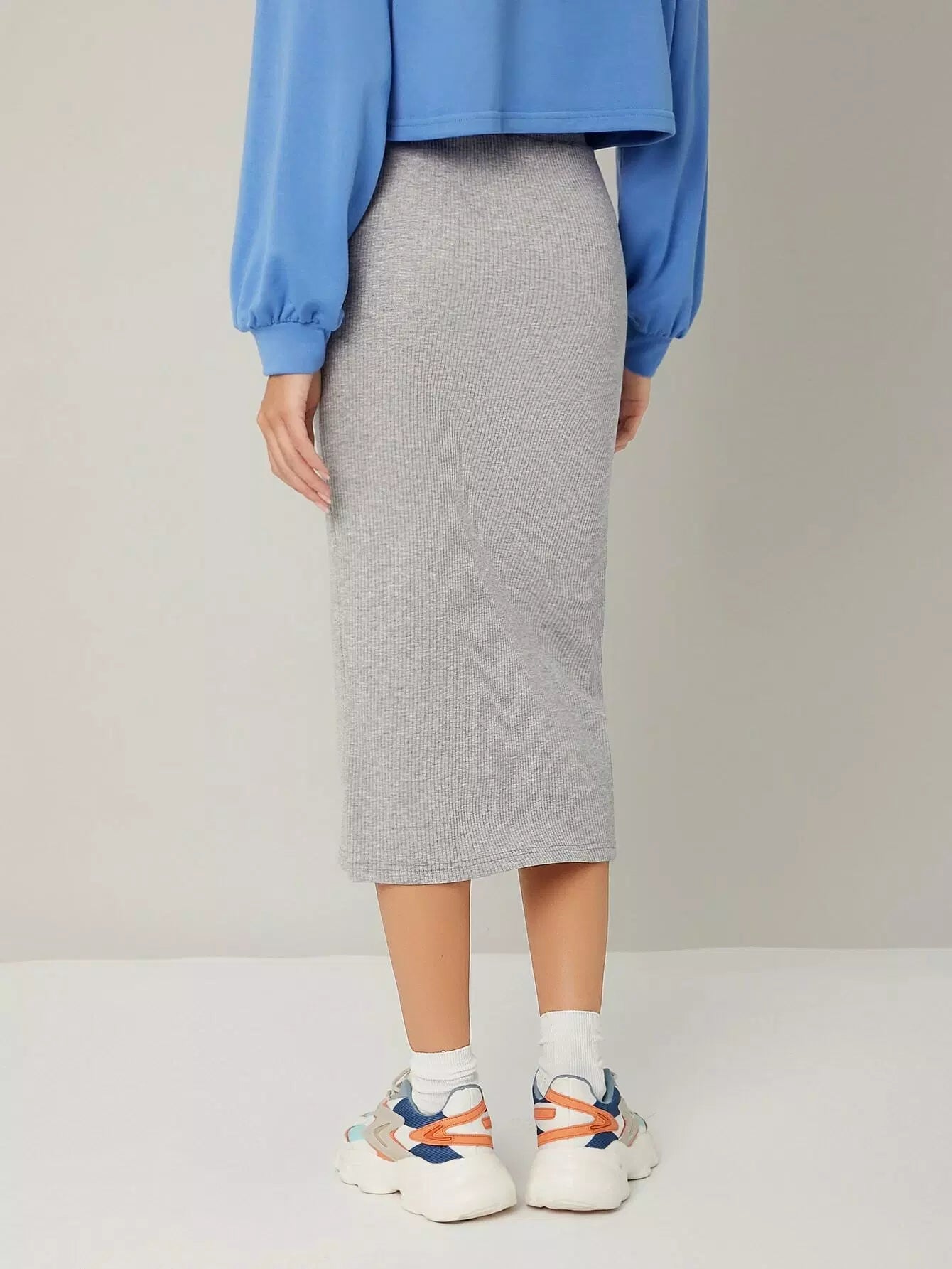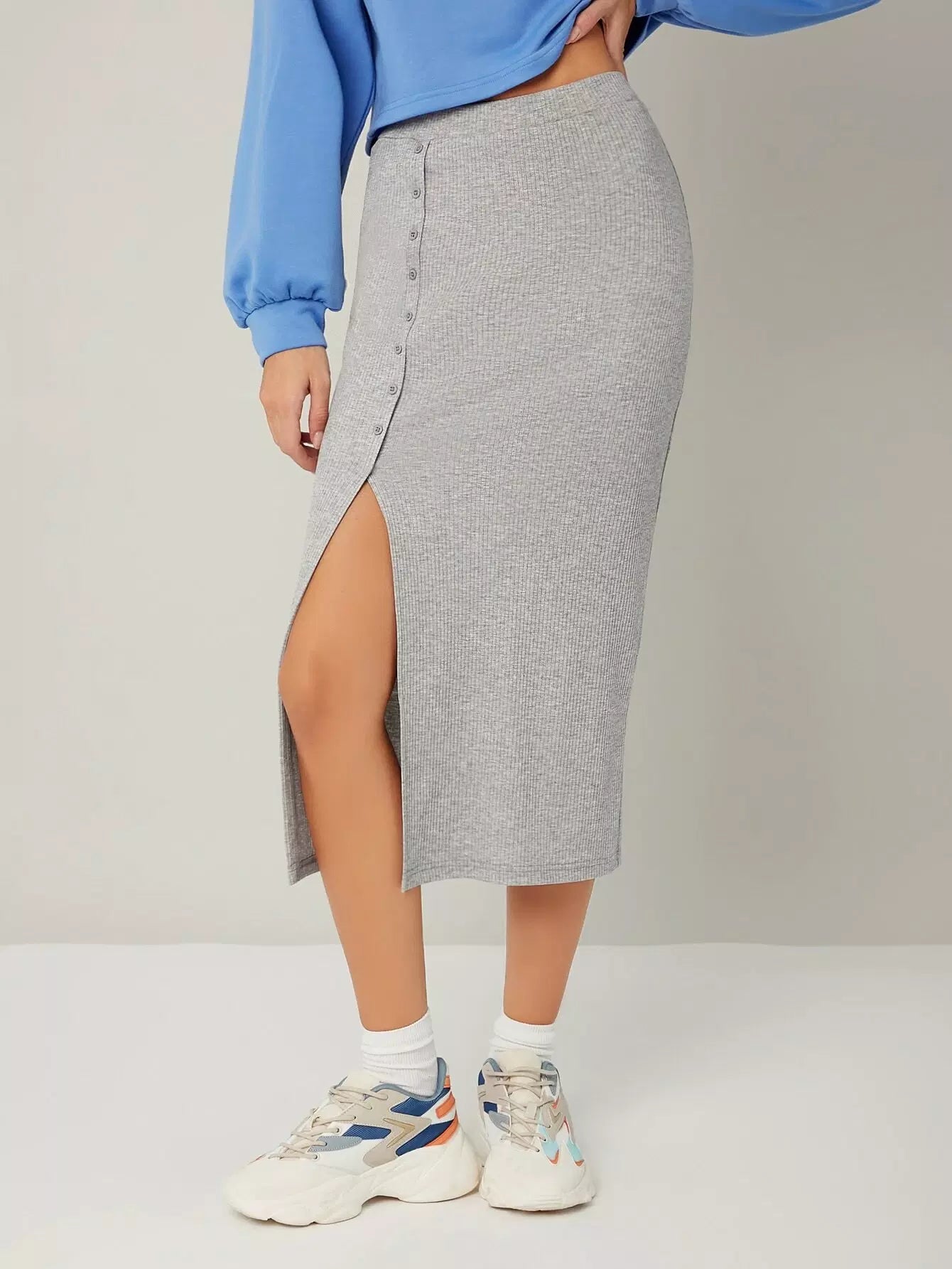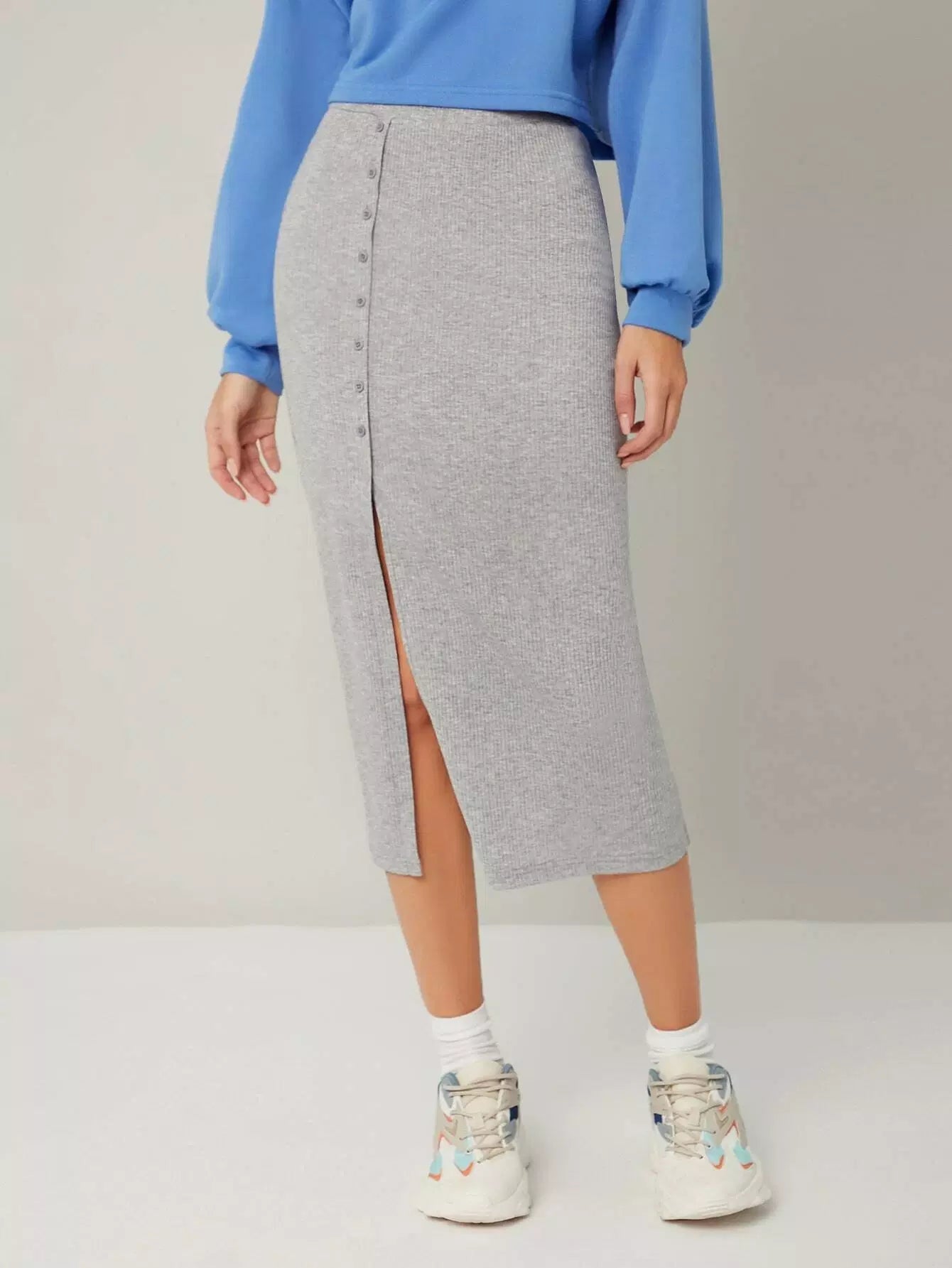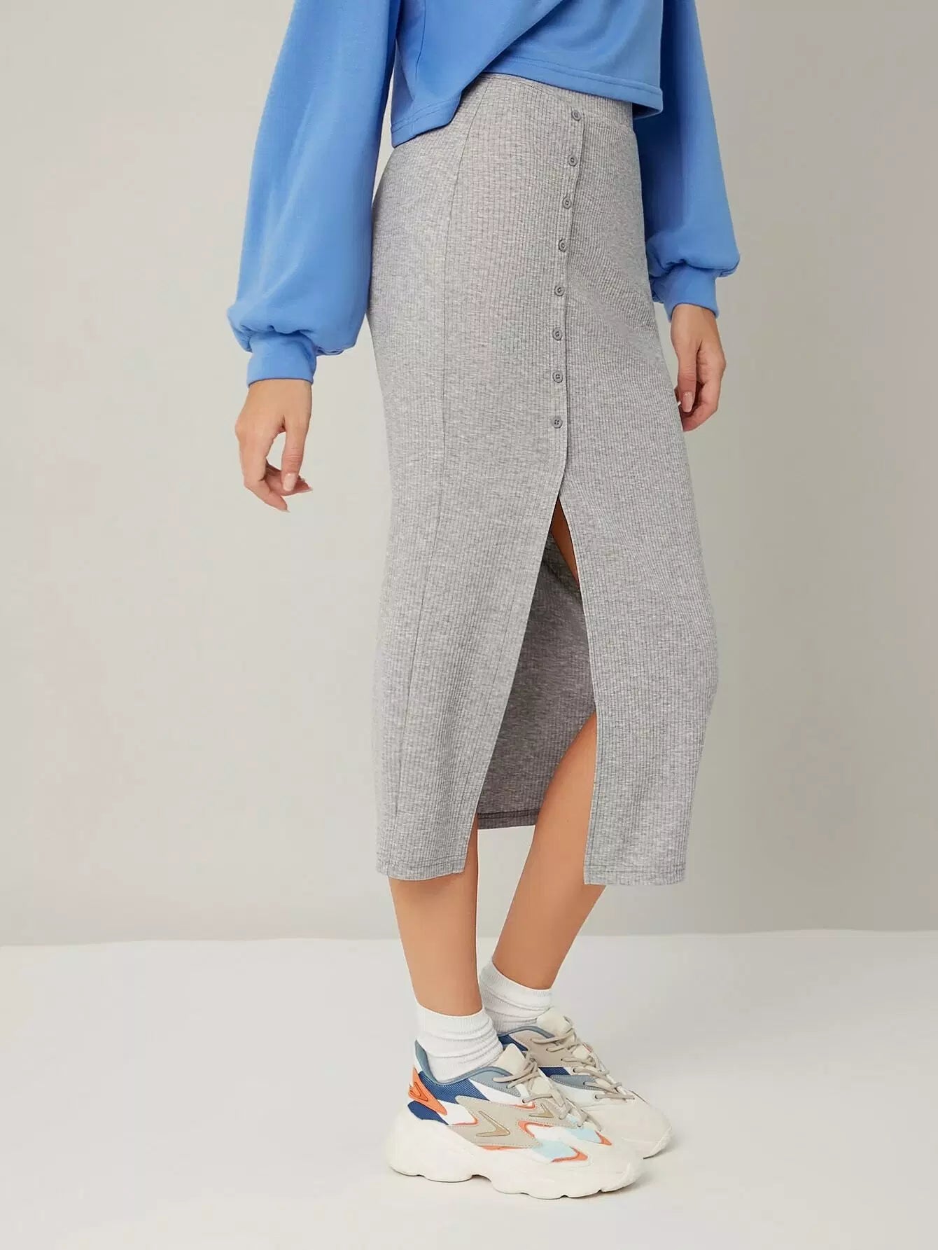 تنورة ضيقة منقسمة الفخذين بتفاصيل الأزرار
