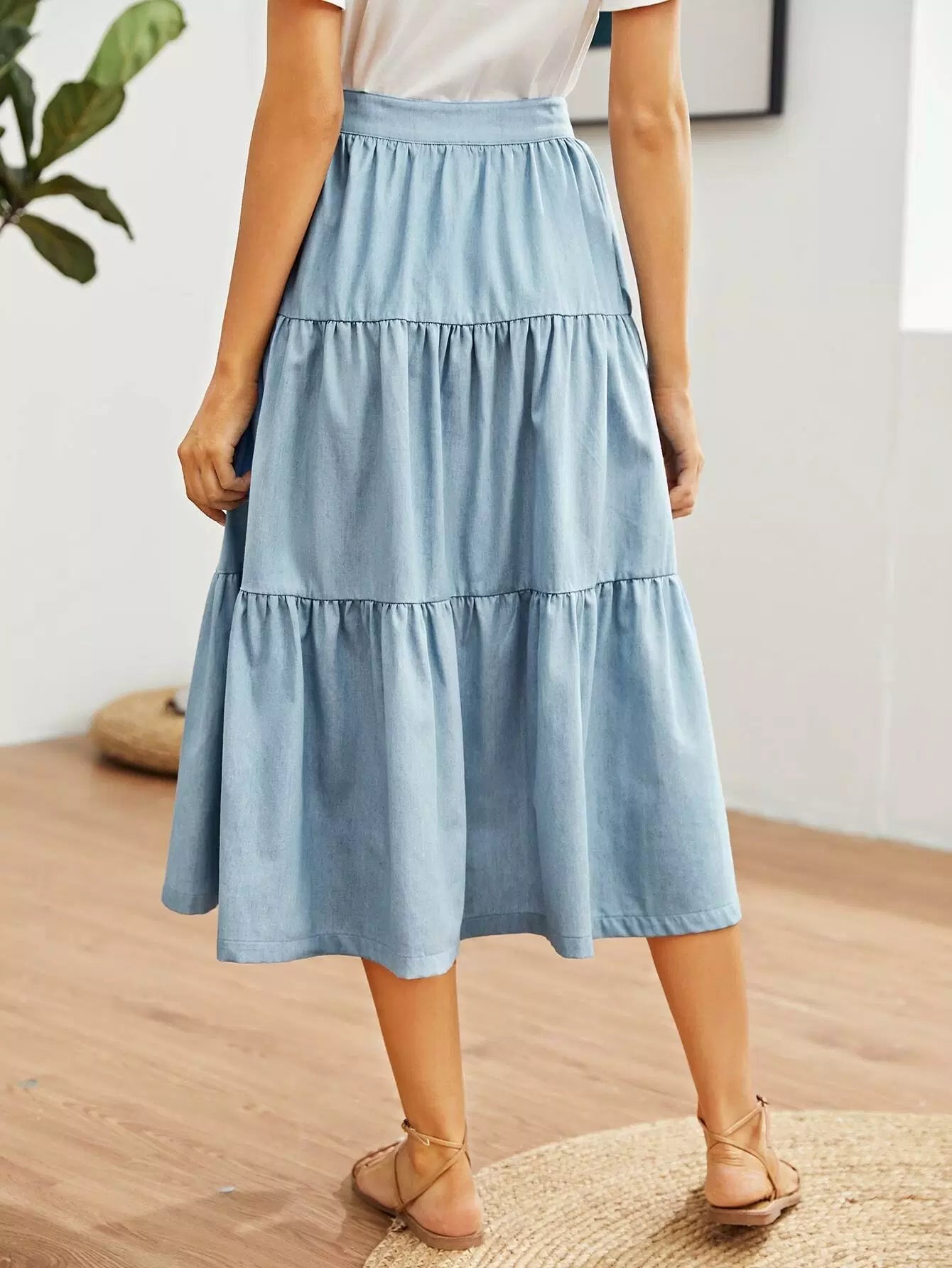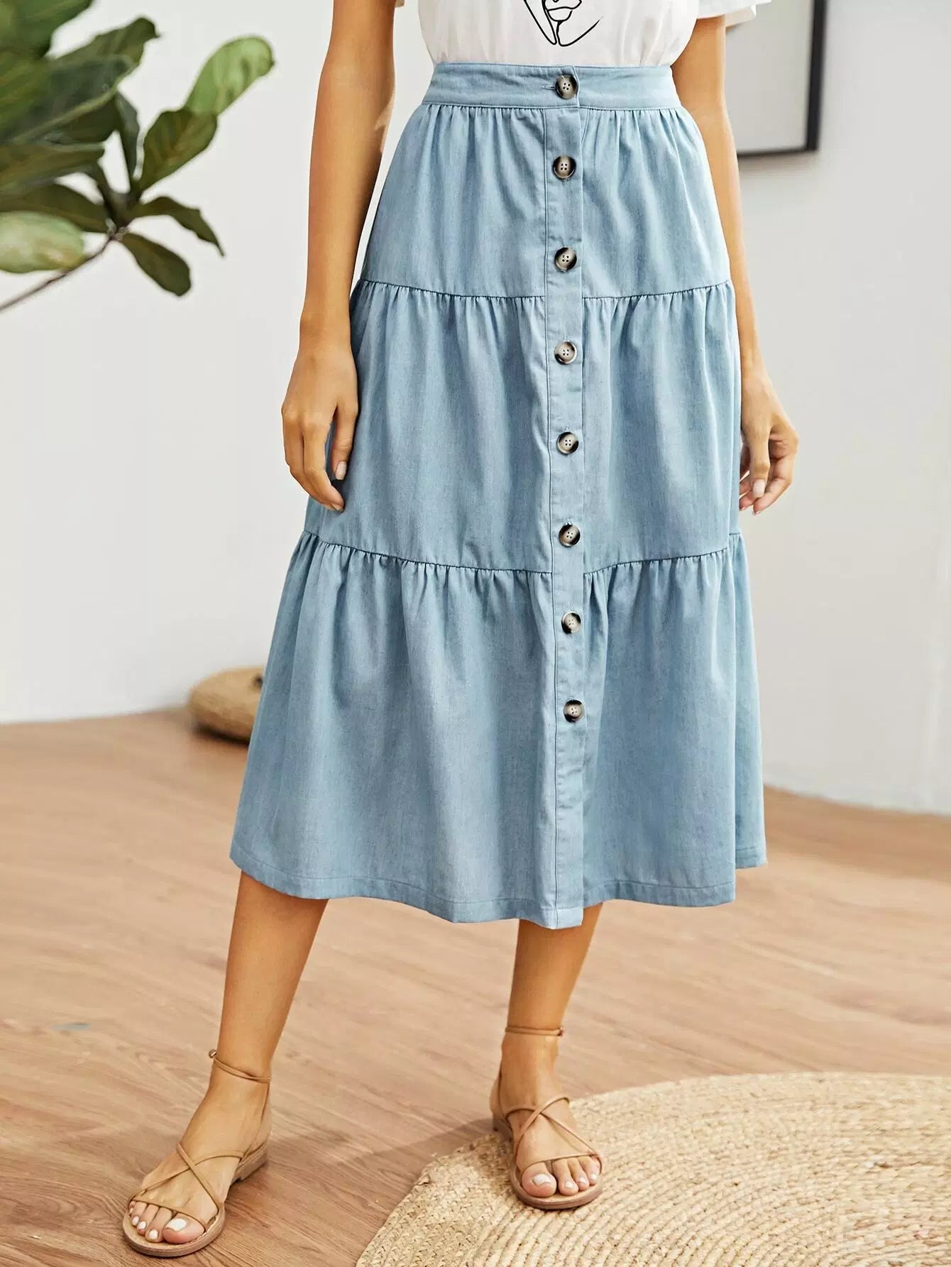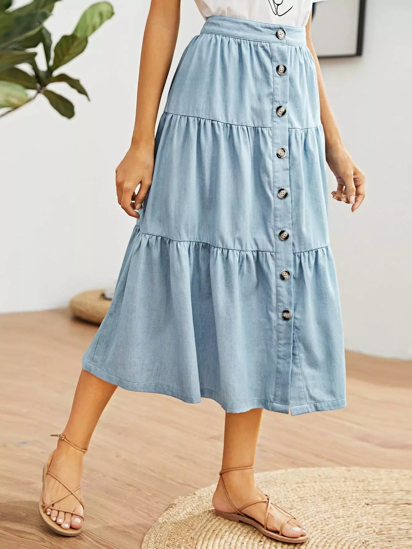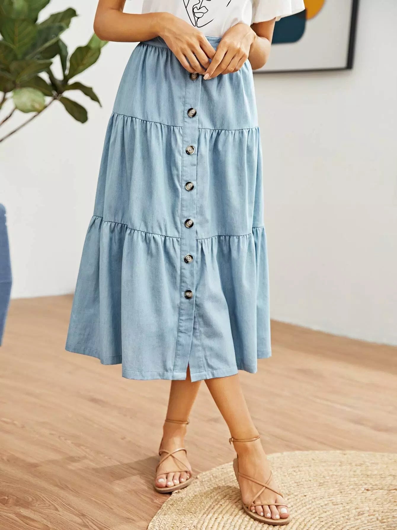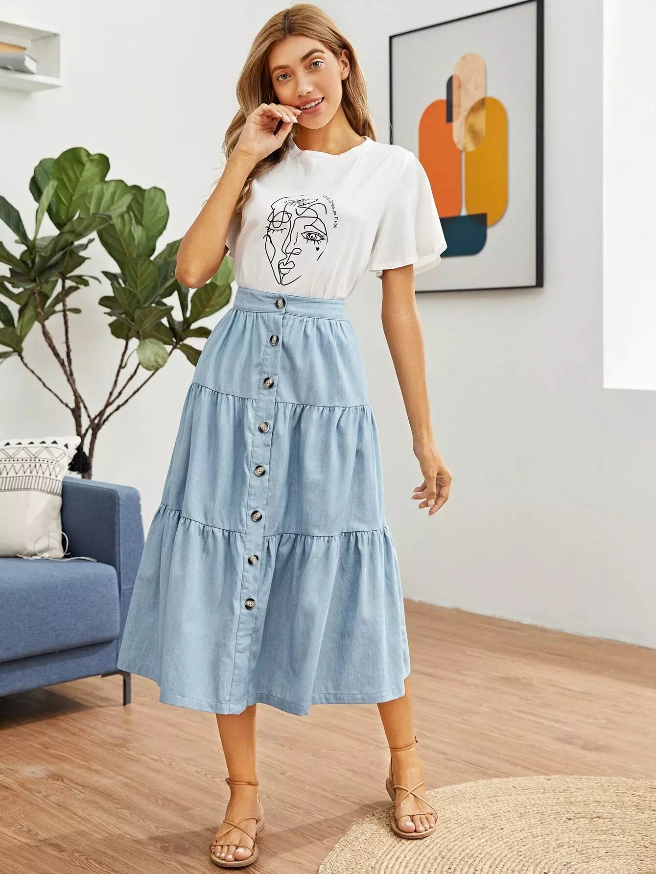 تنورة متوسطة الطول بأزرار مكشكشة بأزرار من الكشكشة