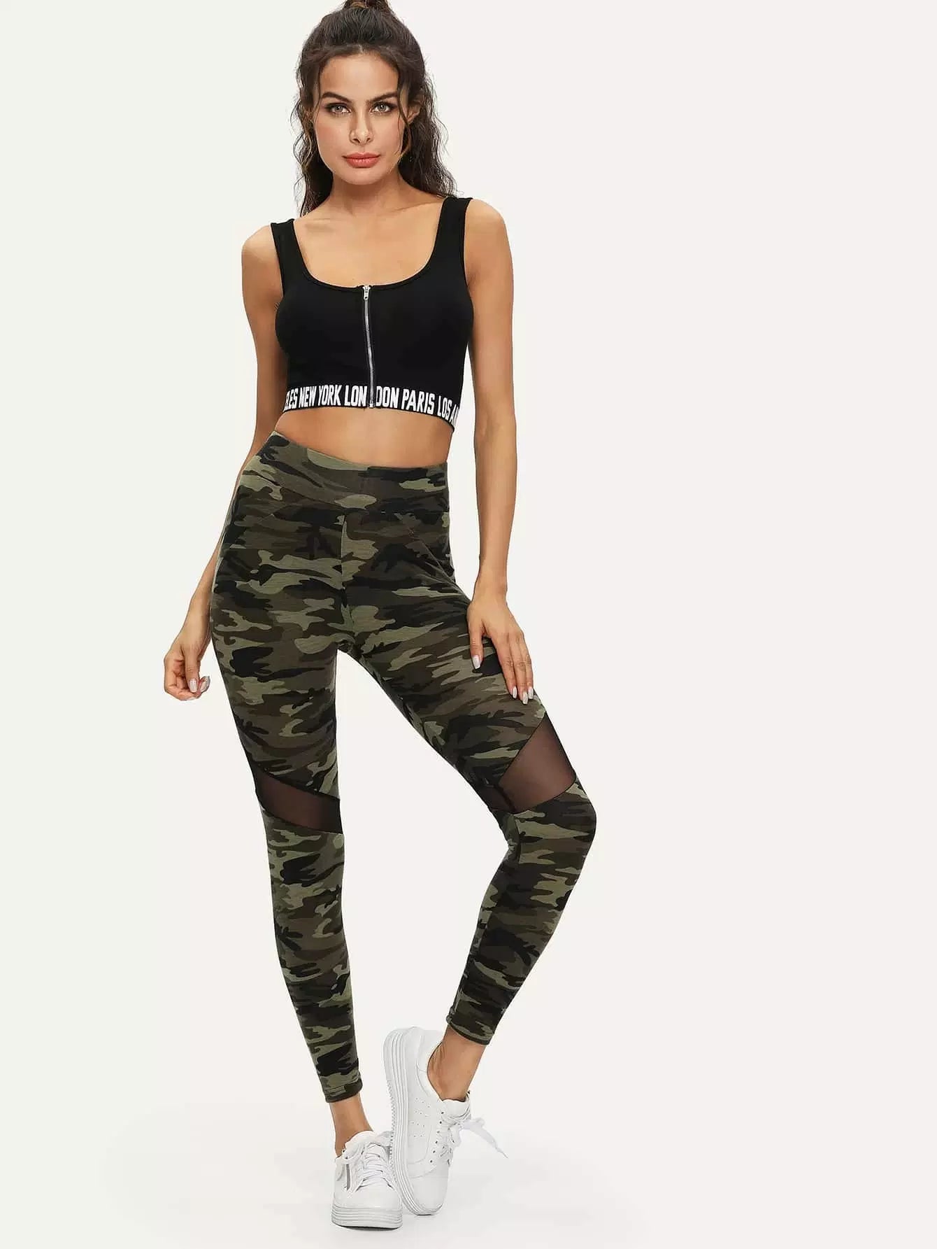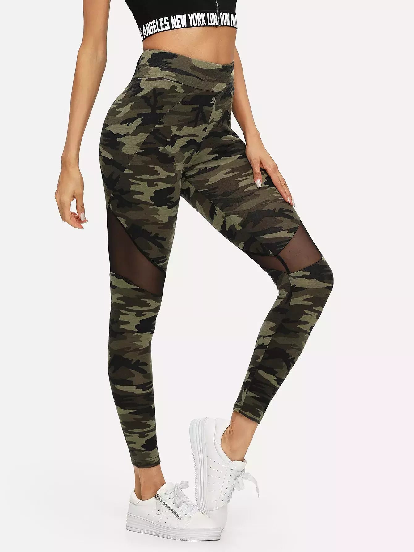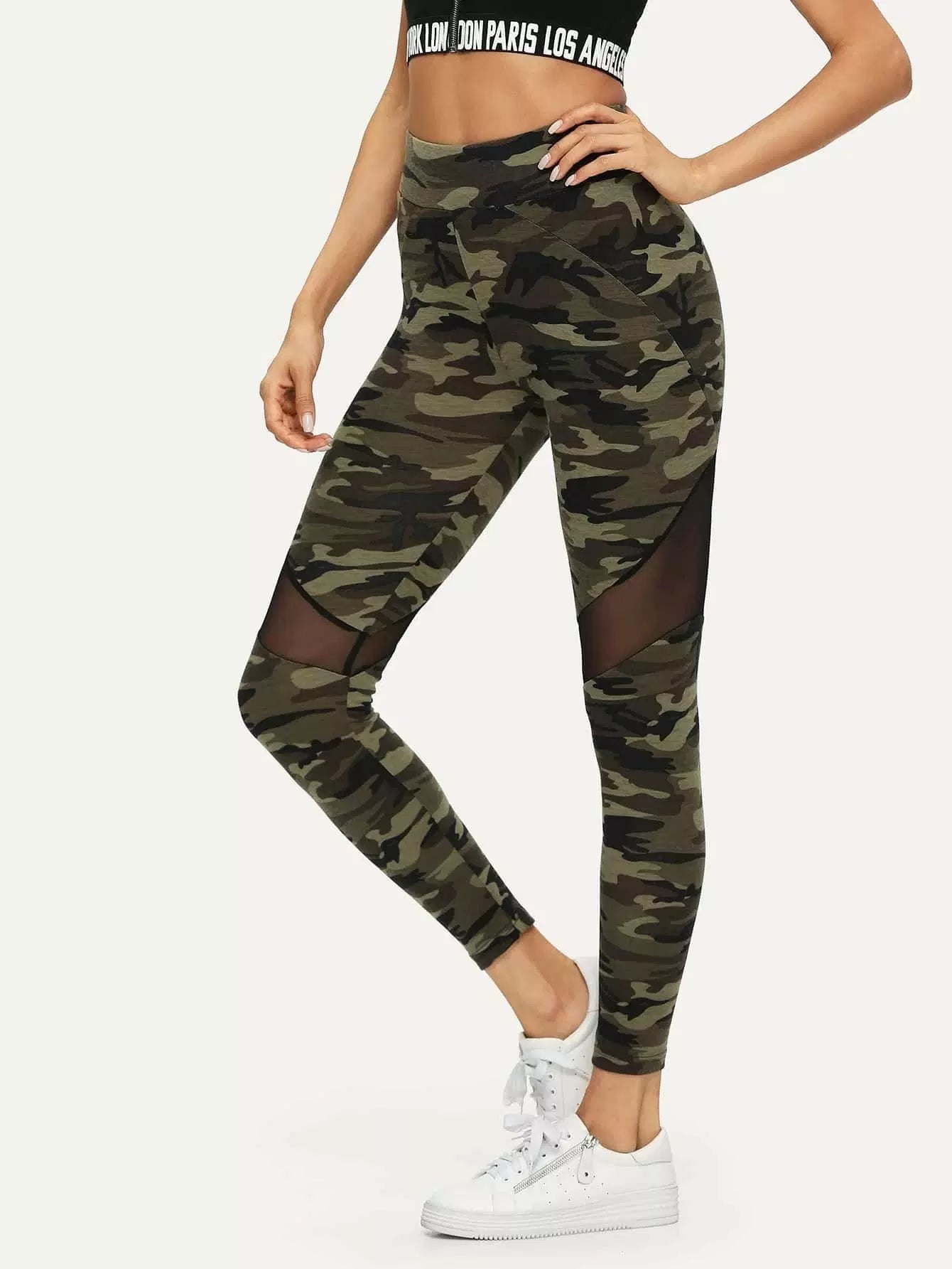بنطال ضيق شبكي بطبعة كامو داخلي