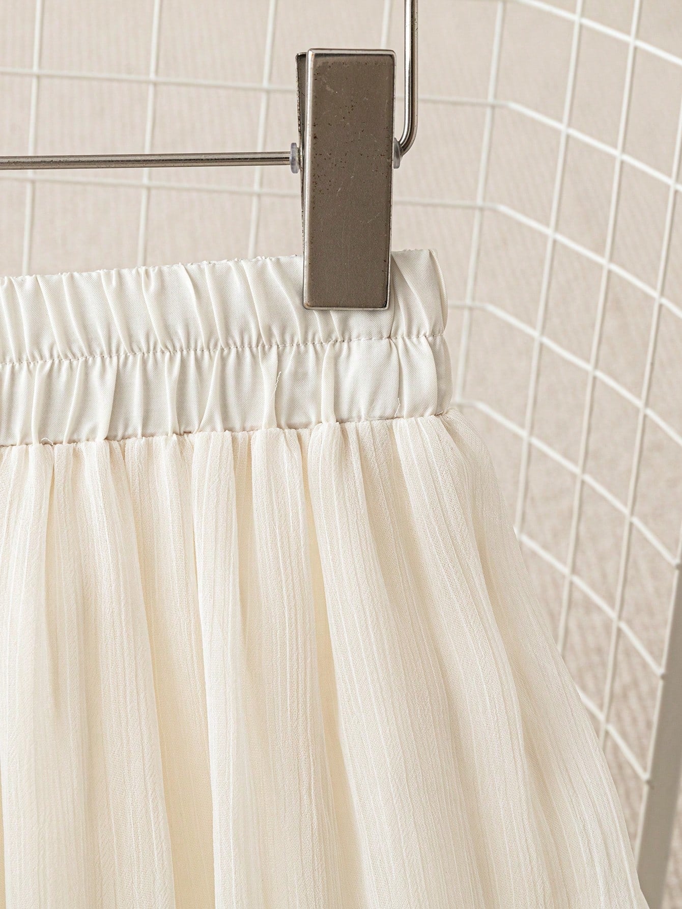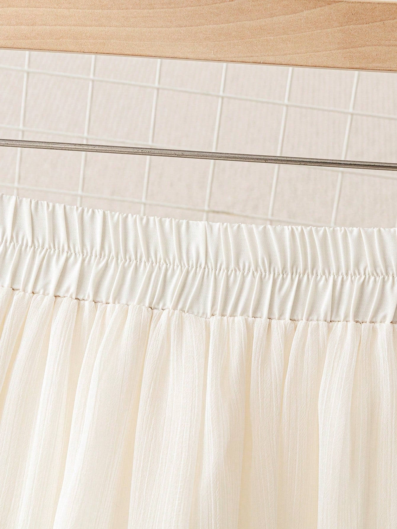 women Chiquease Women's Summer Apricot Tulle Chiffon Elastic Waist Versatile Wide-Leg Pants New Style Elegant High-End Drape Pleated Trousers