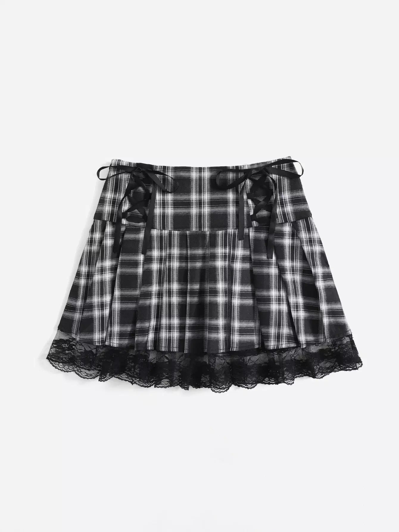 تنورة دانتيل منقوشة منقوشة بطيات من الدانتيل بلون مغاير