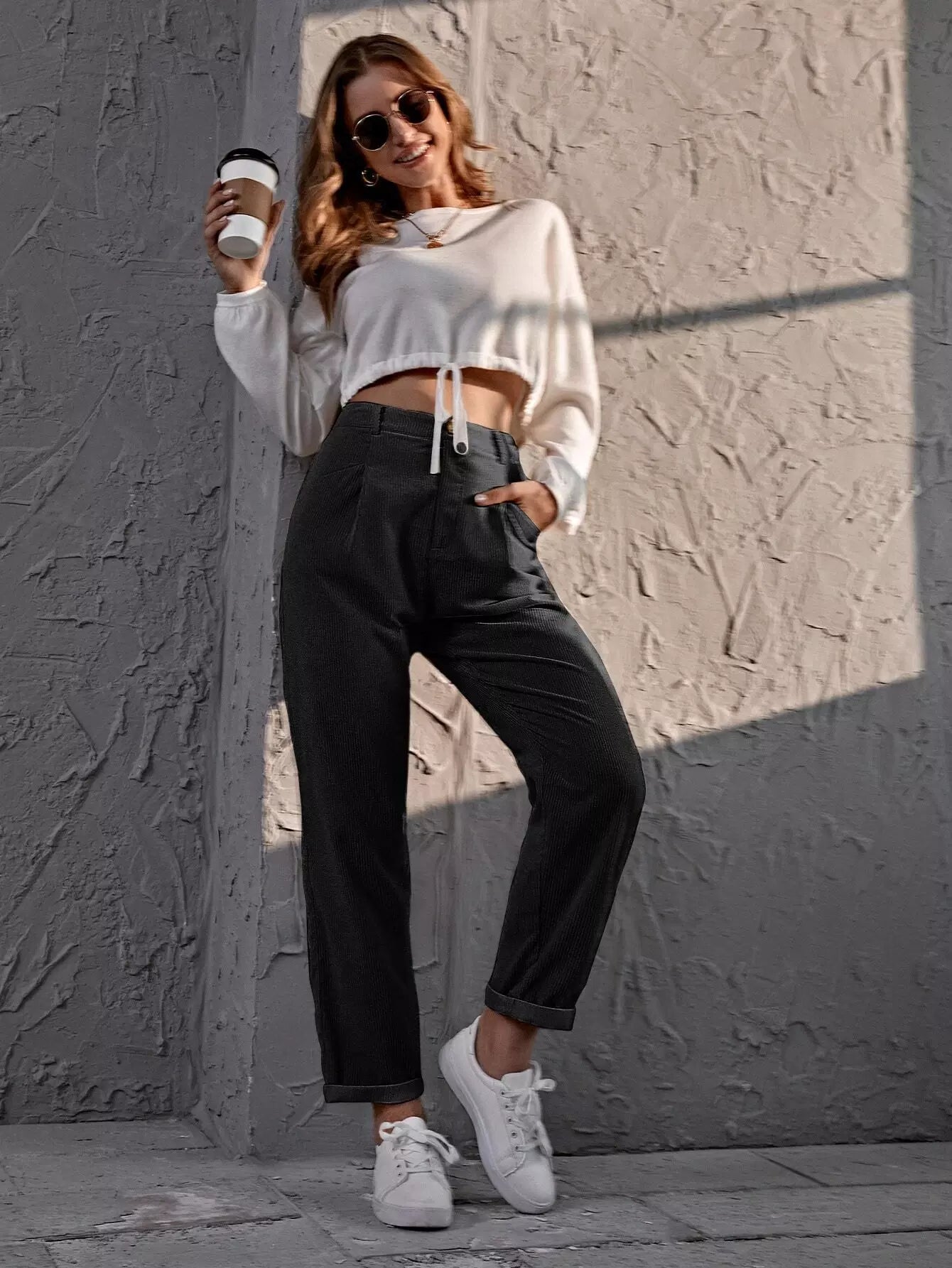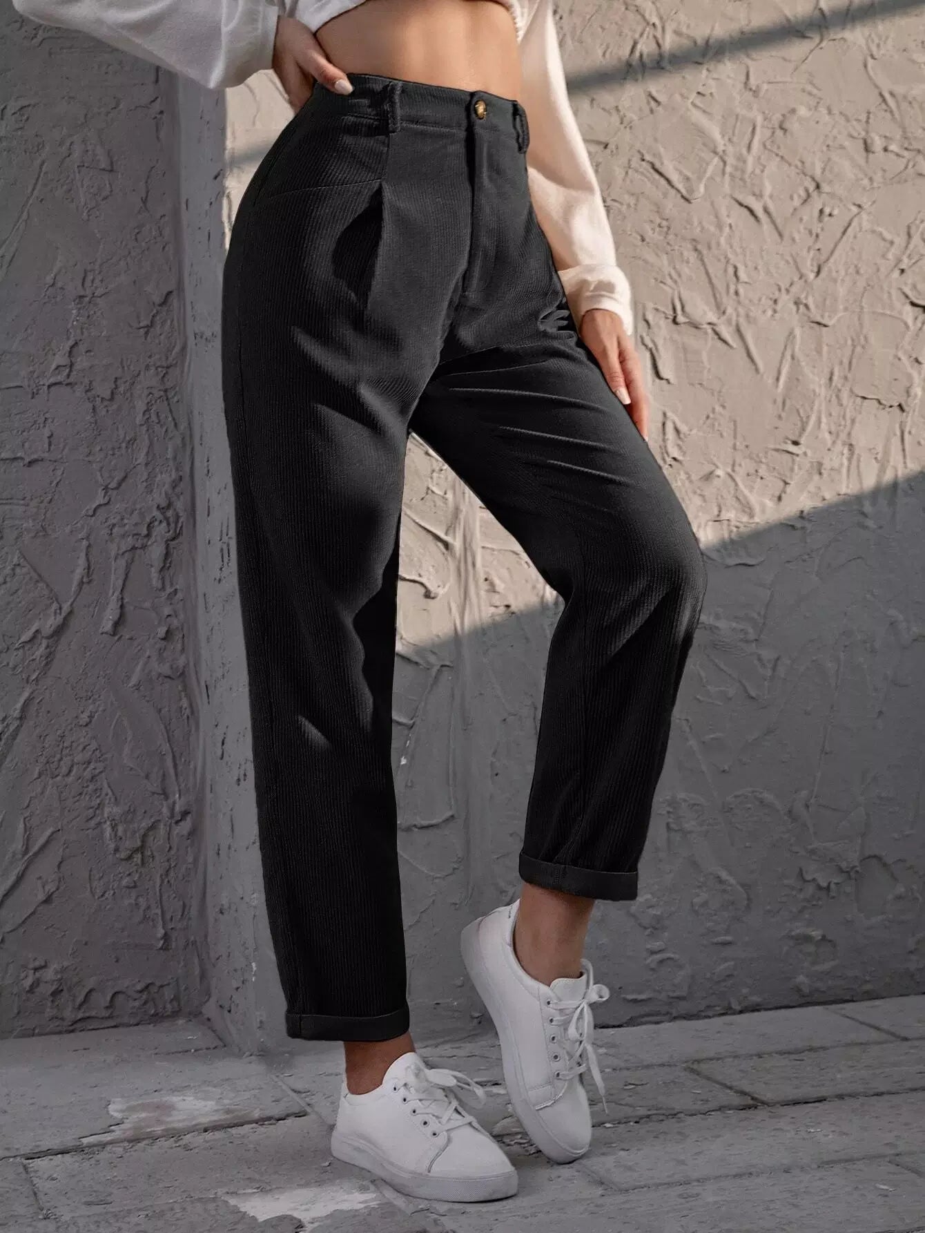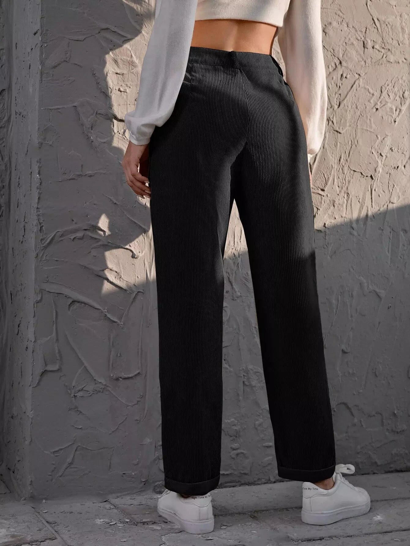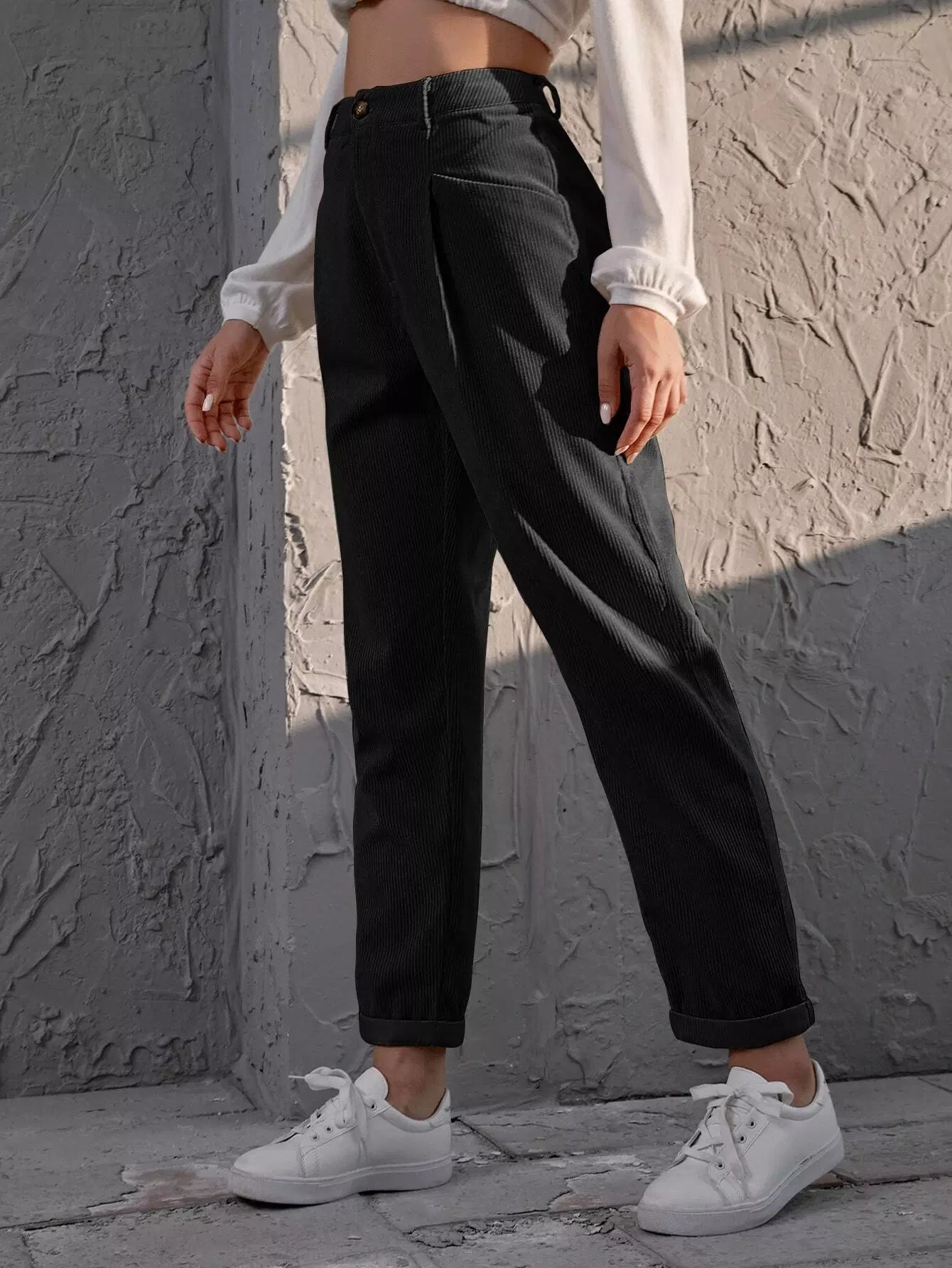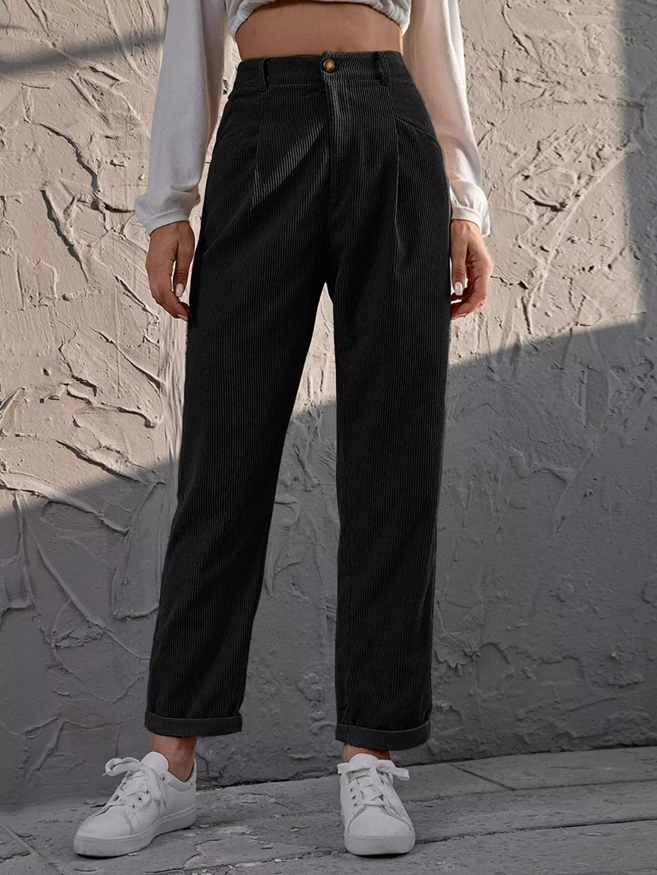 سروال قصير مستقيم عالي الارتفاع من الكوردروي