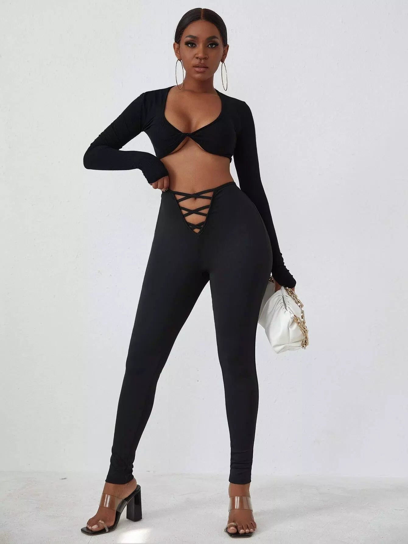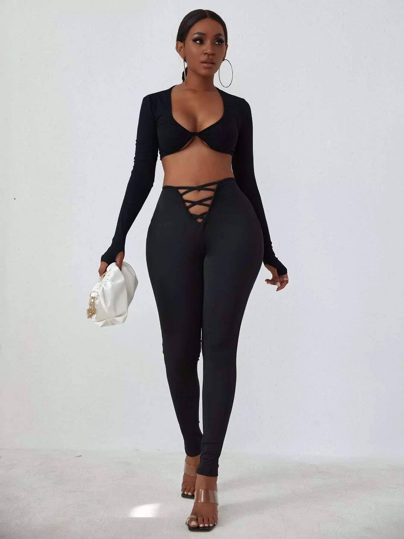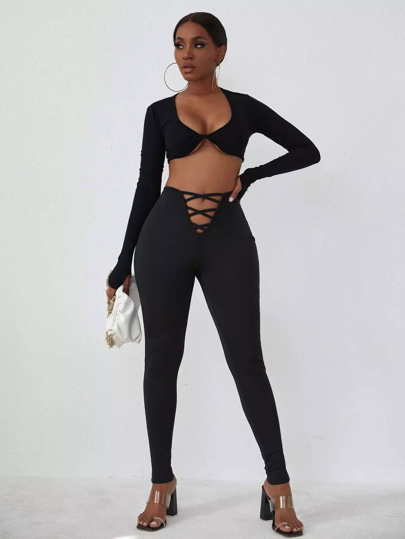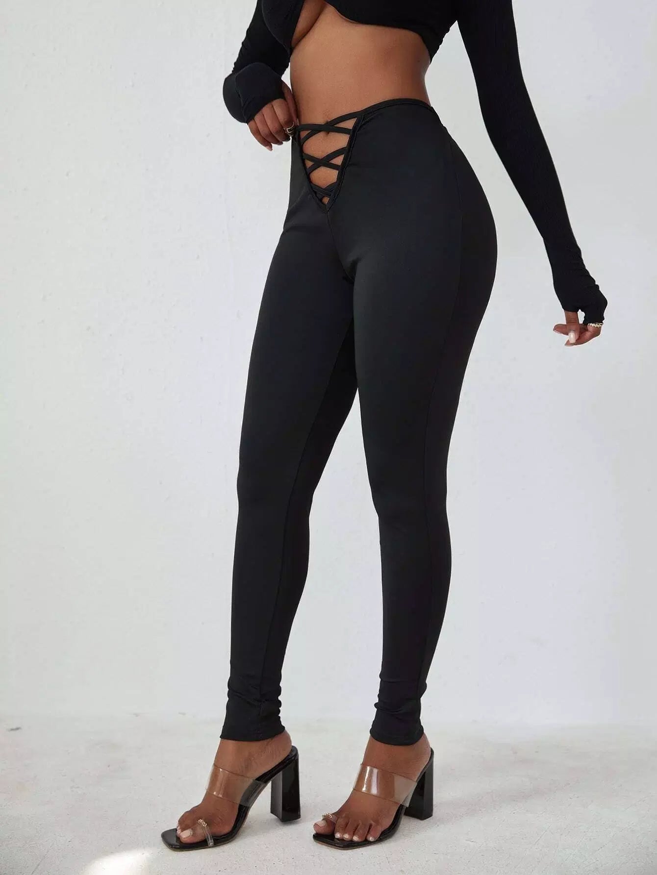 بنطلون ضيق بقصات متقاطعة مقطوعة