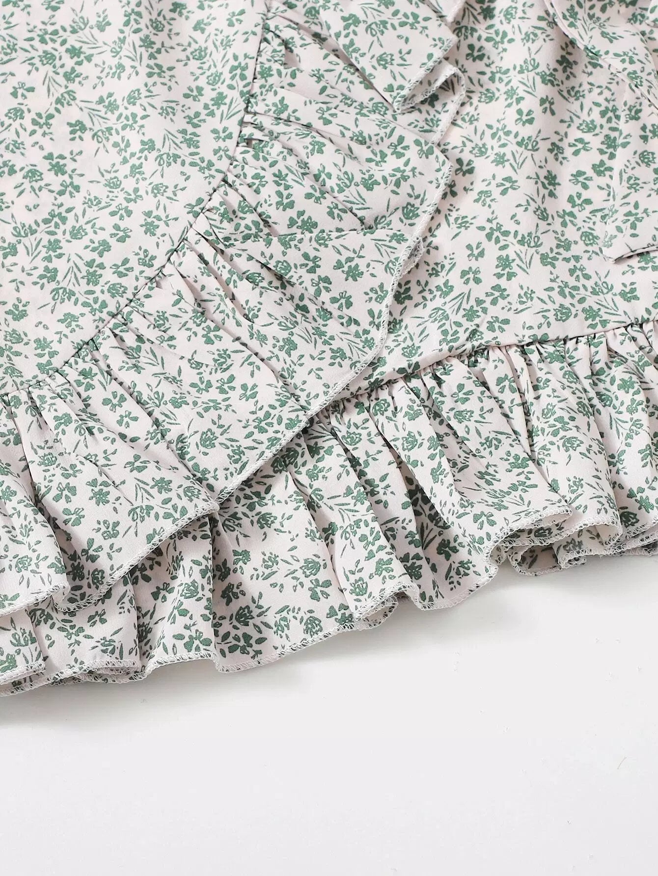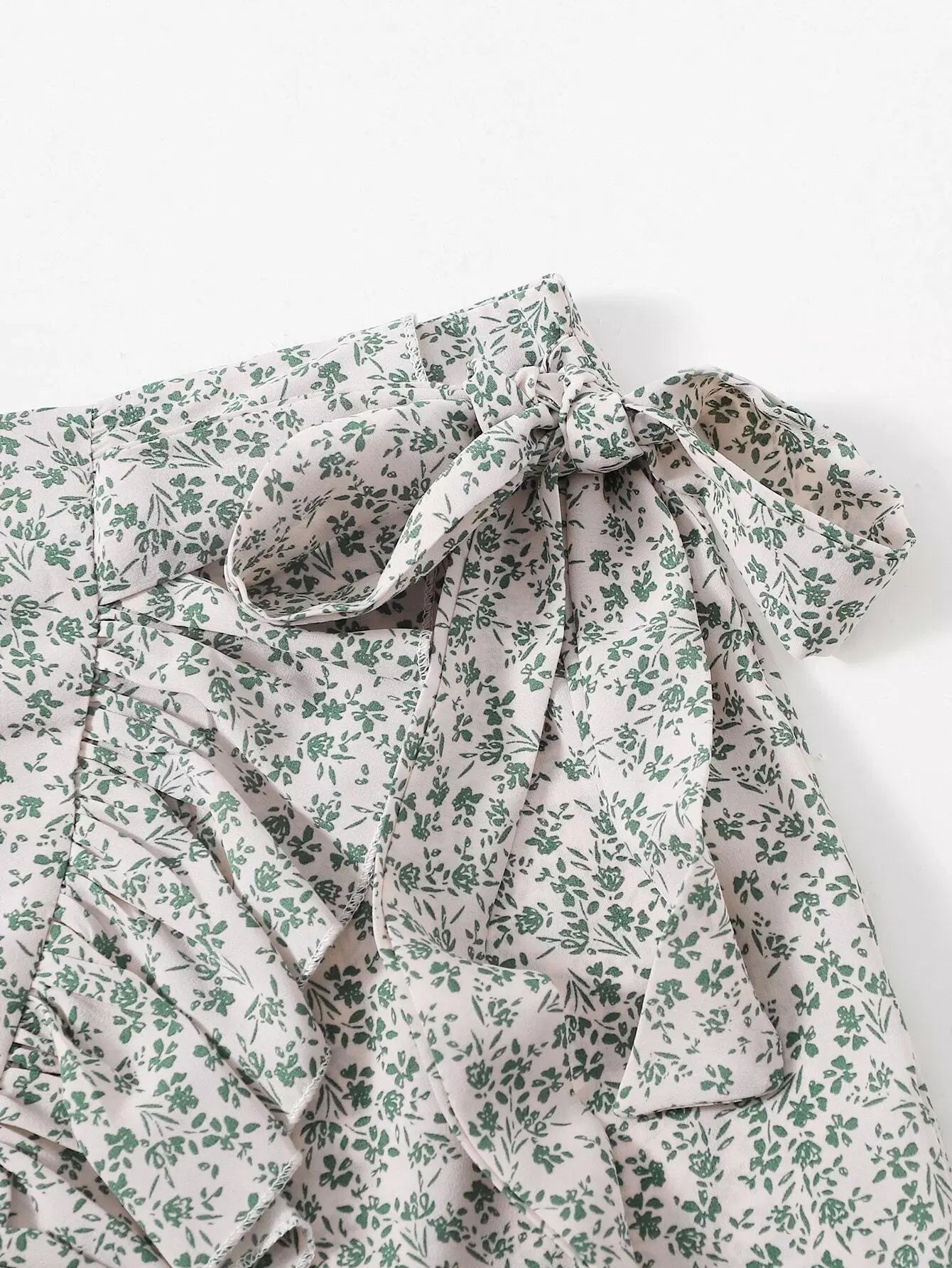 تنورة ديتسي ذات عقدة زهرية جانبية مكشكشة الحاشية