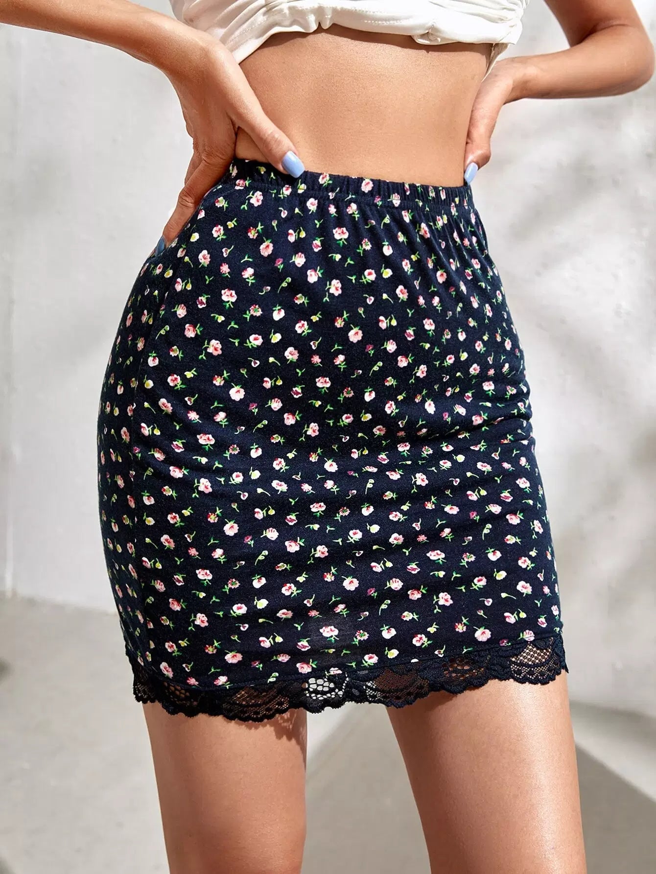 تنورة بوديكون مزينة بالدانتيل المزركش بالورود
