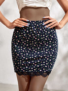 النساء - تنورة ضيقة مزينة بالزهور من الدانتيل