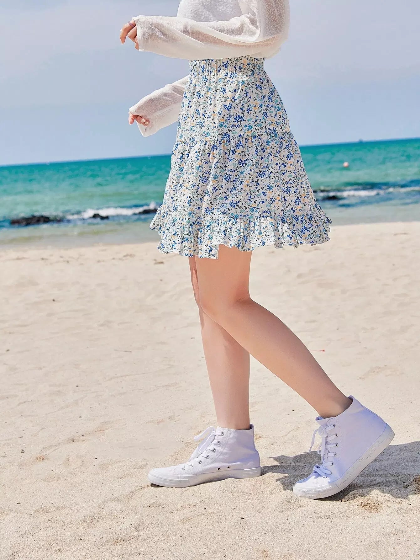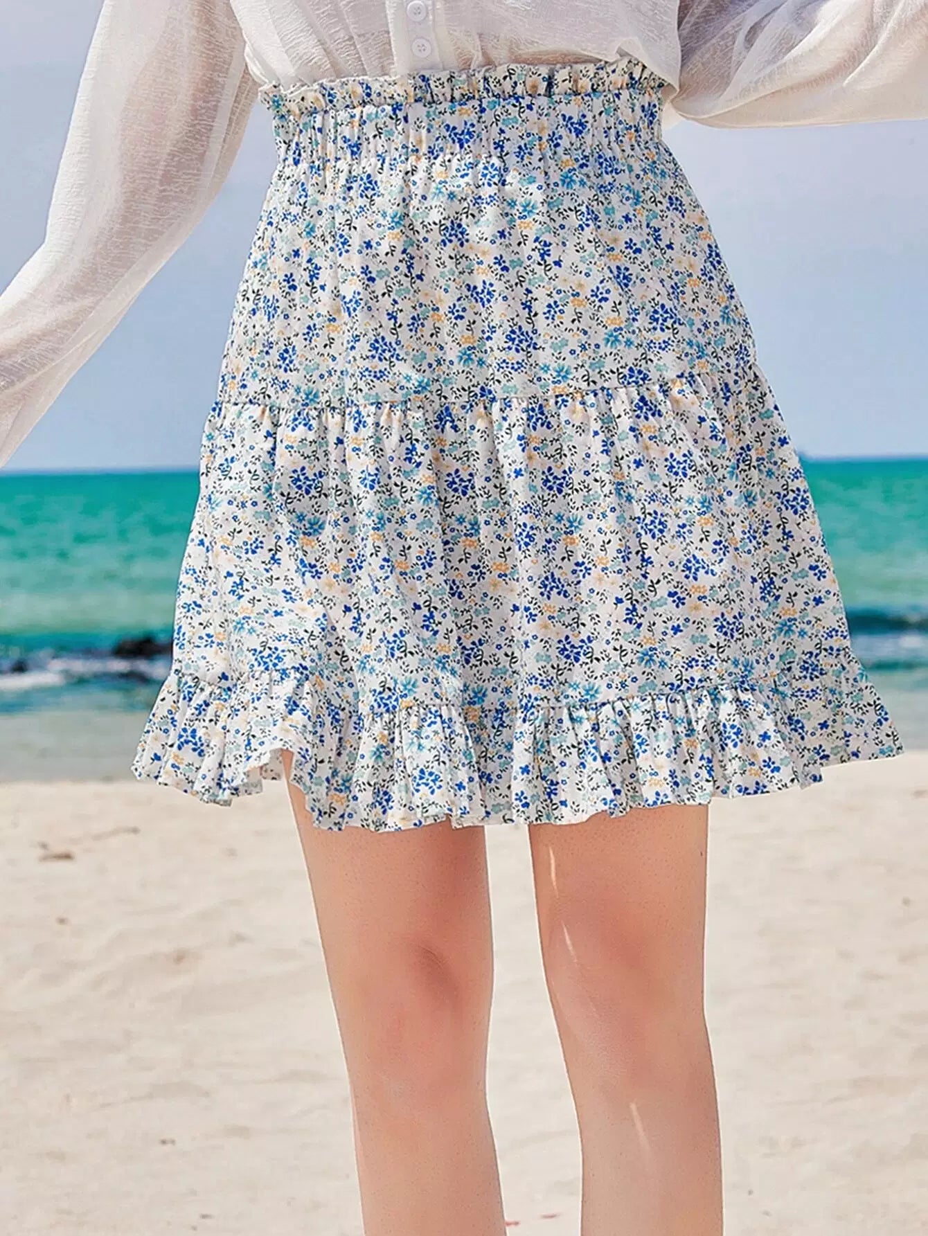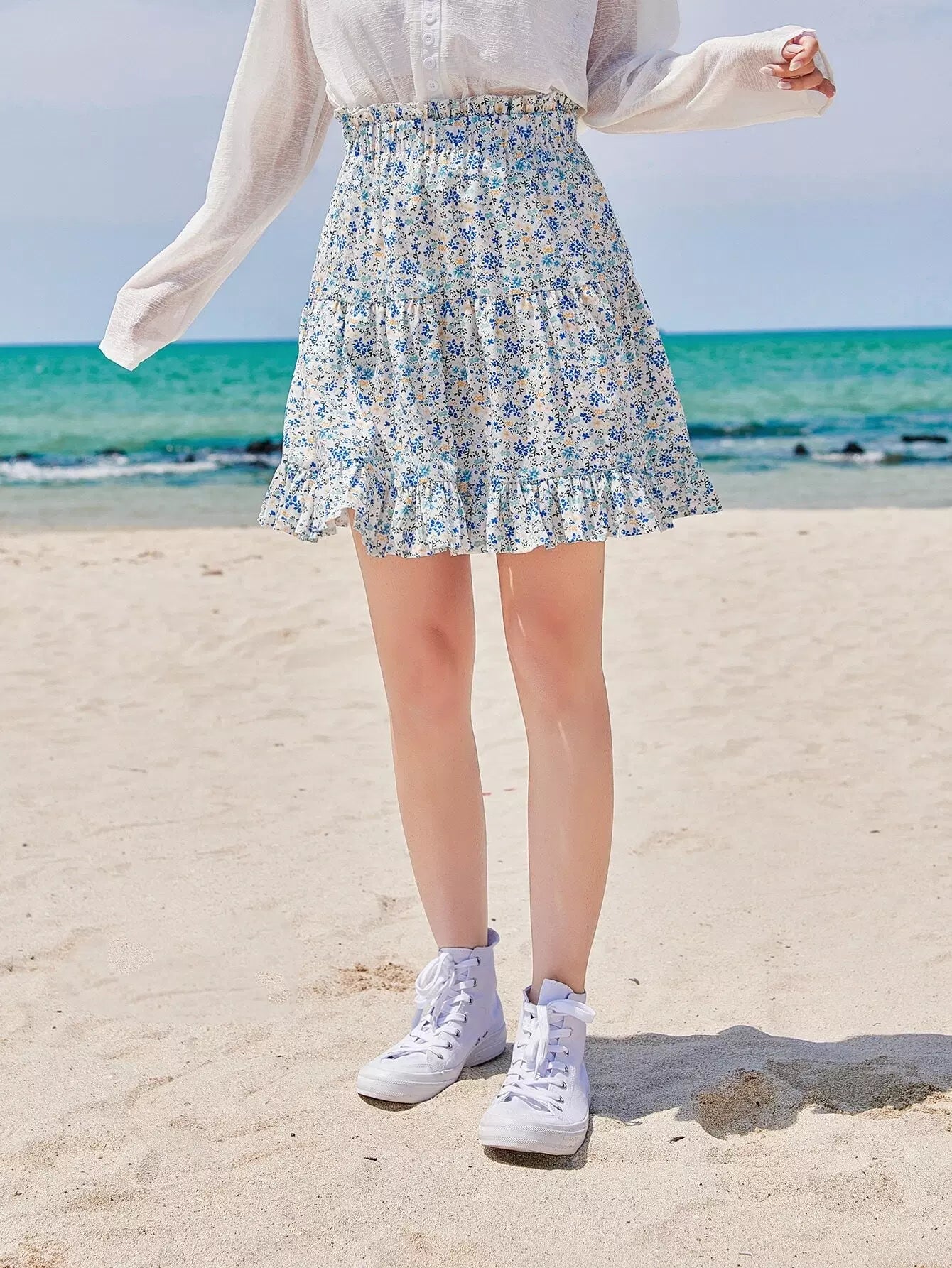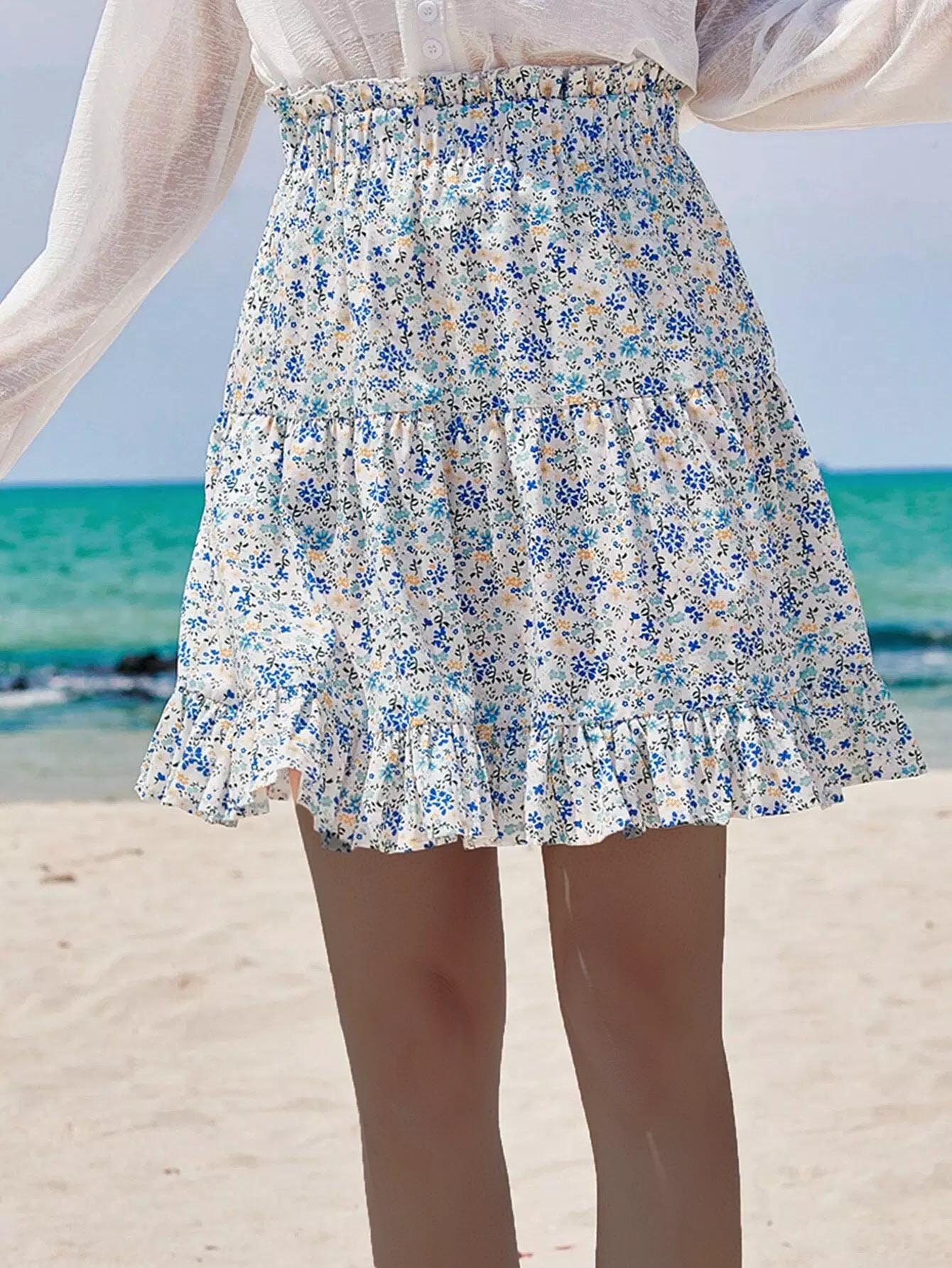 تنورة مكشكشة مزينة بالورود على الخصر مزينة بالورود