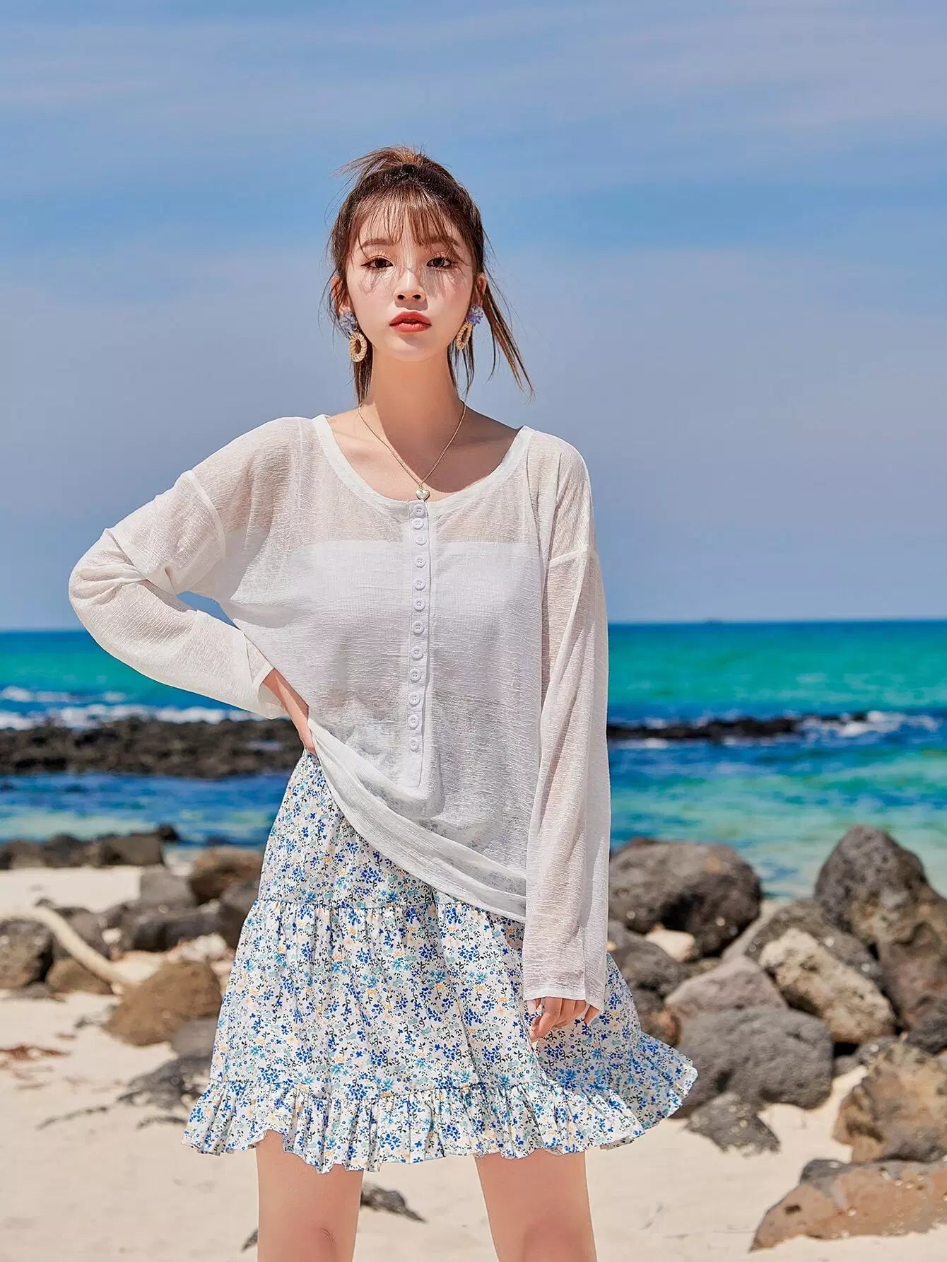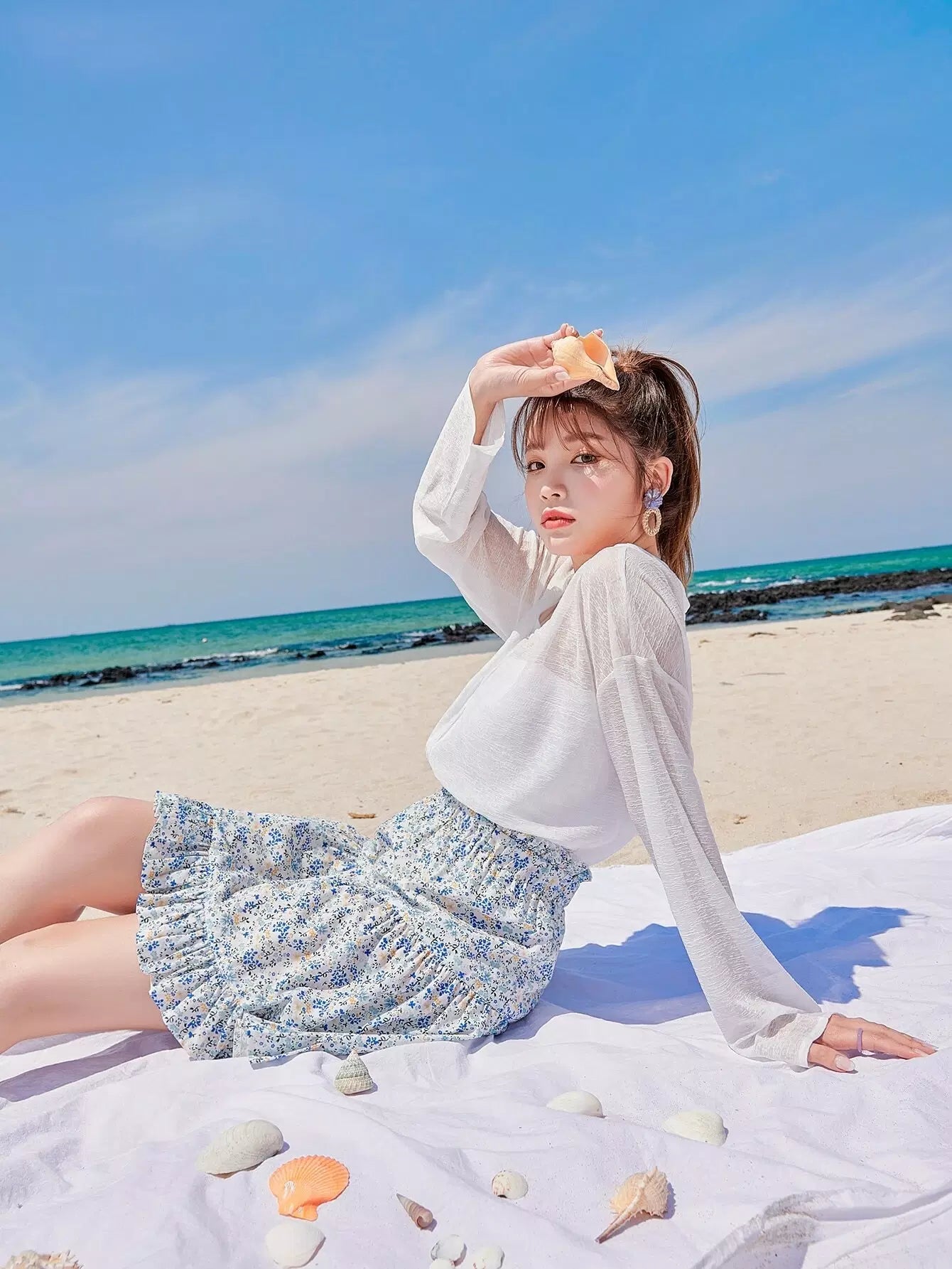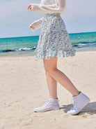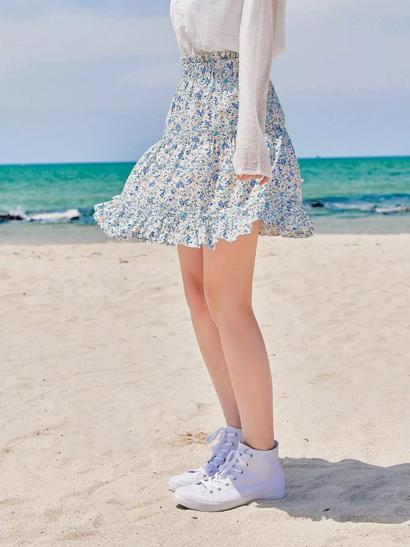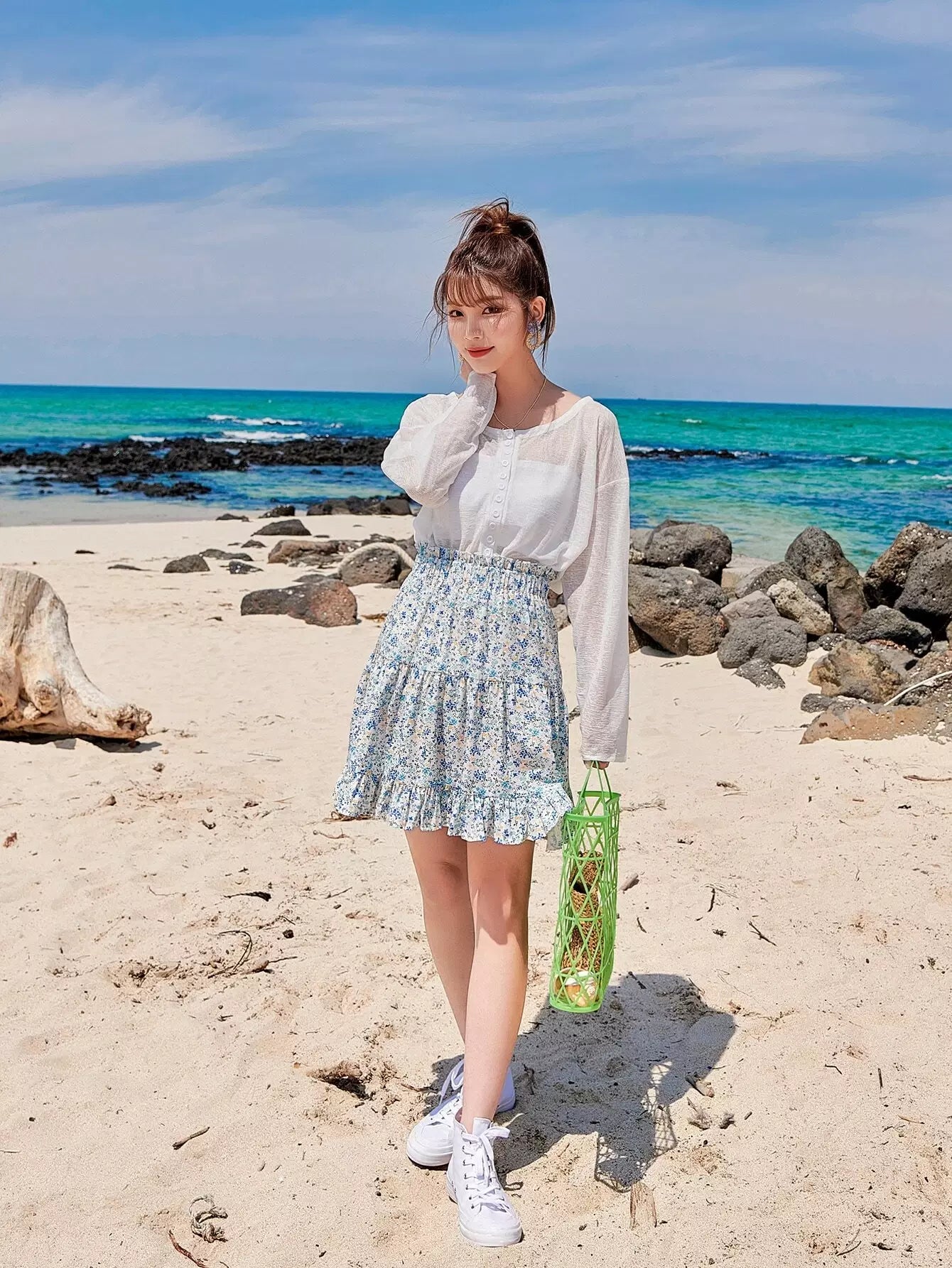 تنورة مكشكشة مزينة بالورود على الخصر مزينة بالورود