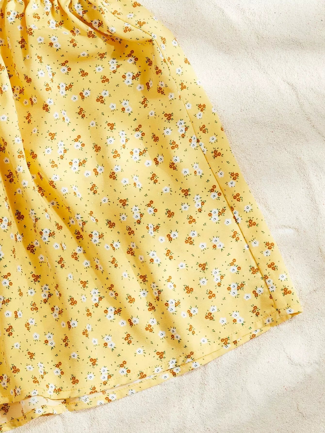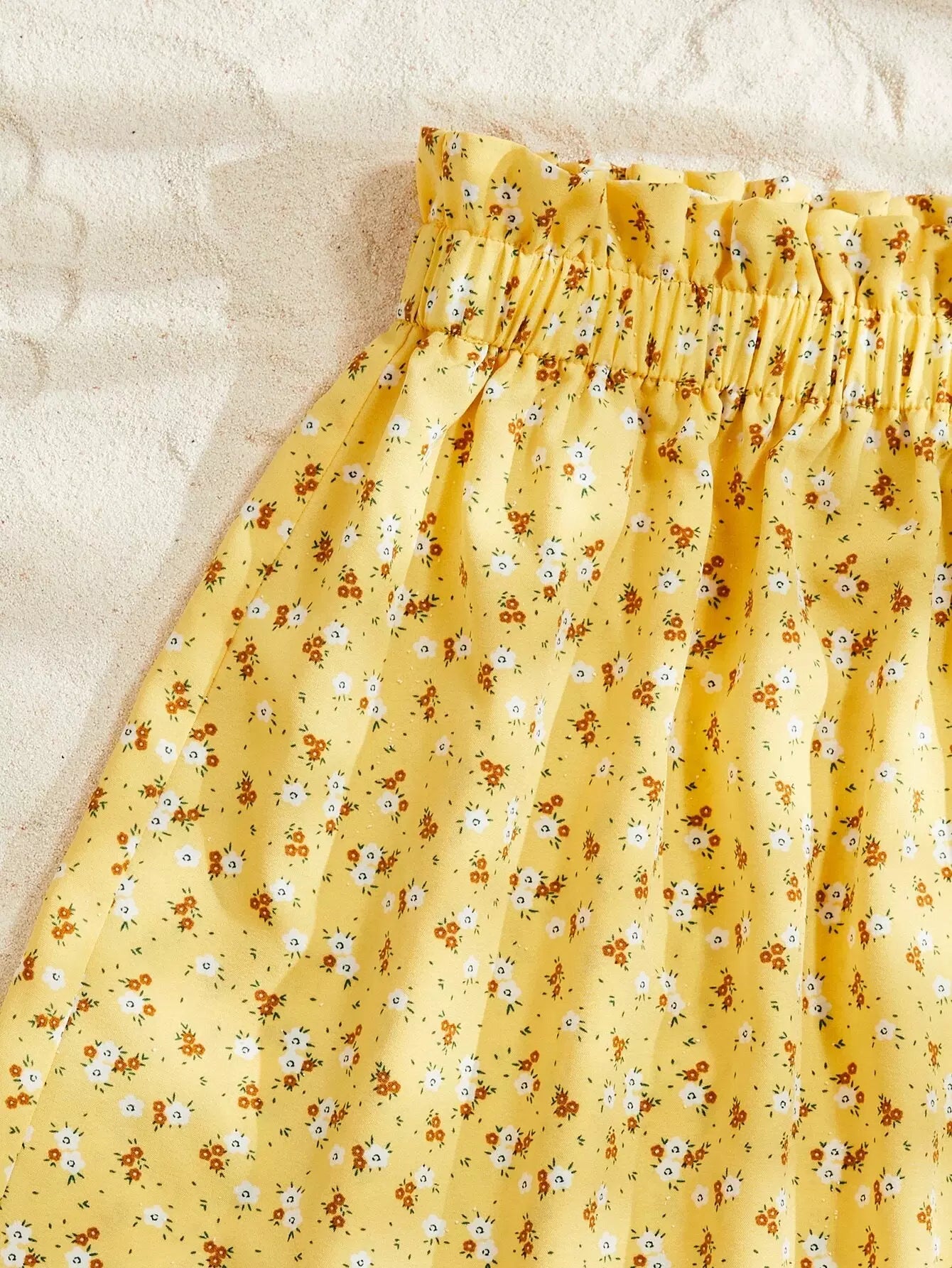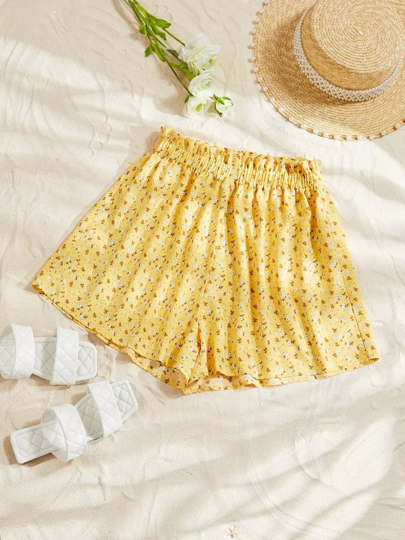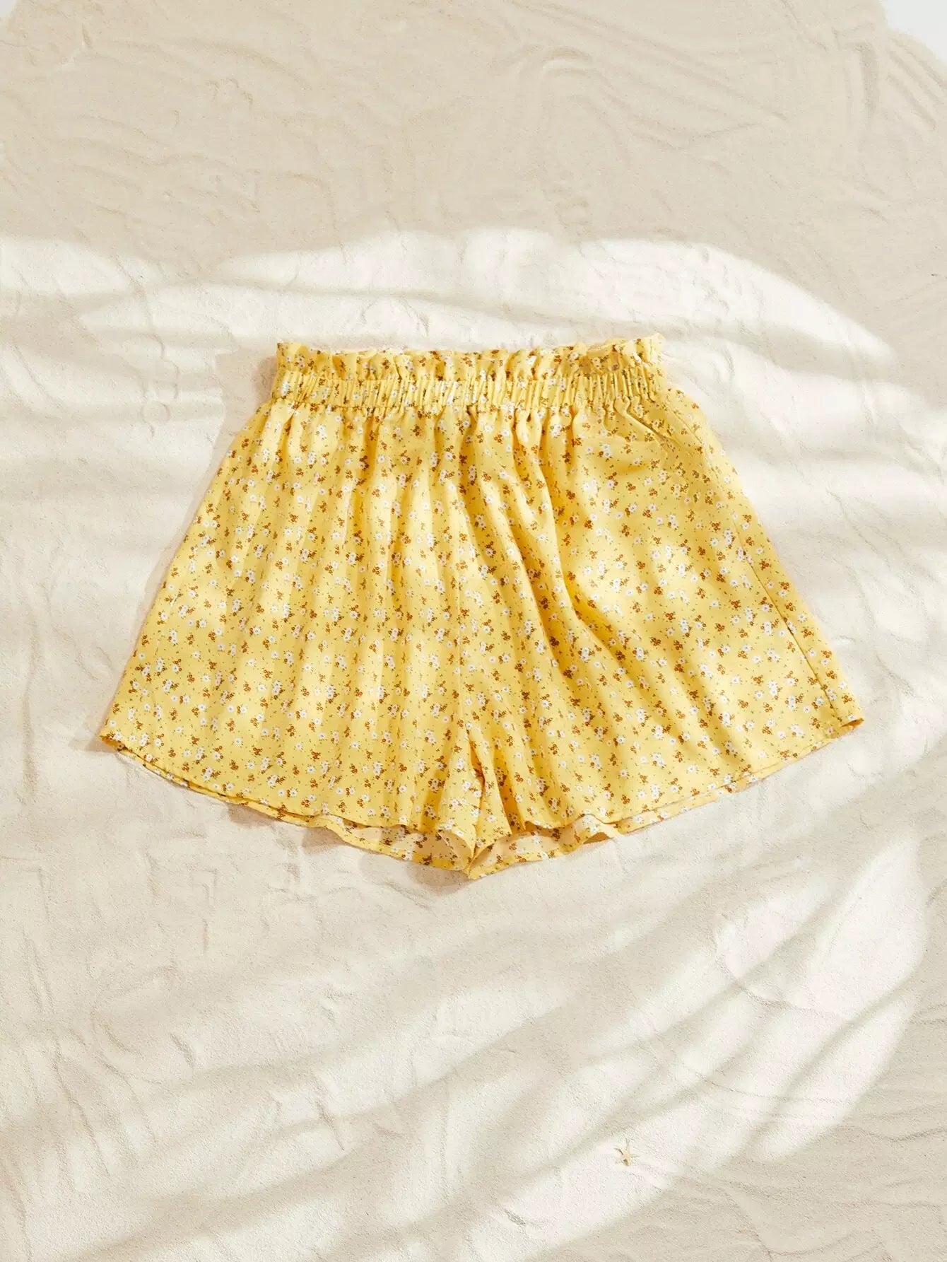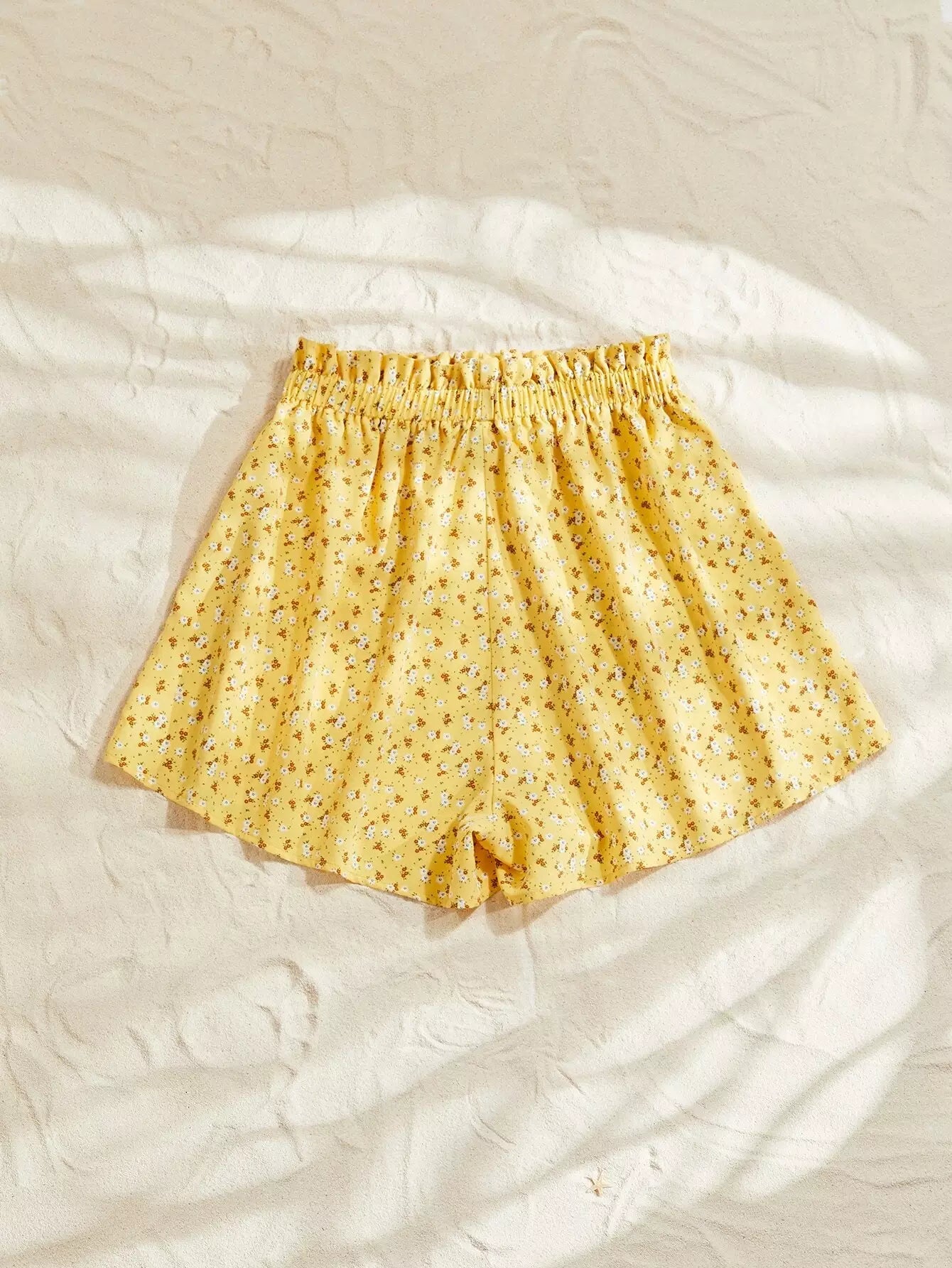 شورت بخصر كيس ورقي مزين بالورود مزين بالورود