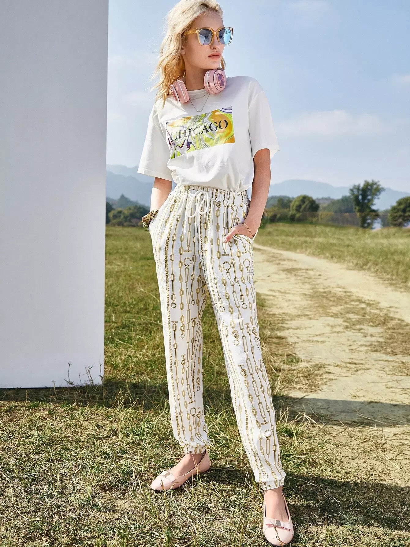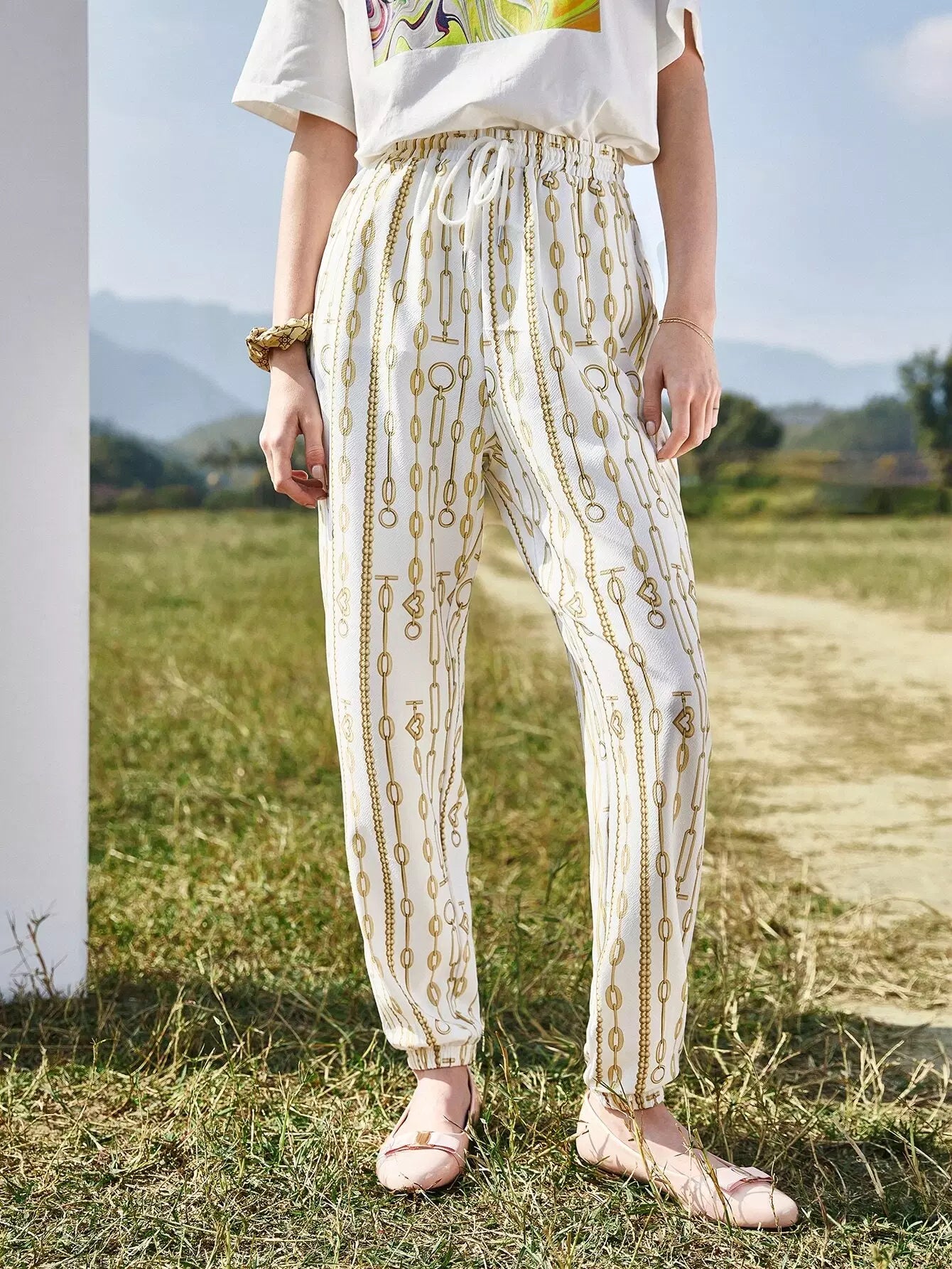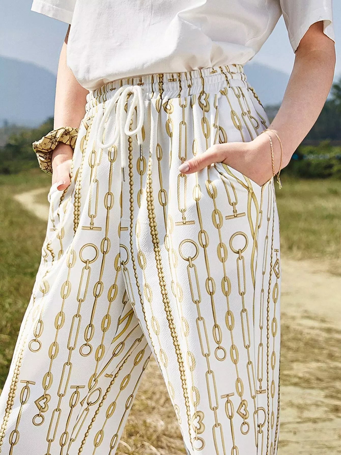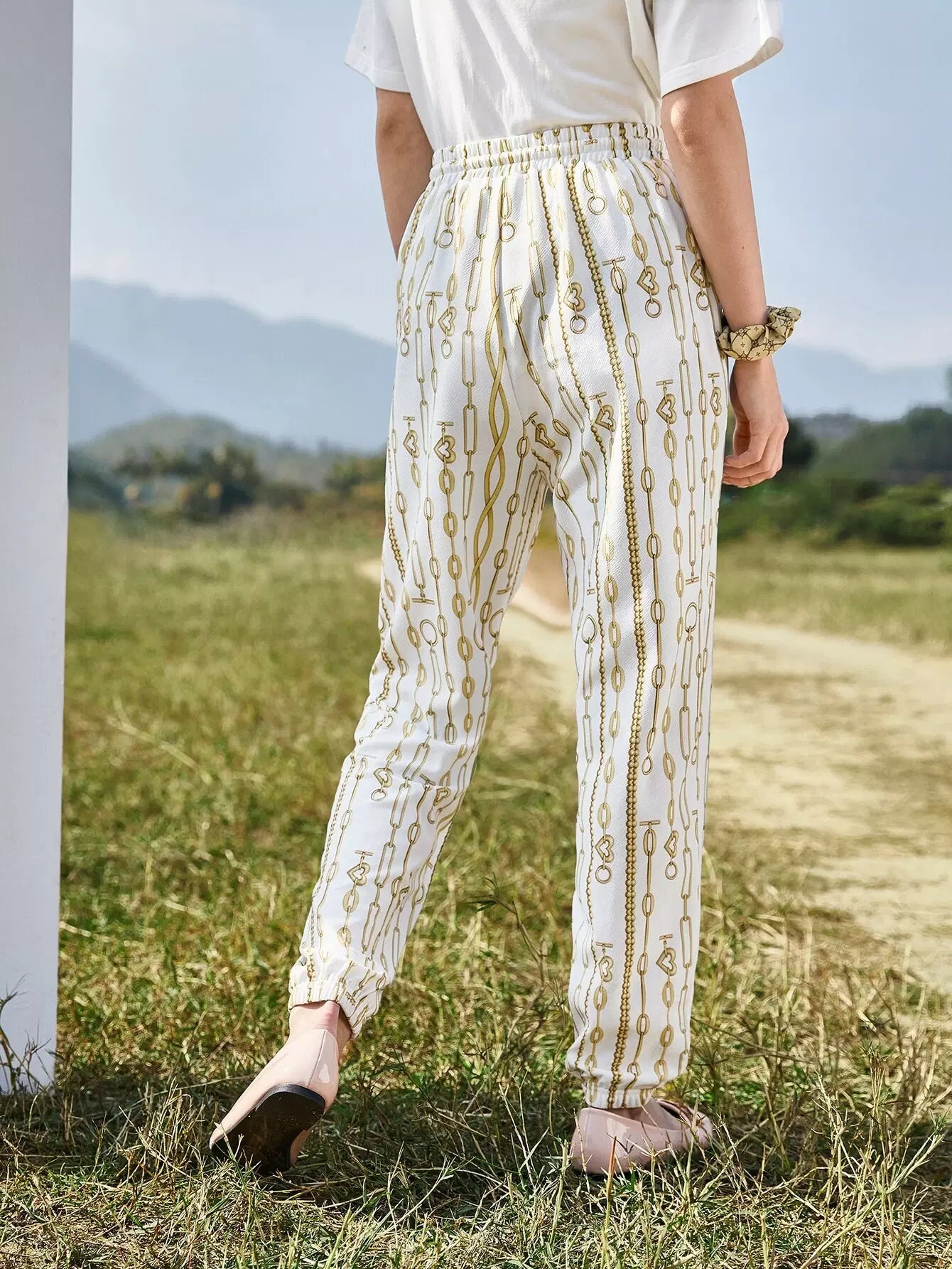 بنطلون رياضي بطبعة سلاسل على الخصر برباط رباط