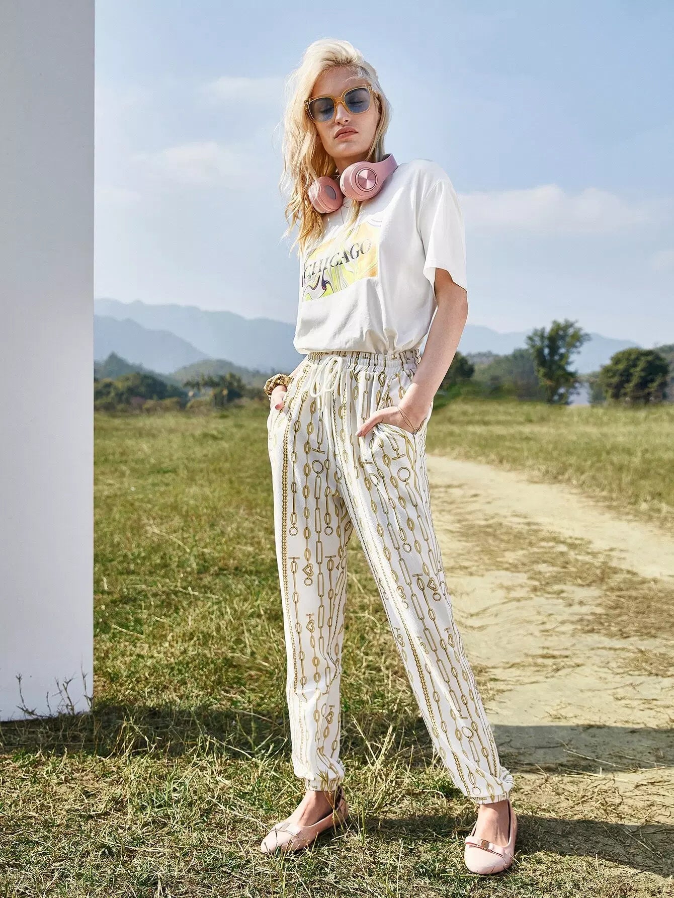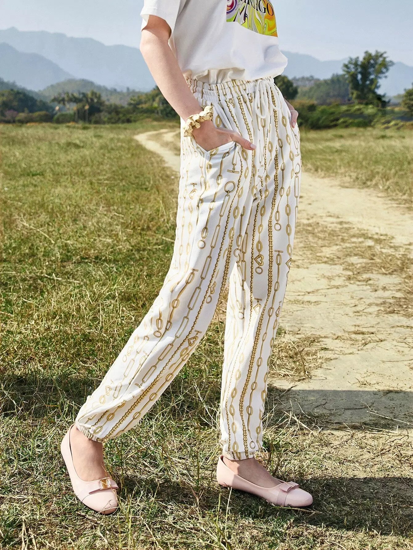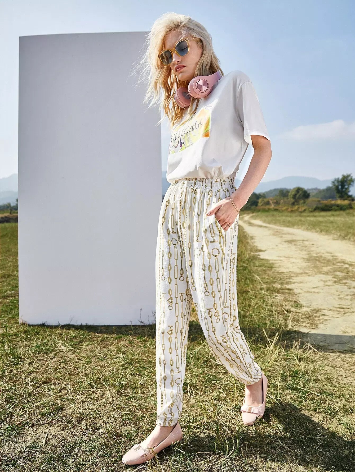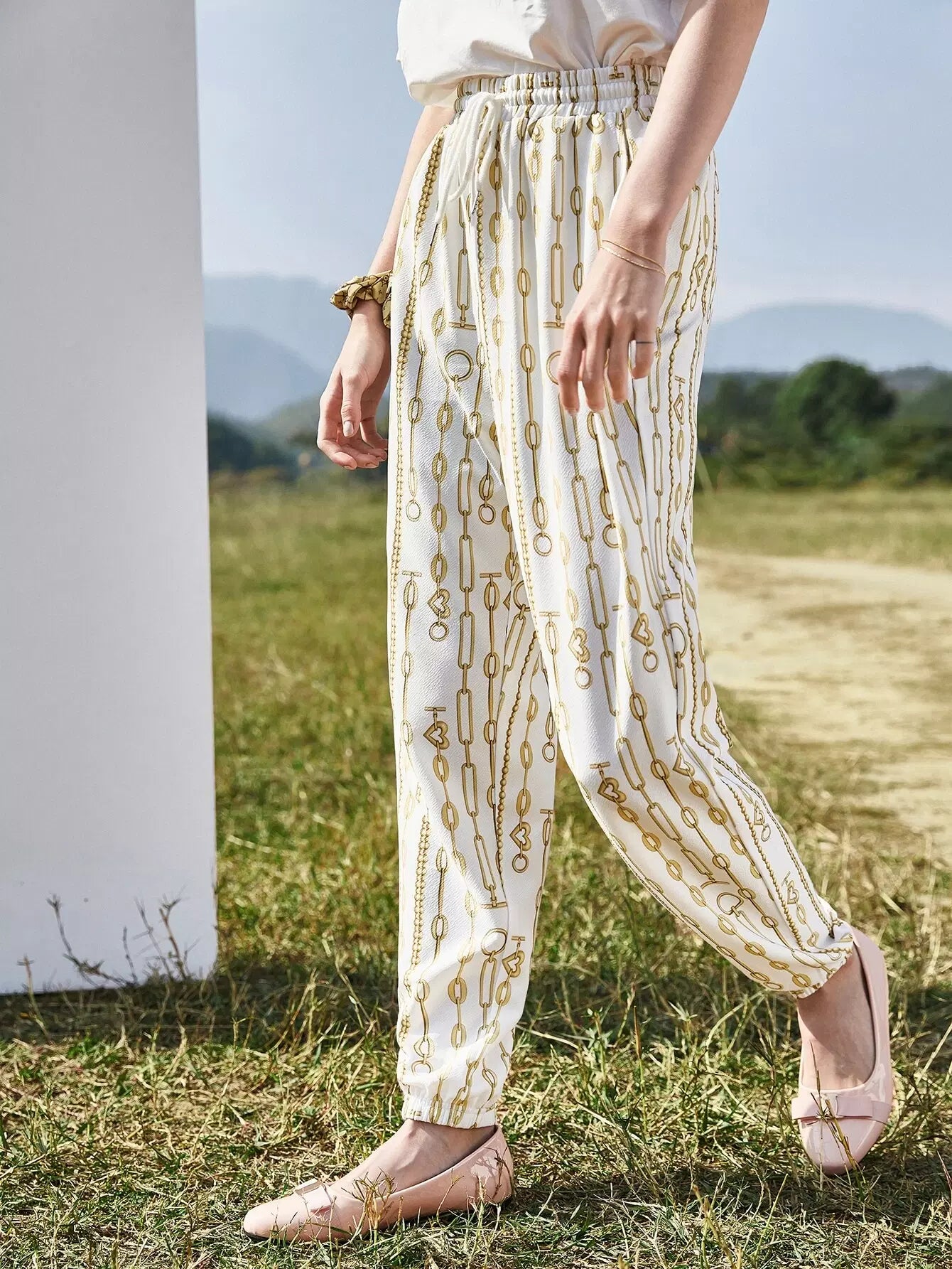 بنطلون رياضي بطبعة سلاسل على الخصر برباط رباط