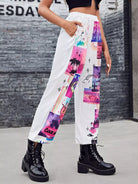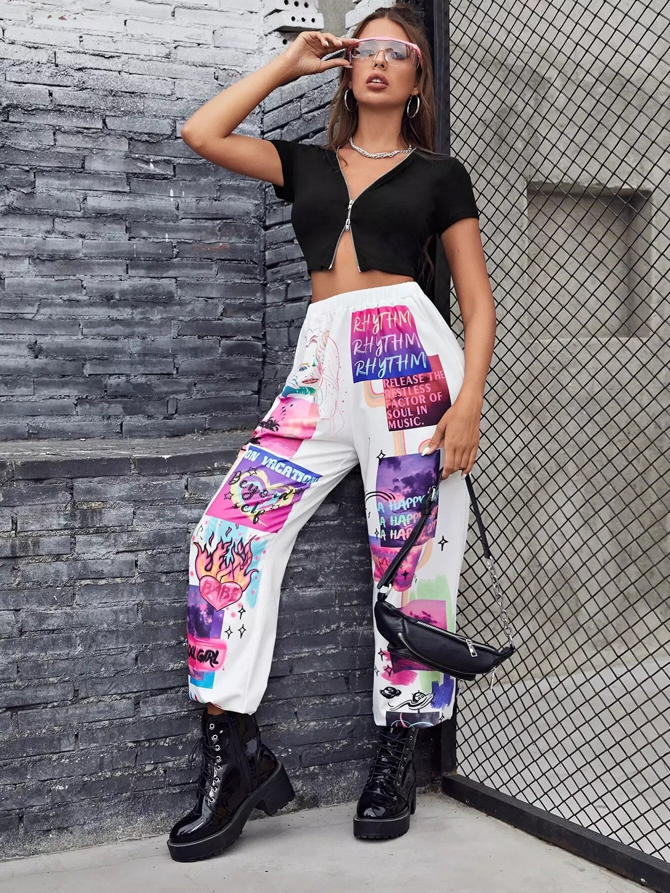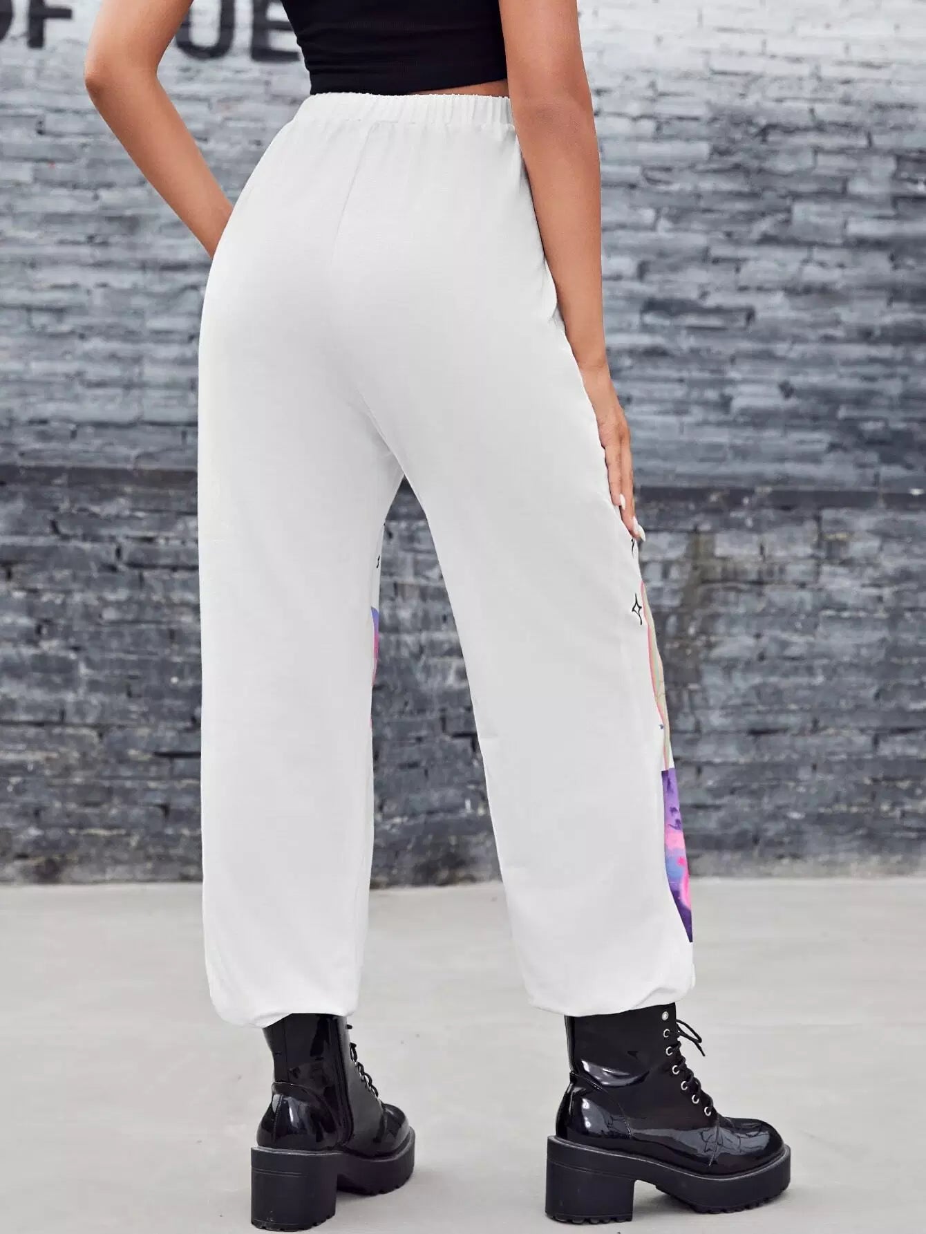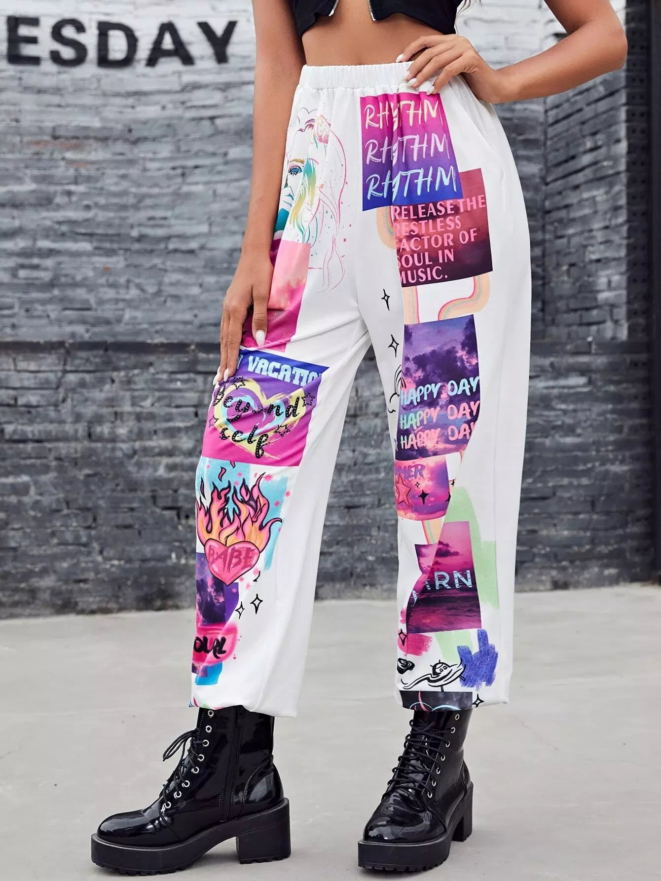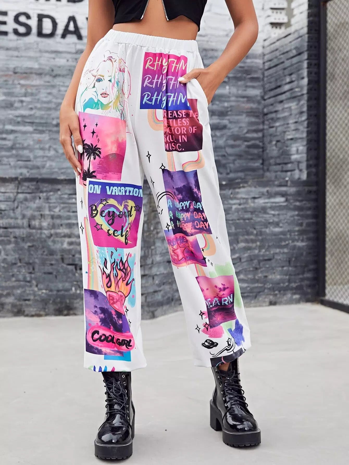 بنطلون بخصر مطاطي مزين برسومات على شكل حرف وقلب
