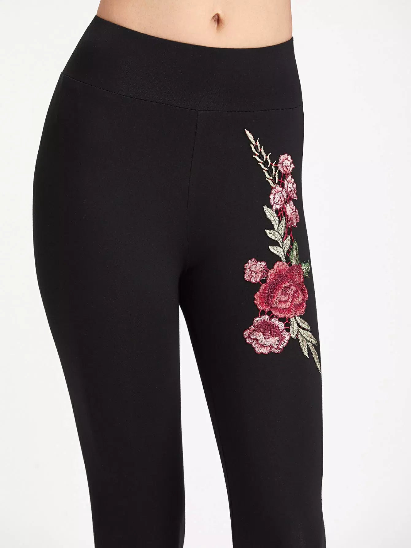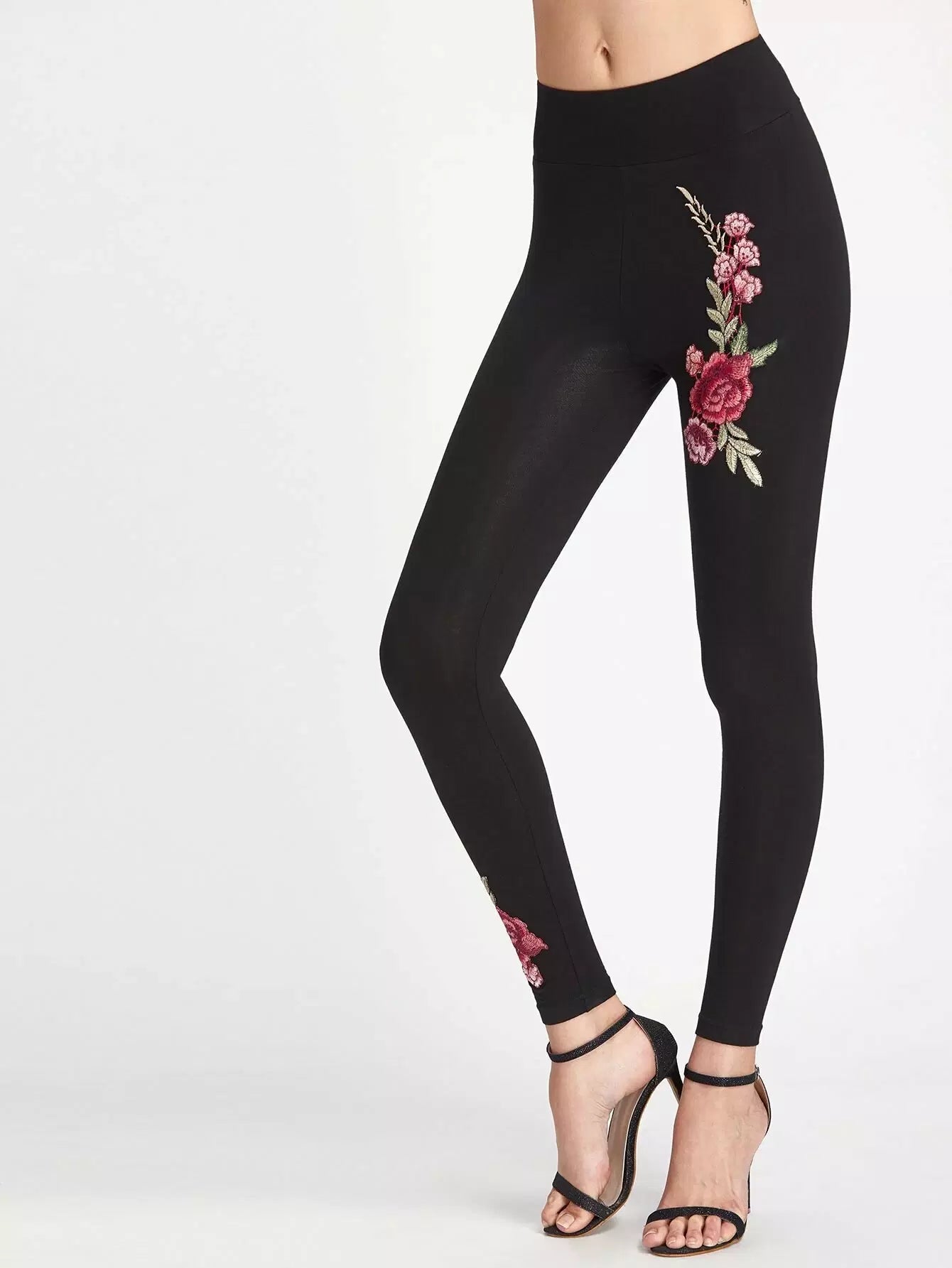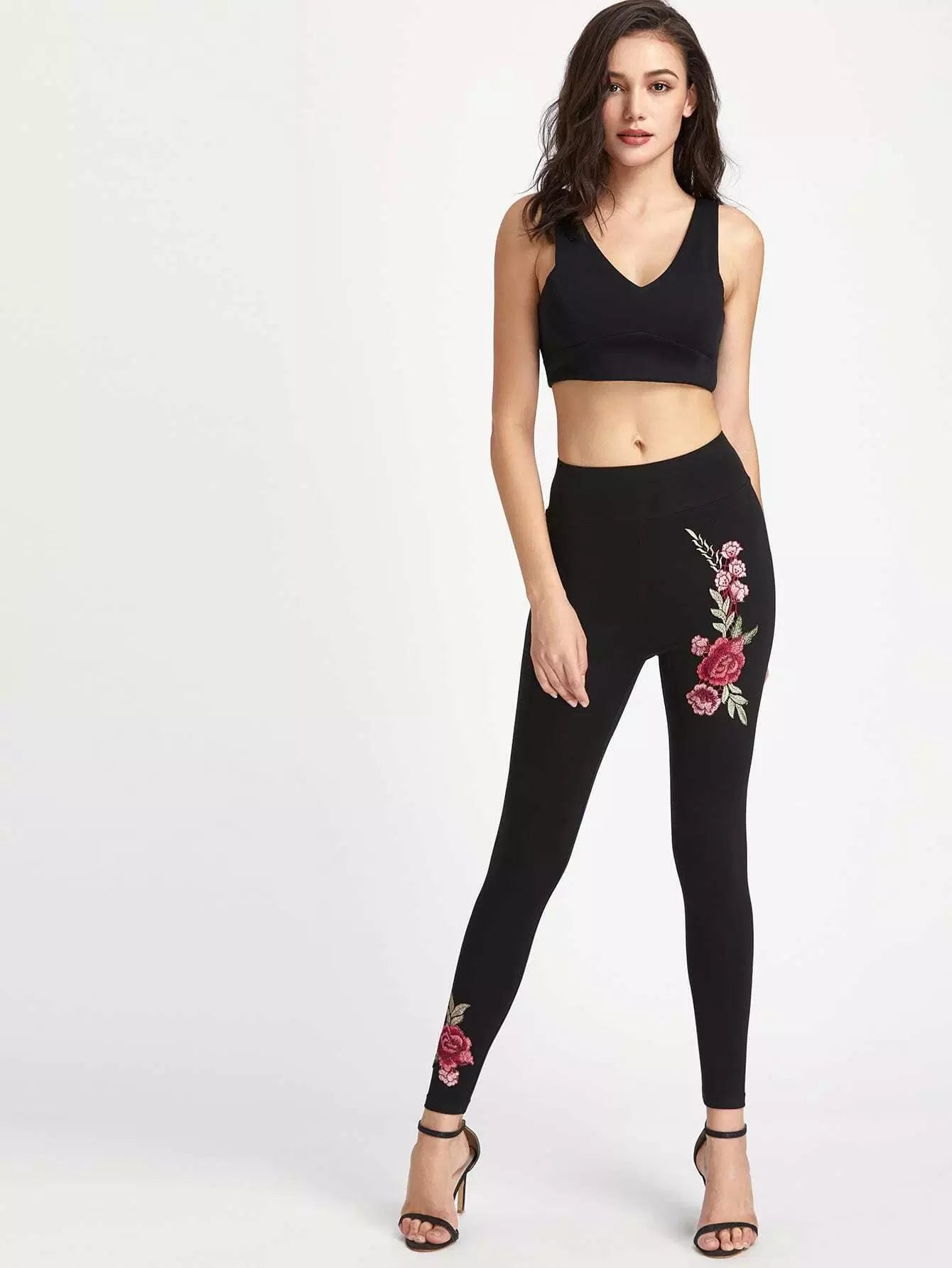 بنطلون ضيق بحزام خصر عريض مطرز بتطريزات على شكل رقعة