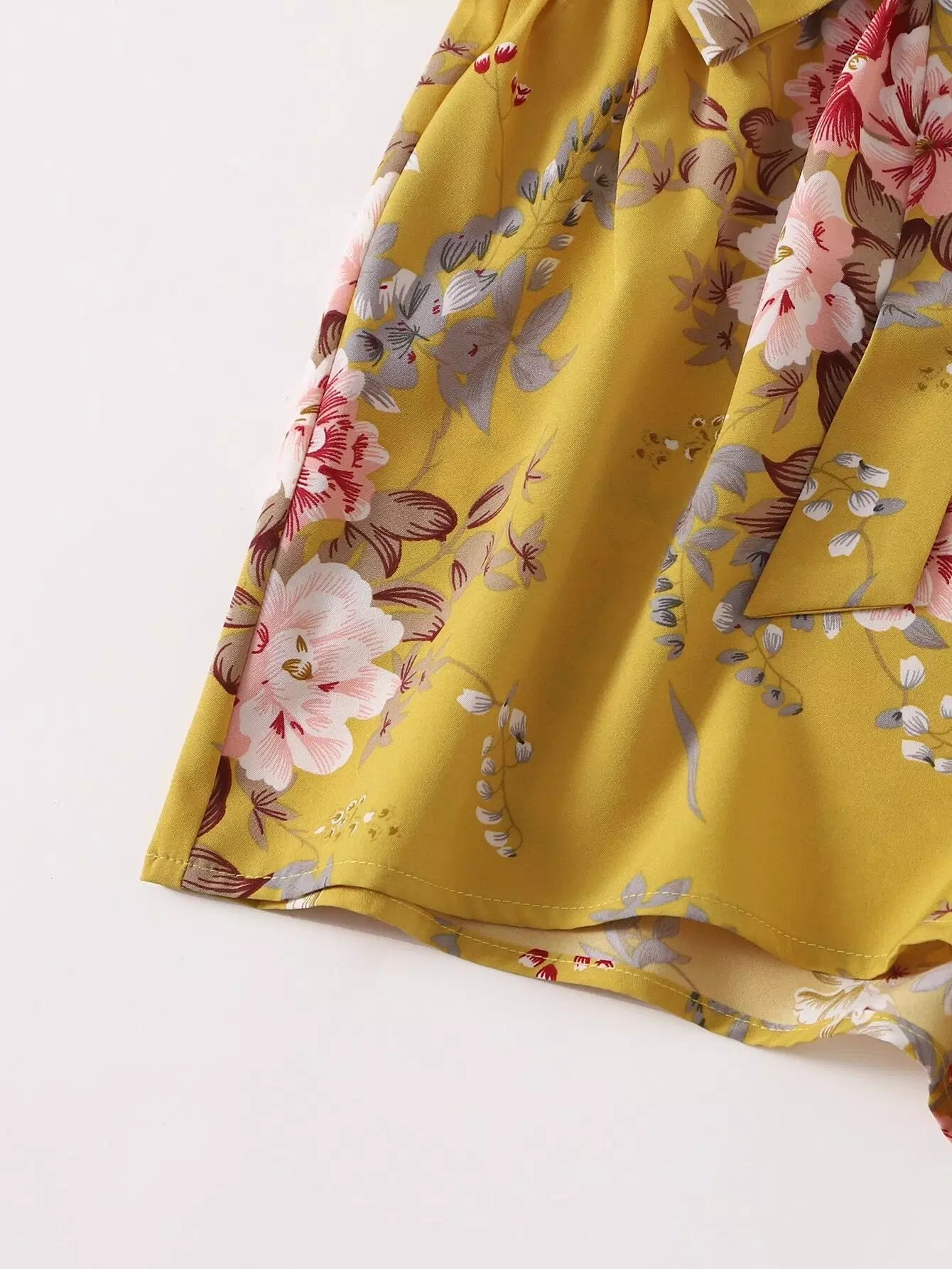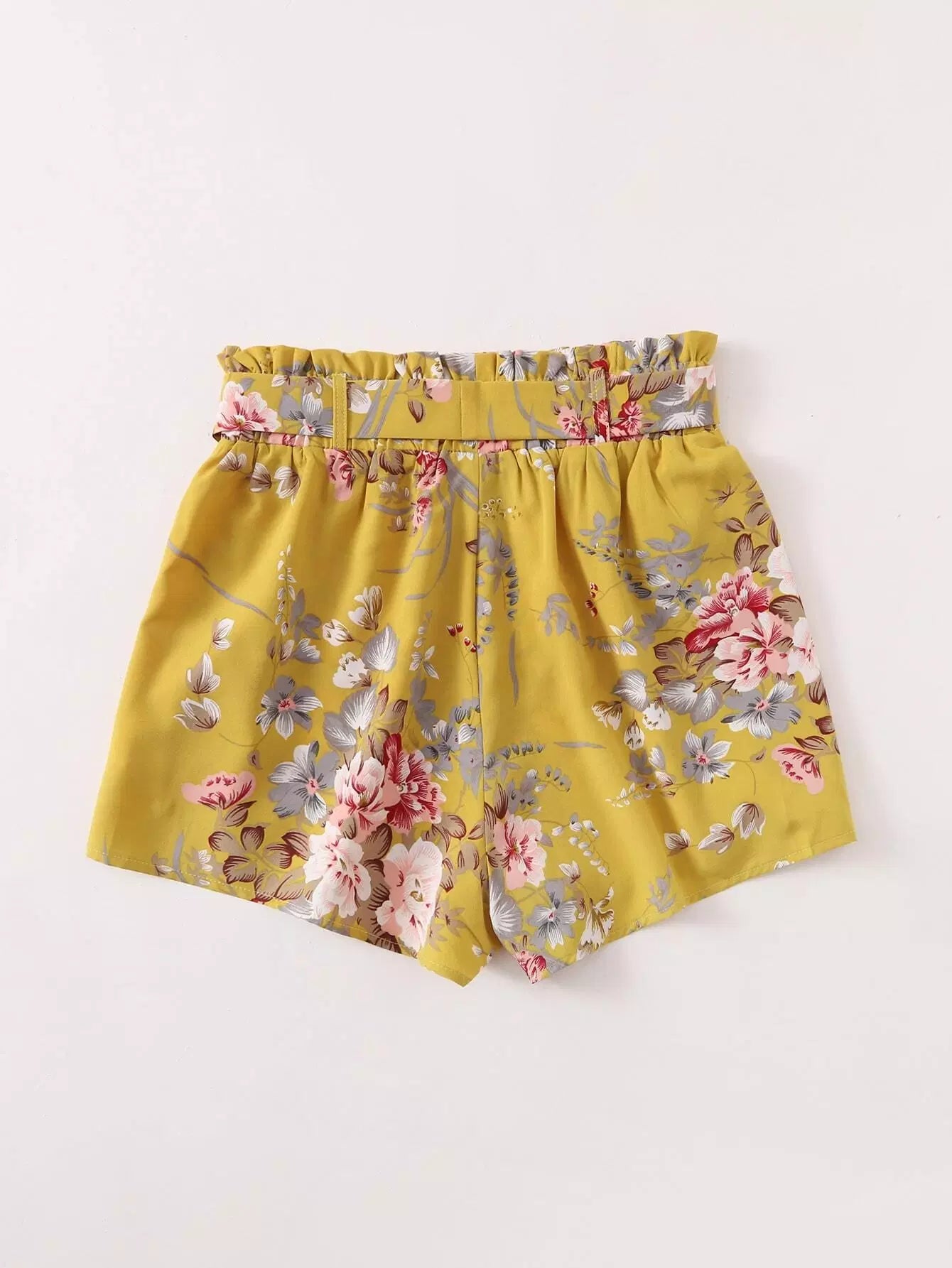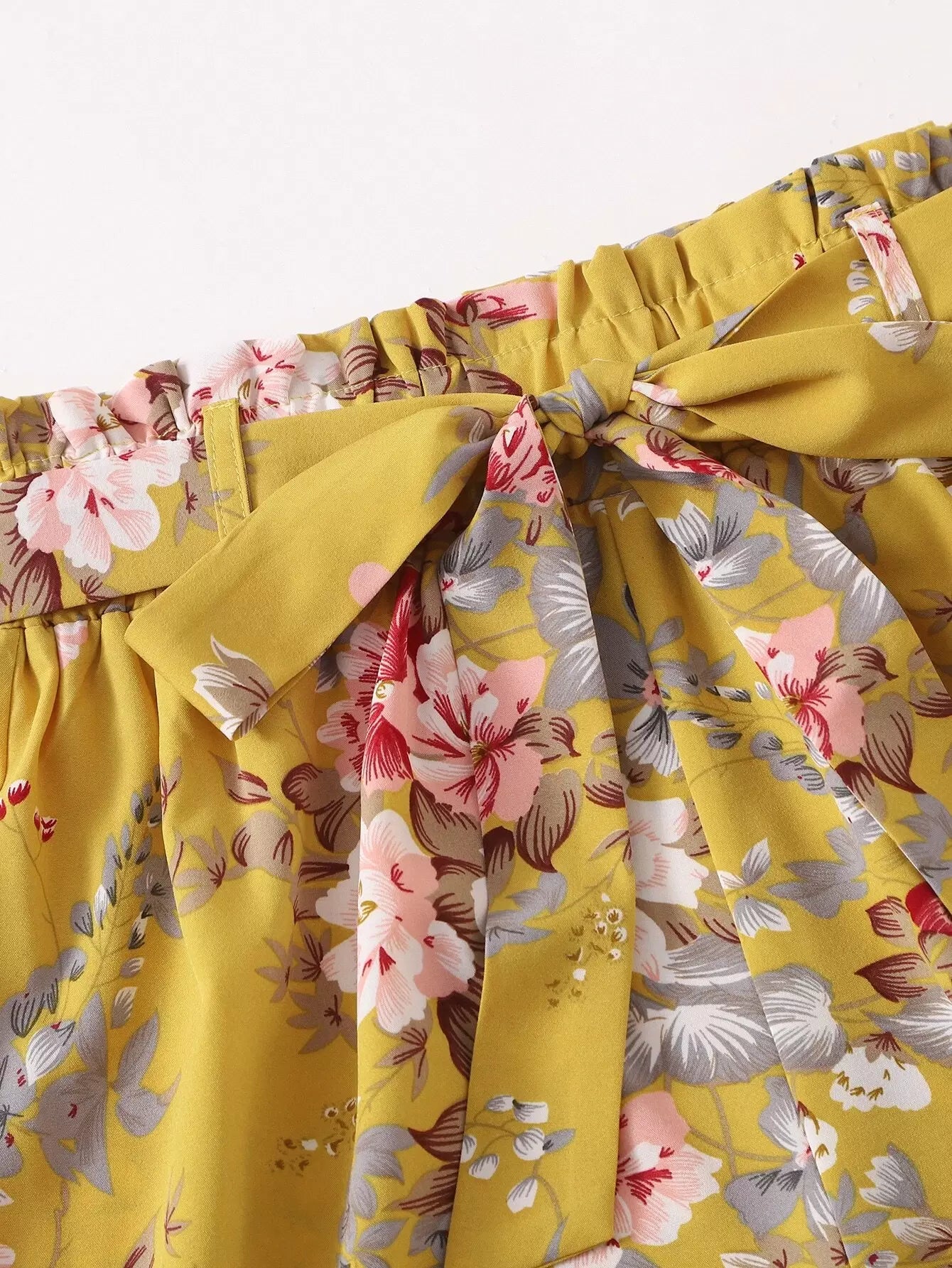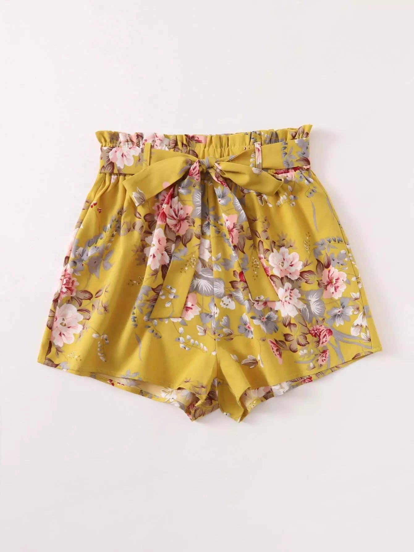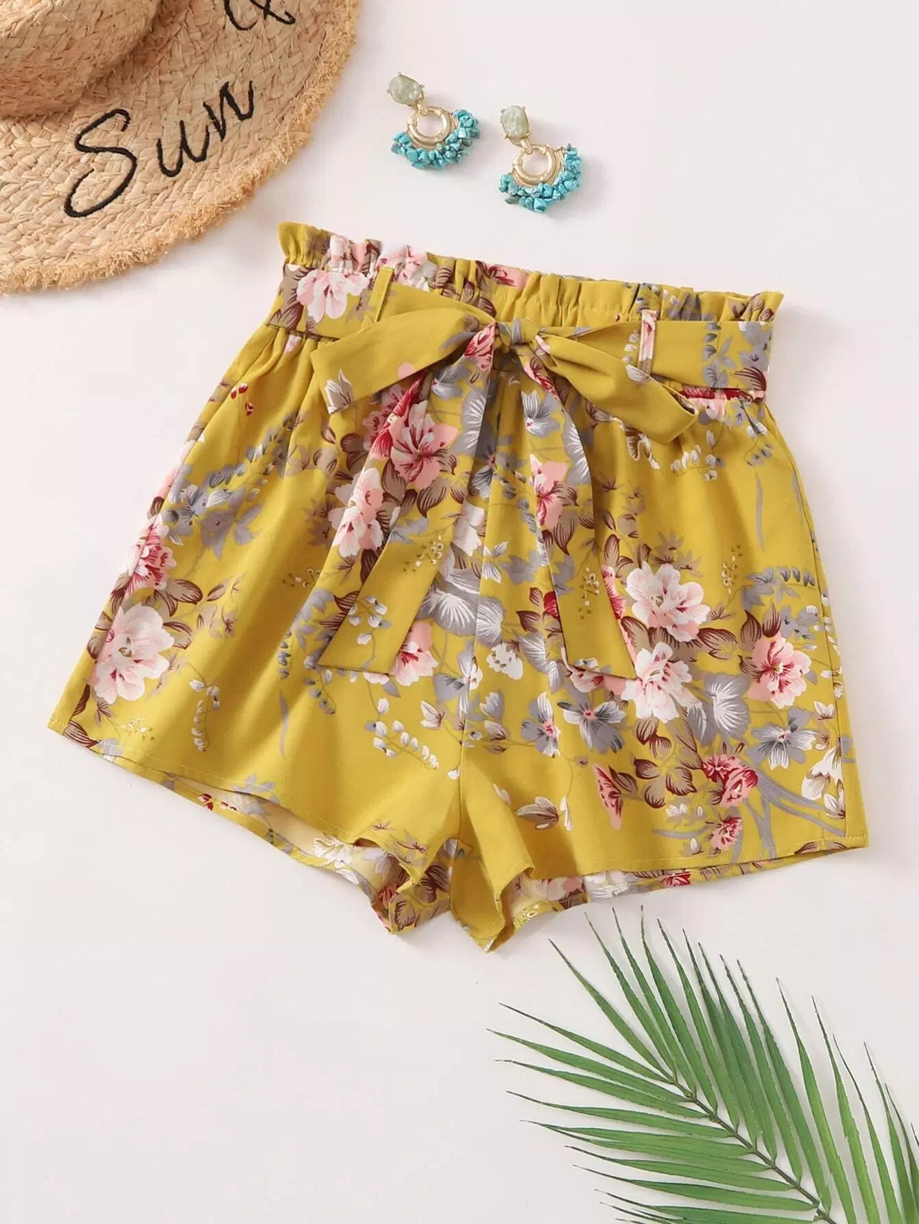 شورت خصر على شكل كيس ورقي مزين بالزهور بدون حزام