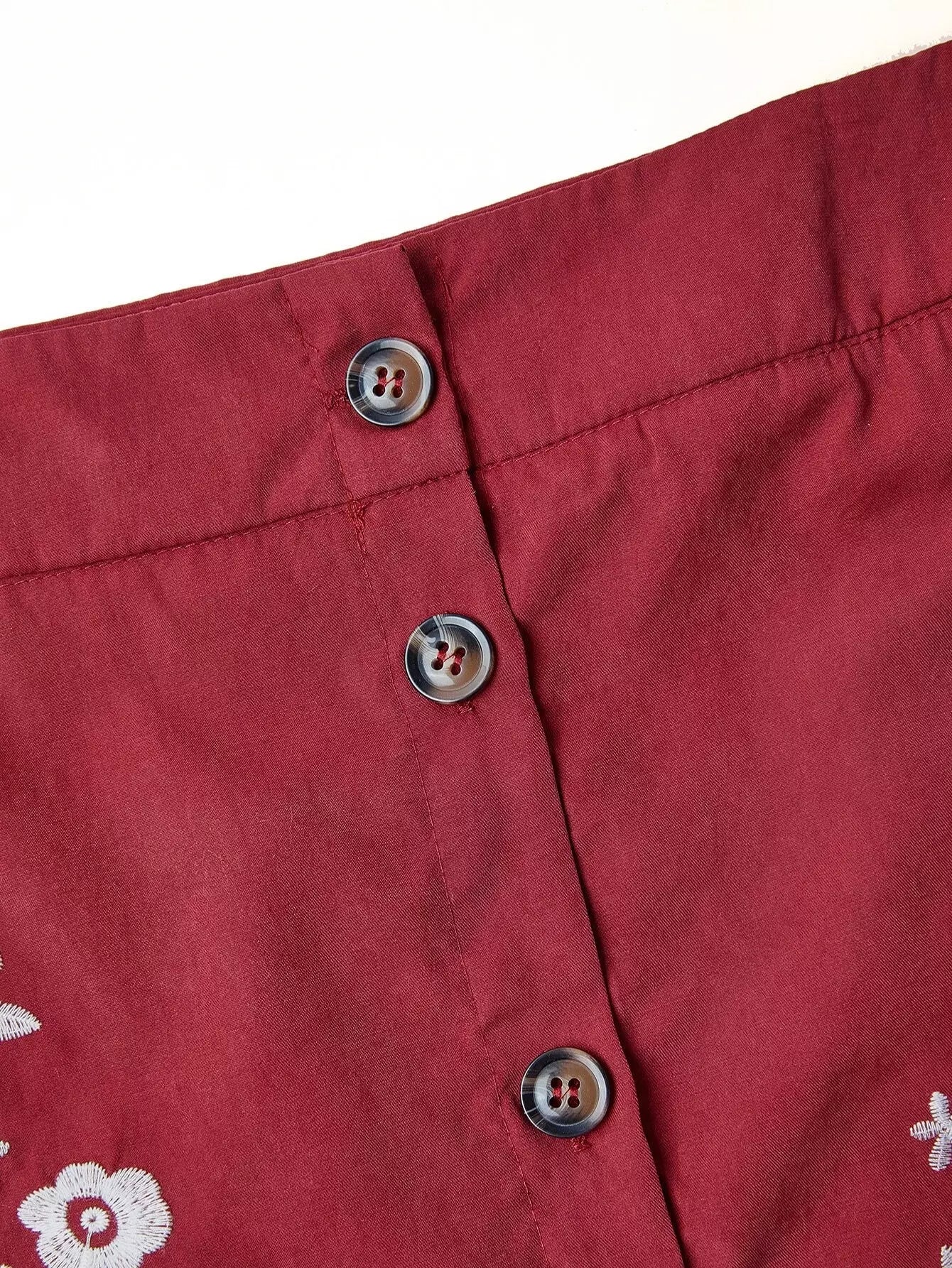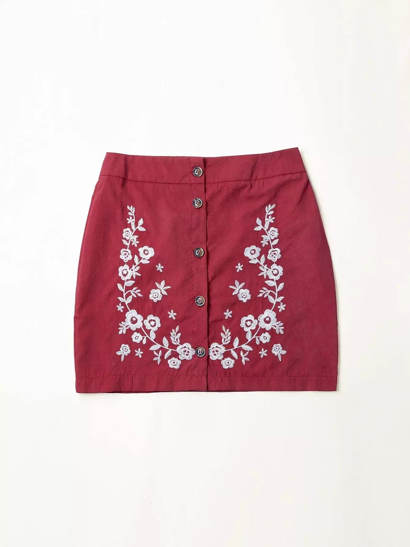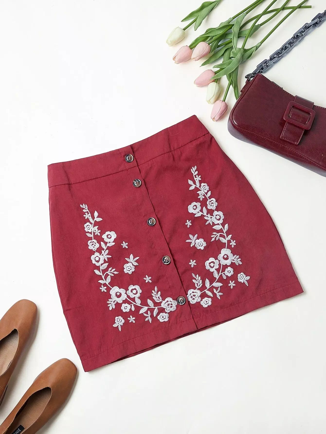 تنورة أمامية مطرزة بأزرار مطرزة بالزهور