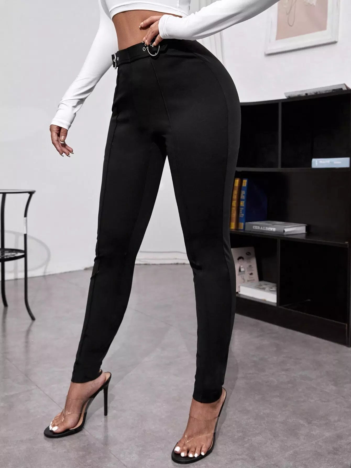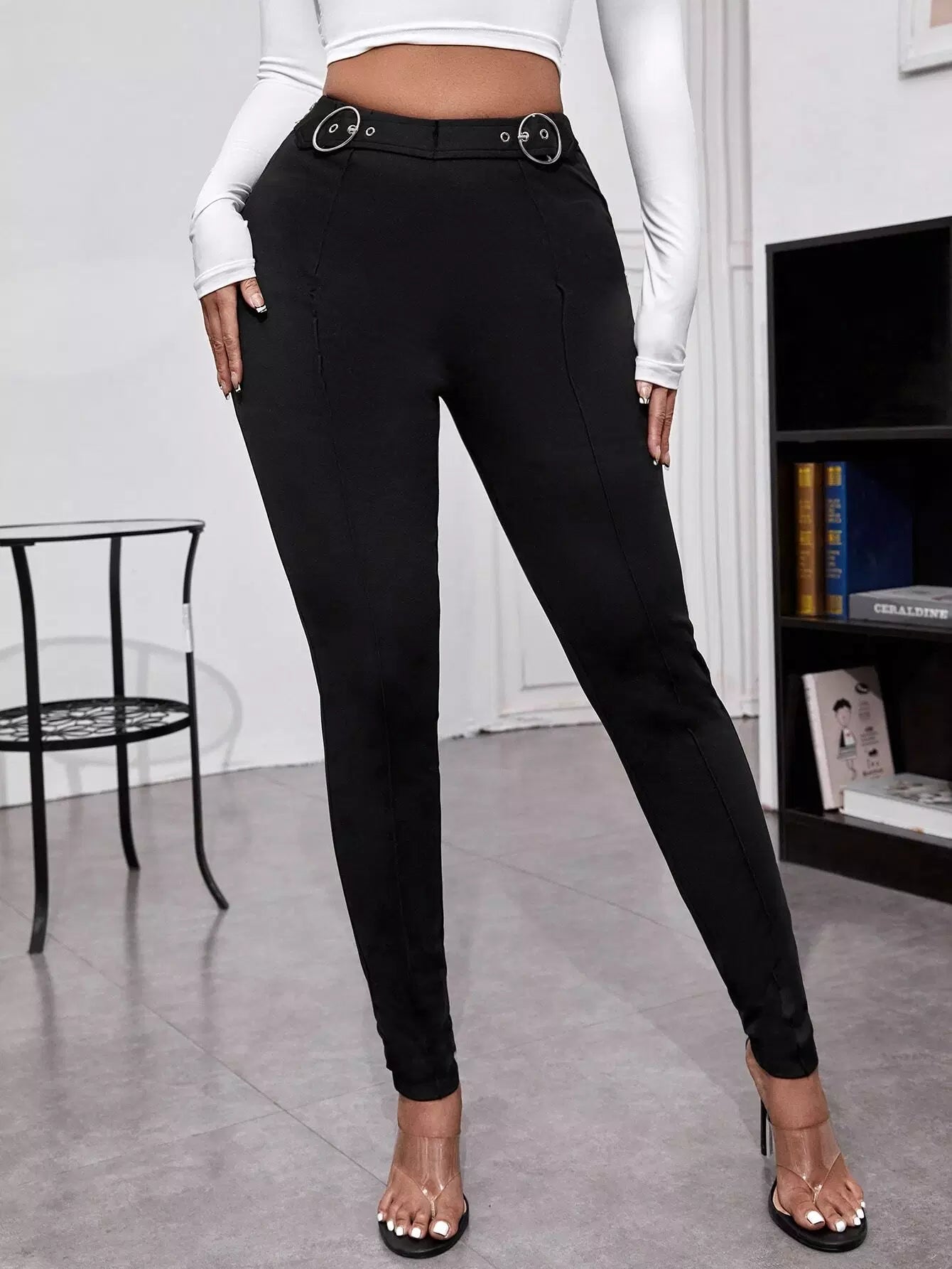 بنطلون ضيق ذو خصر بإبزيمات مشبك مع خصر ضيق