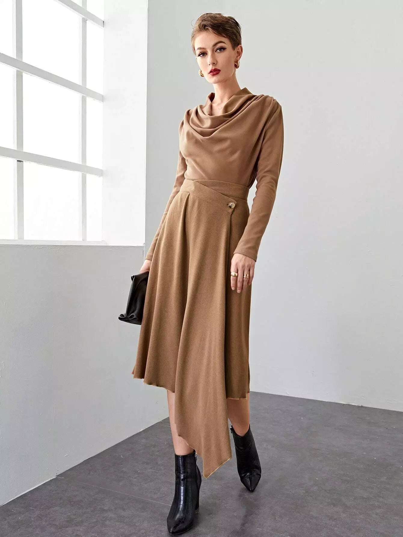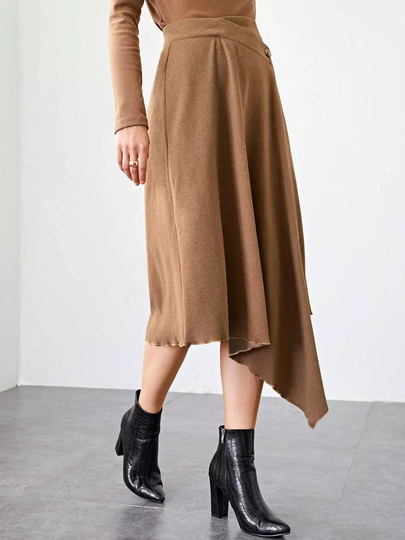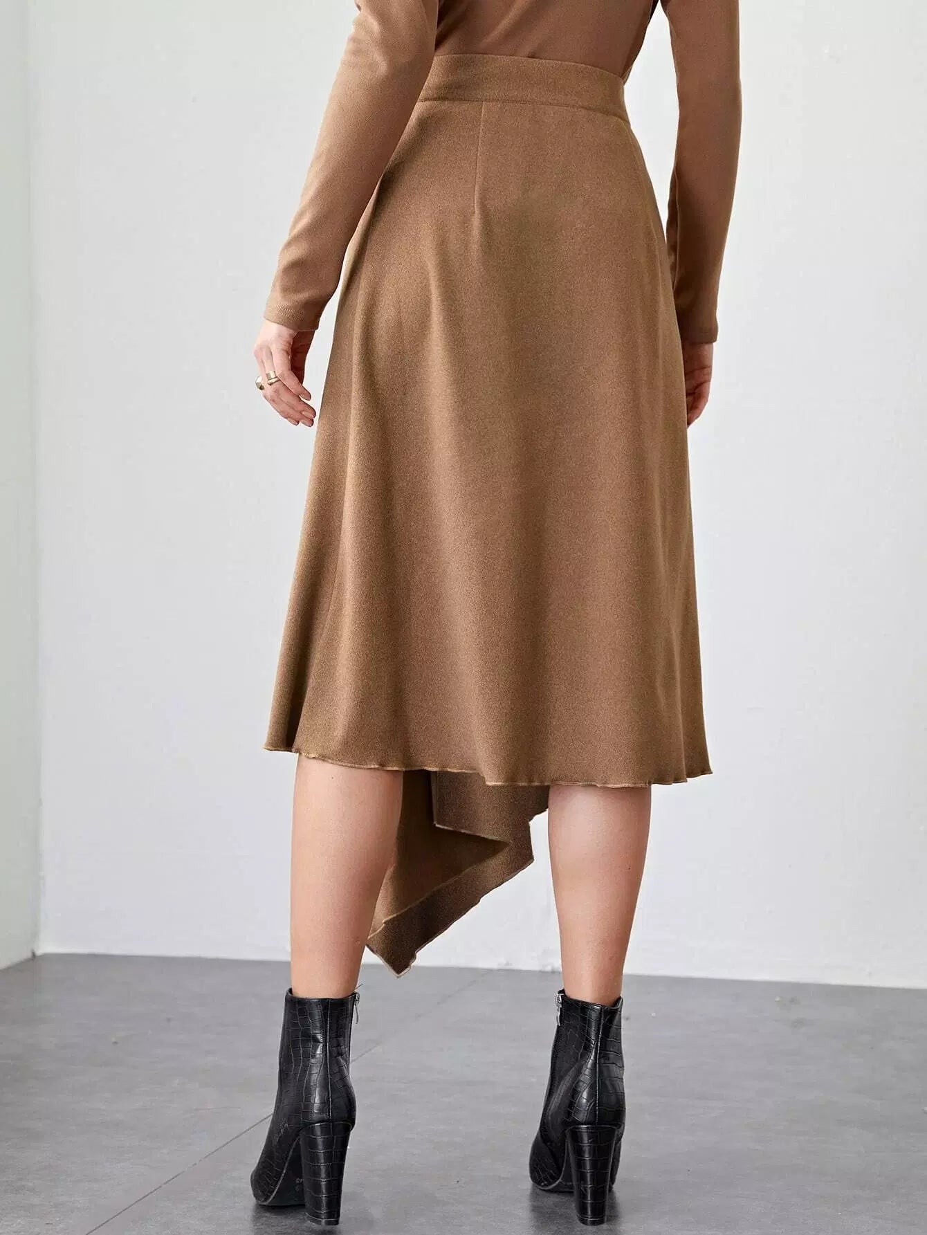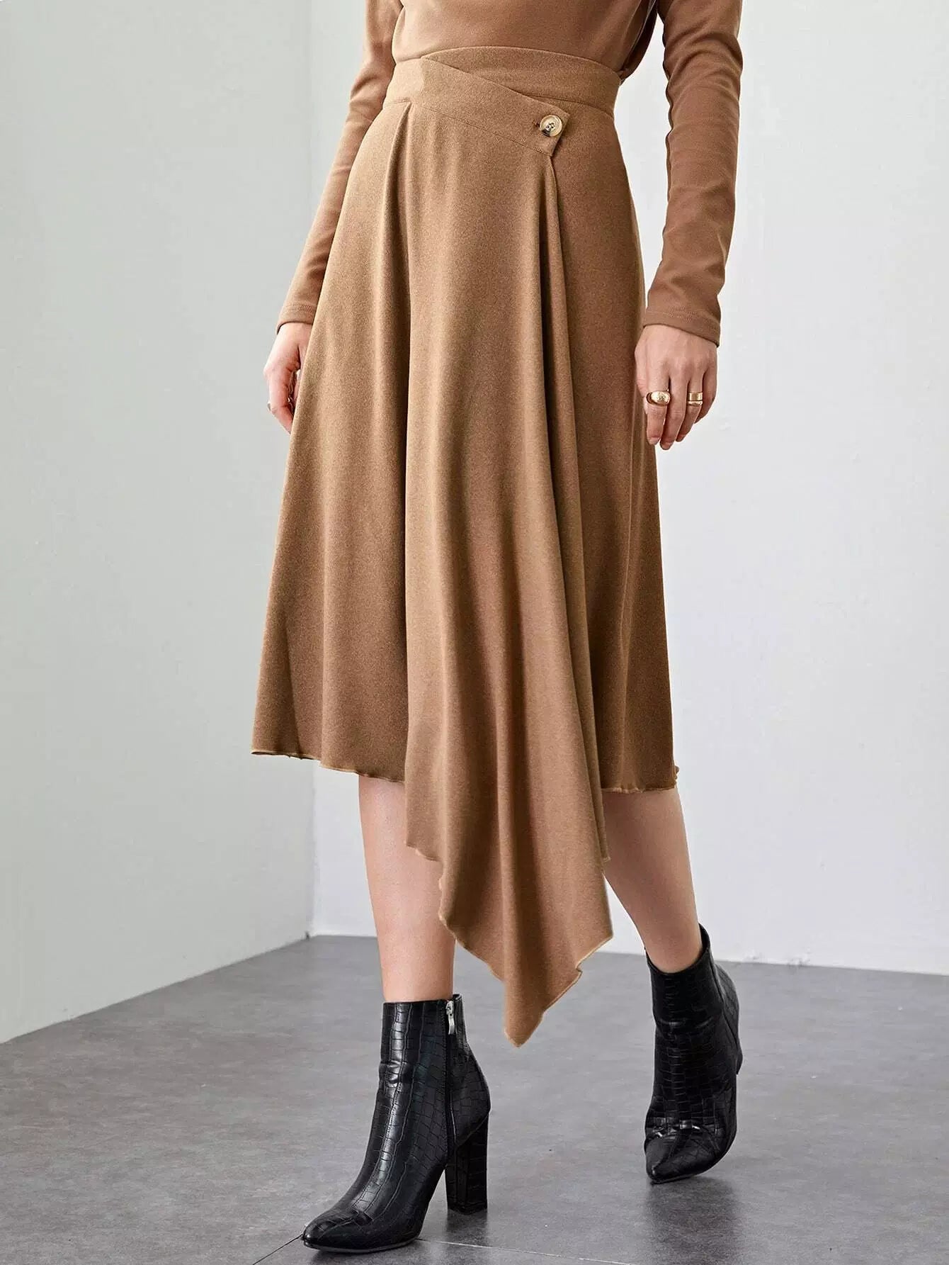 تنورة ملفوفة بأزرار وخصر مرتفع