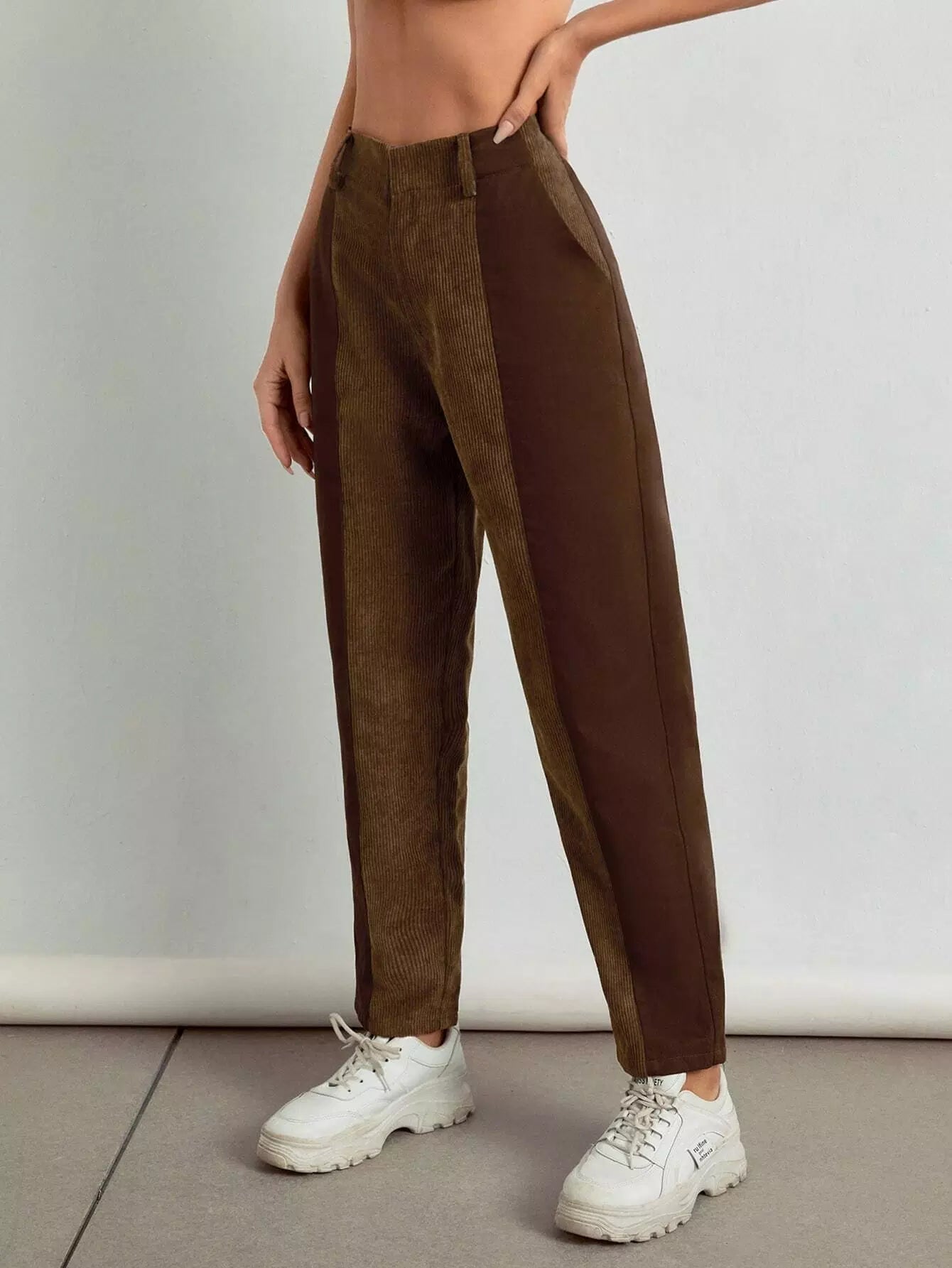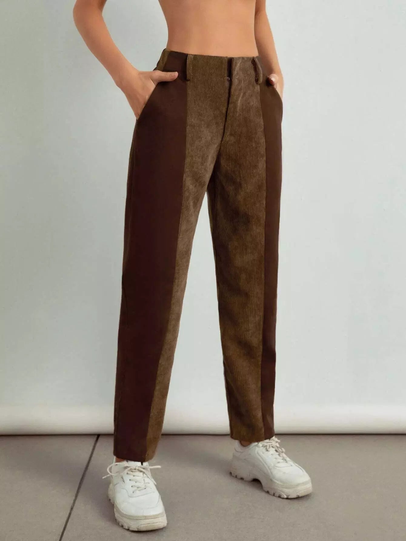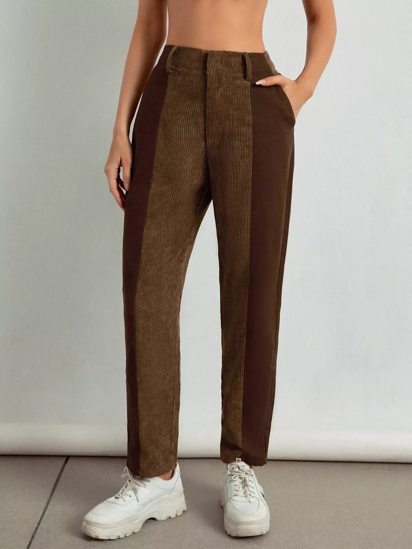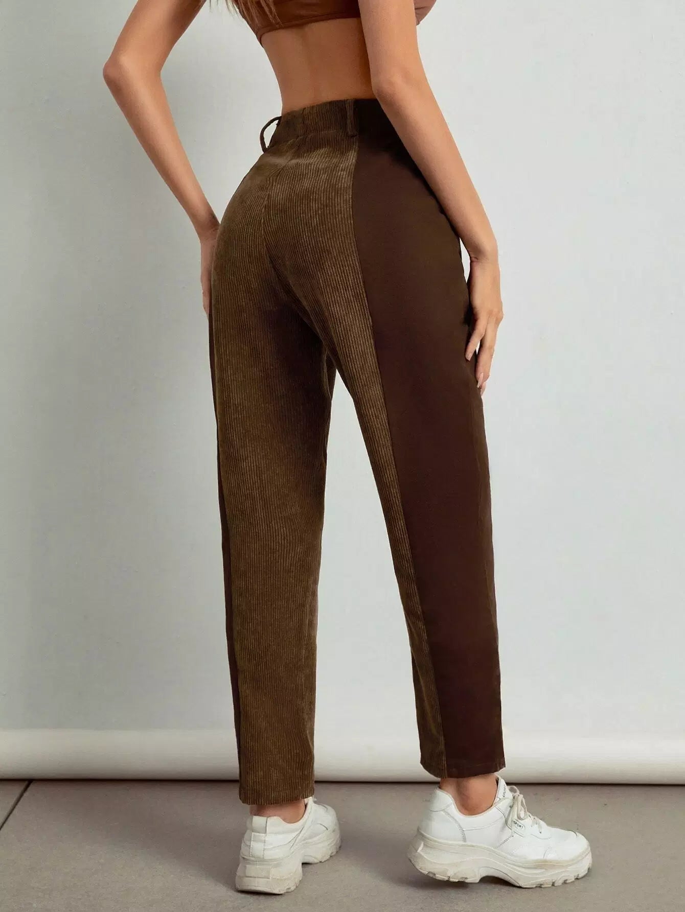 بنطال كاروت من قماش مخملي عالي الخصر