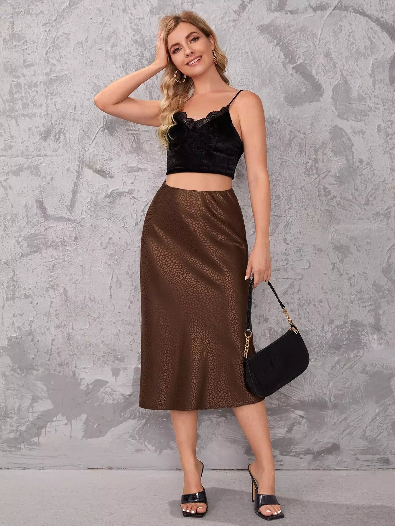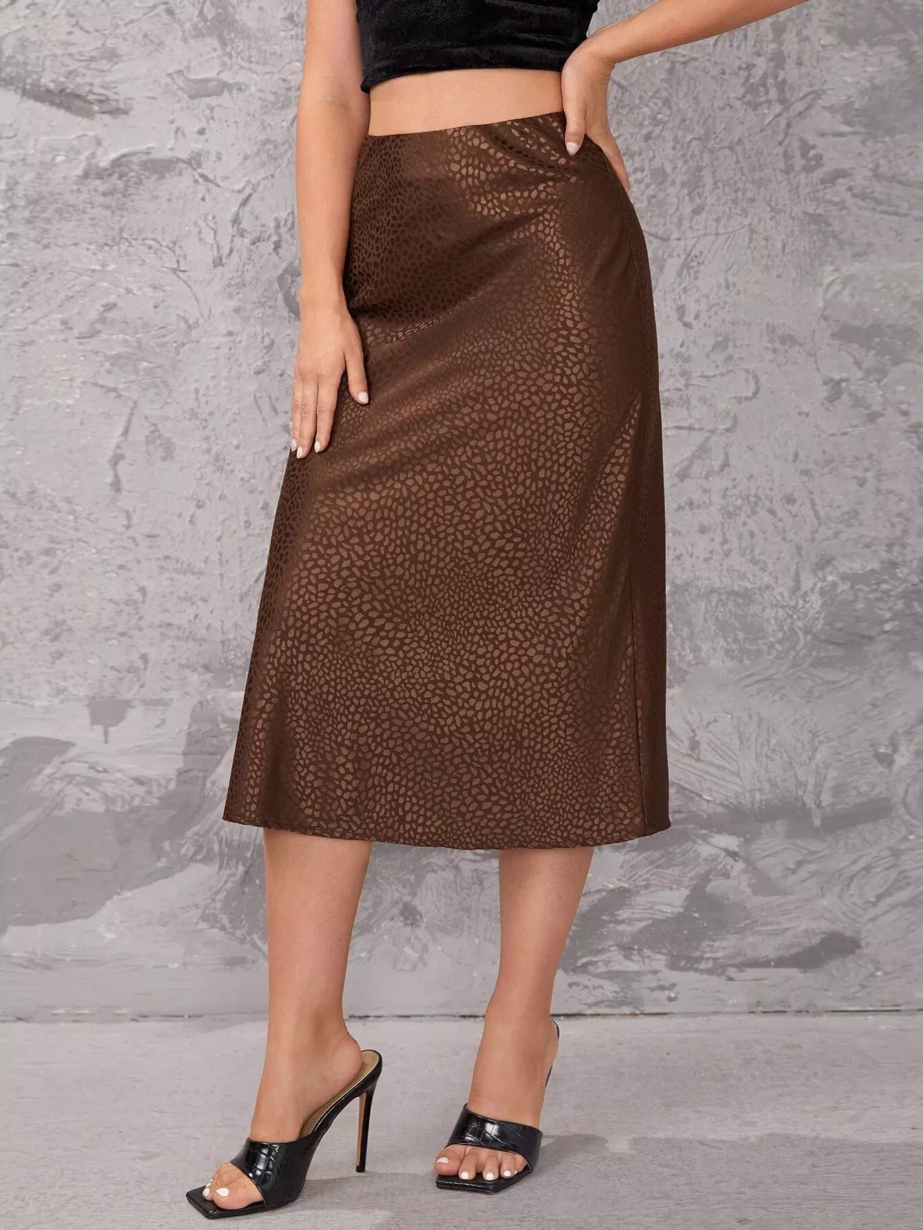 تنورة عالية الخصر من الساتان الجاكار الدلماسي الدلماسي